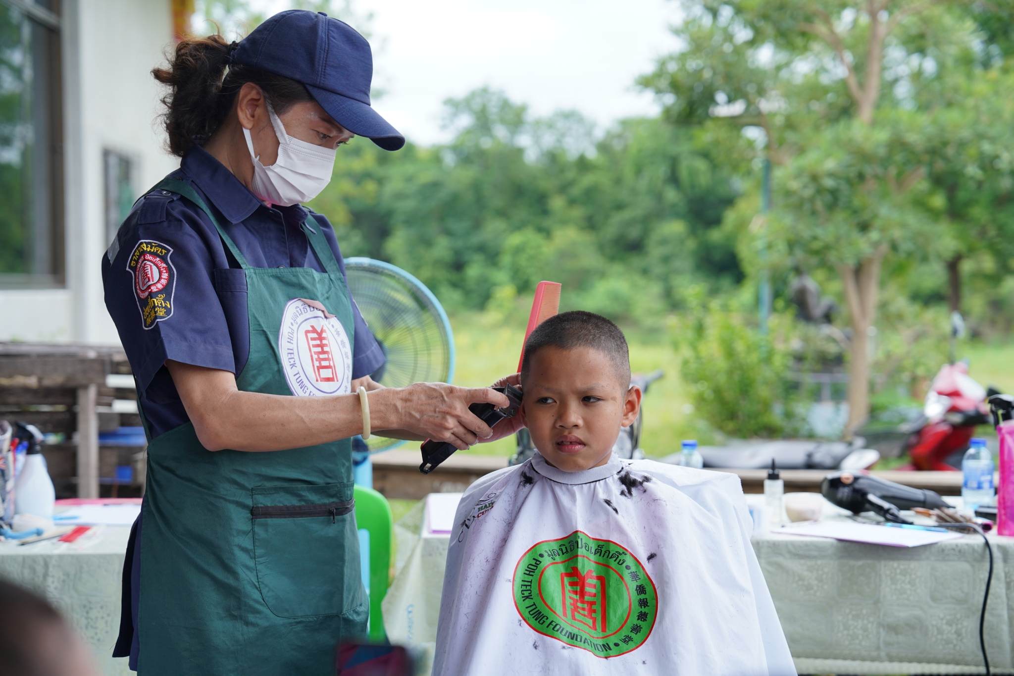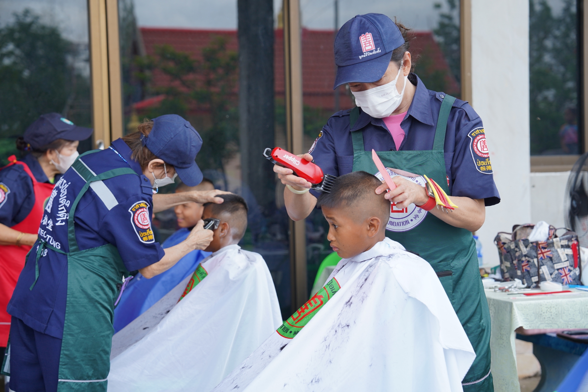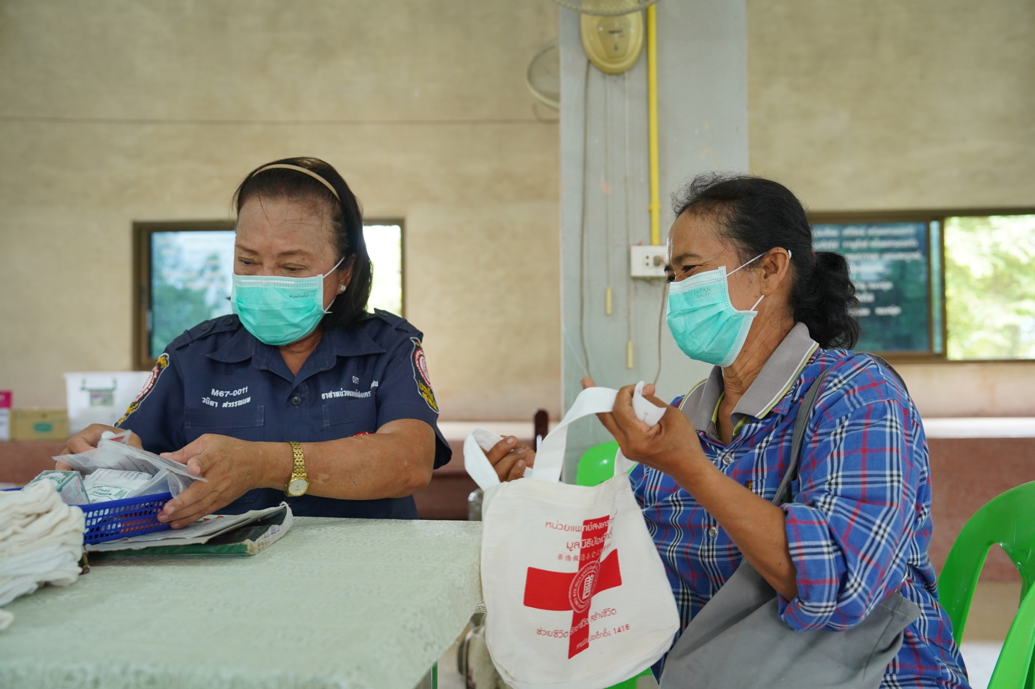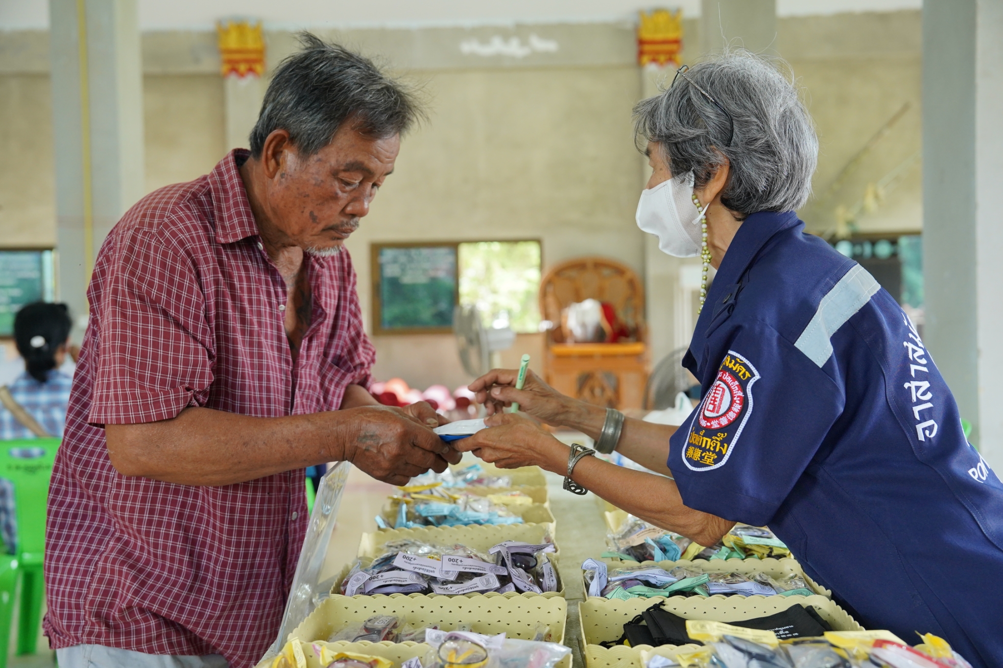 และในโอกาสนี้ คุณเนาวรัตน์ วรรณศิริ หัวหน้าแผนกหน่วยแพทย์ฯ ได้นำทีมแพทย์ เจ้าหน้าที่แผนกหน่วยแพทย์ฯ เจ้าหน้าที่กู้ชีพ แผนกบรรเทาสาธารณภัย และอาสาสมัครหน่วยแพทย์ฯ ลงพื้นที่ออกหน่วยให้บริการตรวจรักษาโรคทั่วไป ตรวจสุขภาพฟัน-ถอนฟัน แจกแว่นสายตาแก่ผู้สูงอายุ และบริการตัดผม ให้แก่ประชาชนโดยไม่มีค่าใช้จ่ายใดๆ ณ บริเวณศาลาการเปรียญวัดศรีพนมเทียน (ห้วยรวก) อำเภอเลาขวัญ จังหวัดกาญจนบุรี