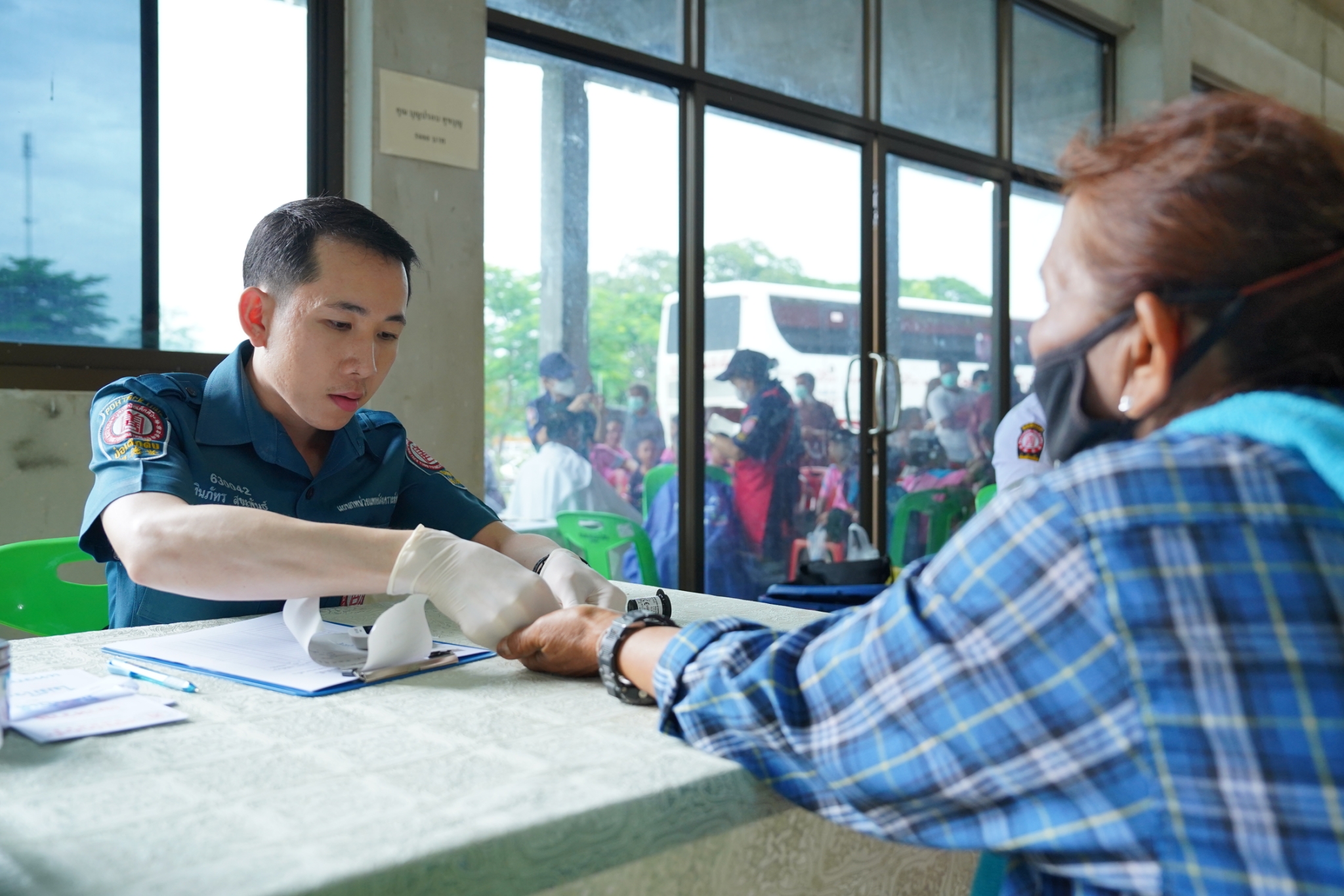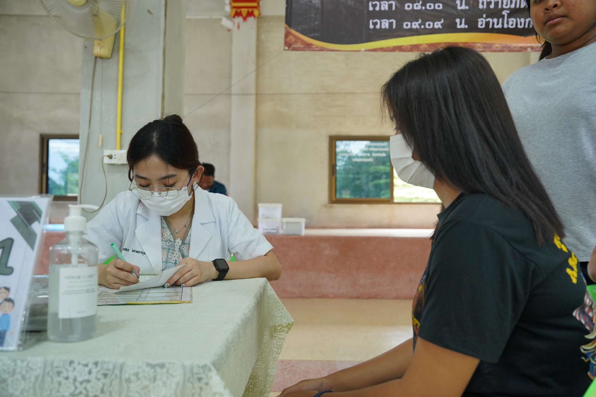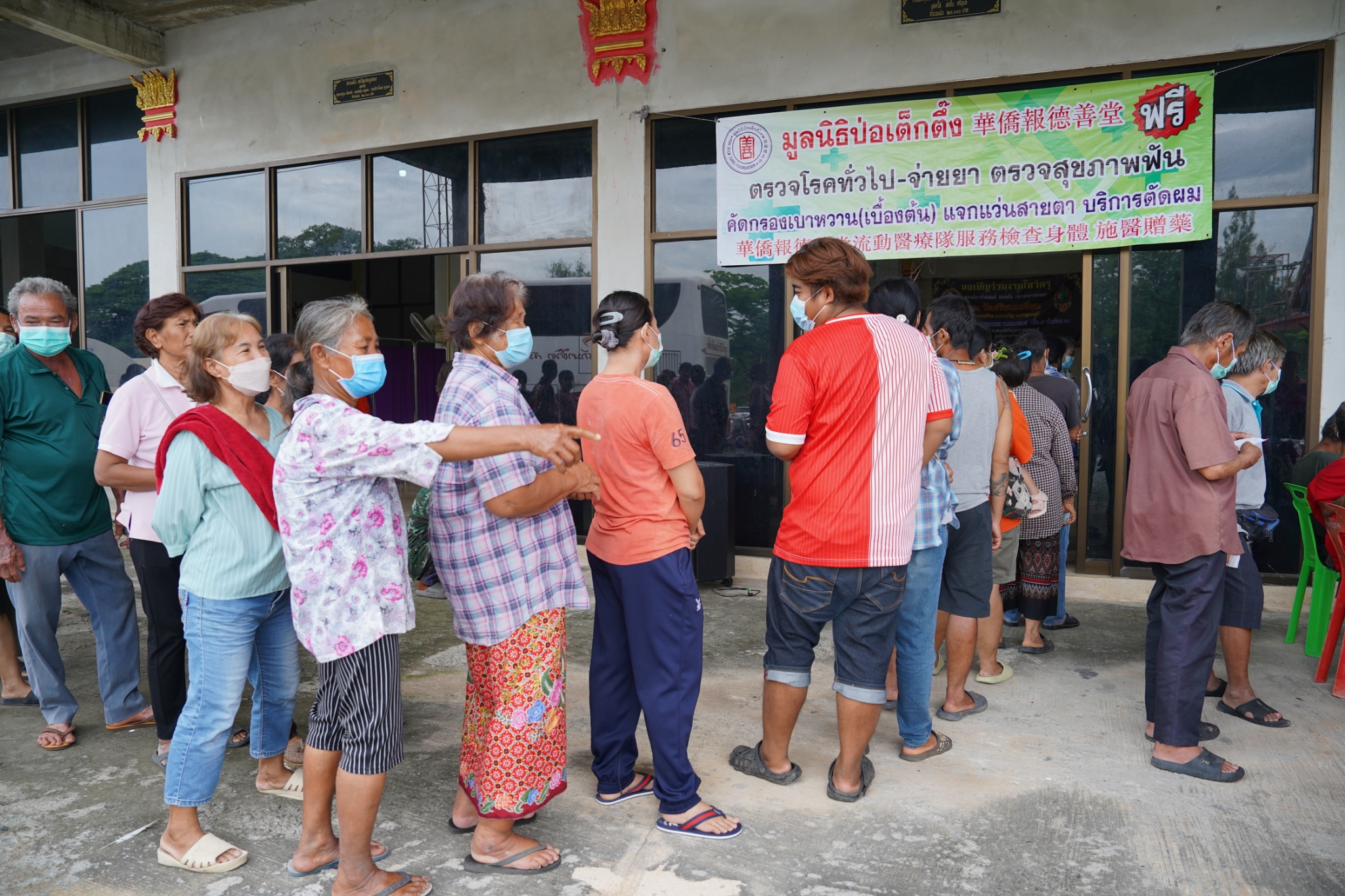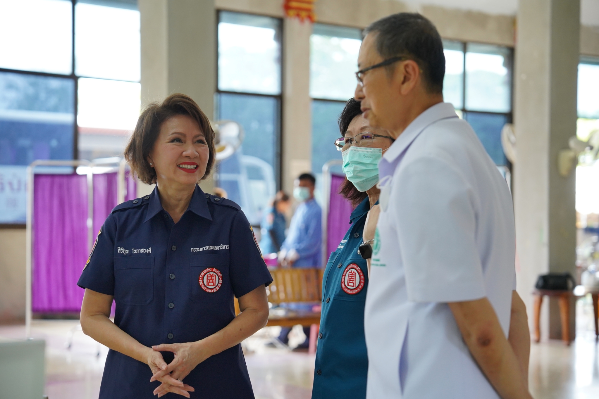 และในโอกาสนี้ คุณเนาวรัตน์ วรรณศิริ หัวหน้าแผนกหน่วยแพทย์ฯ ได้นำทีมแพทย์ เจ้าหน้าที่แผนกหน่วยแพทย์ฯ เจ้าหน้าที่กู้ชีพ แผนกบรรเทาสาธารณภัย และอาสาสมัครหน่วยแพทย์ฯ ลงพื้นที่ออกหน่วยให้บริการตรวจรักษาโรคทั่วไป ตรวจสุขภาพฟัน-ถอนฟัน แจกแว่นสายตาแก่ผู้สูงอายุ และบริการตัดผม ให้แก่ประชาชนโดยไม่มีค่าใช้จ่ายใดๆ ณ บริเวณศาลาการเปรียญวัดศรีพนมเทียน (ห้วยรวก) อำเภอเลาขวัญ จังหวัดกาญจนบุรี