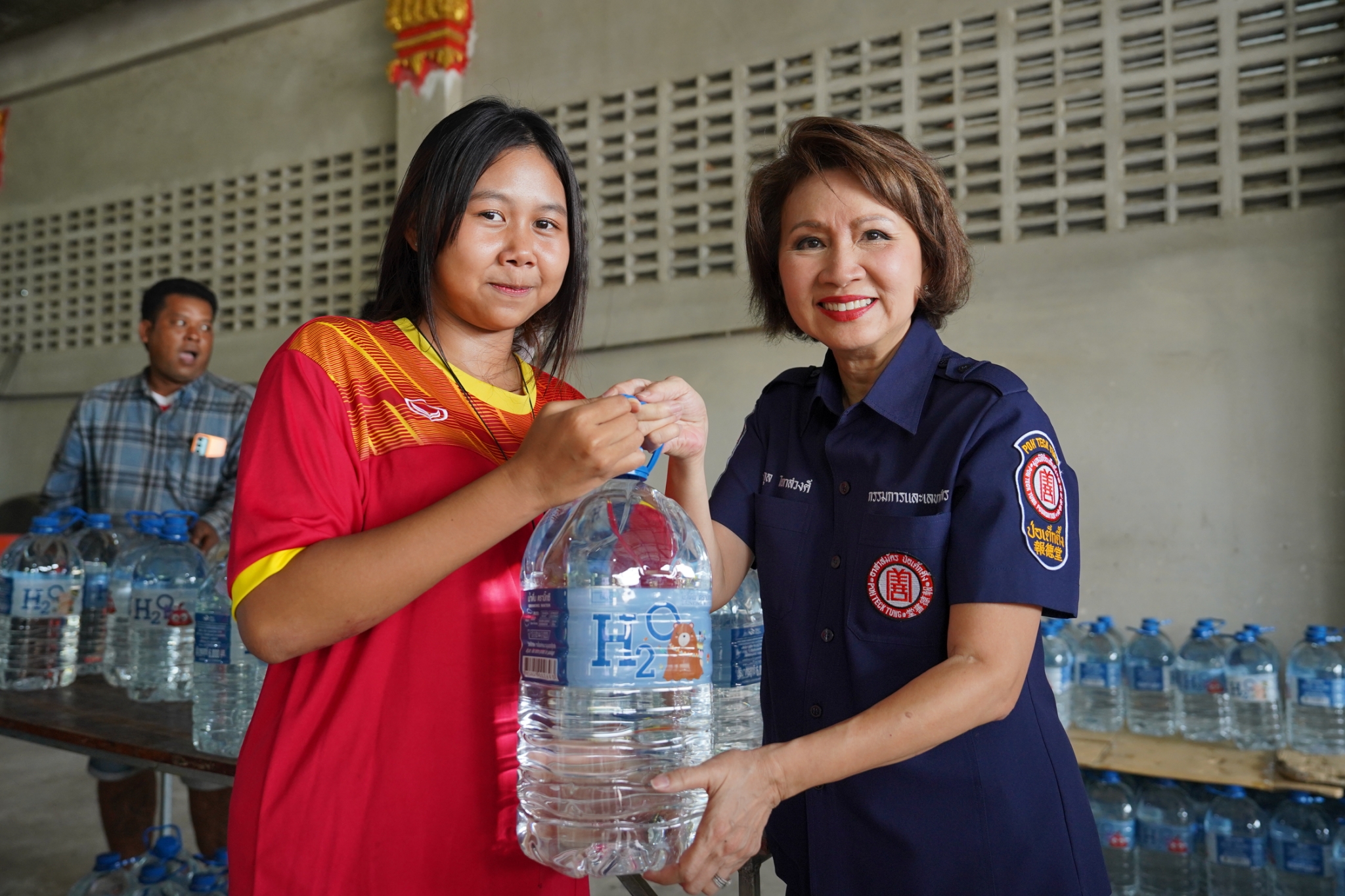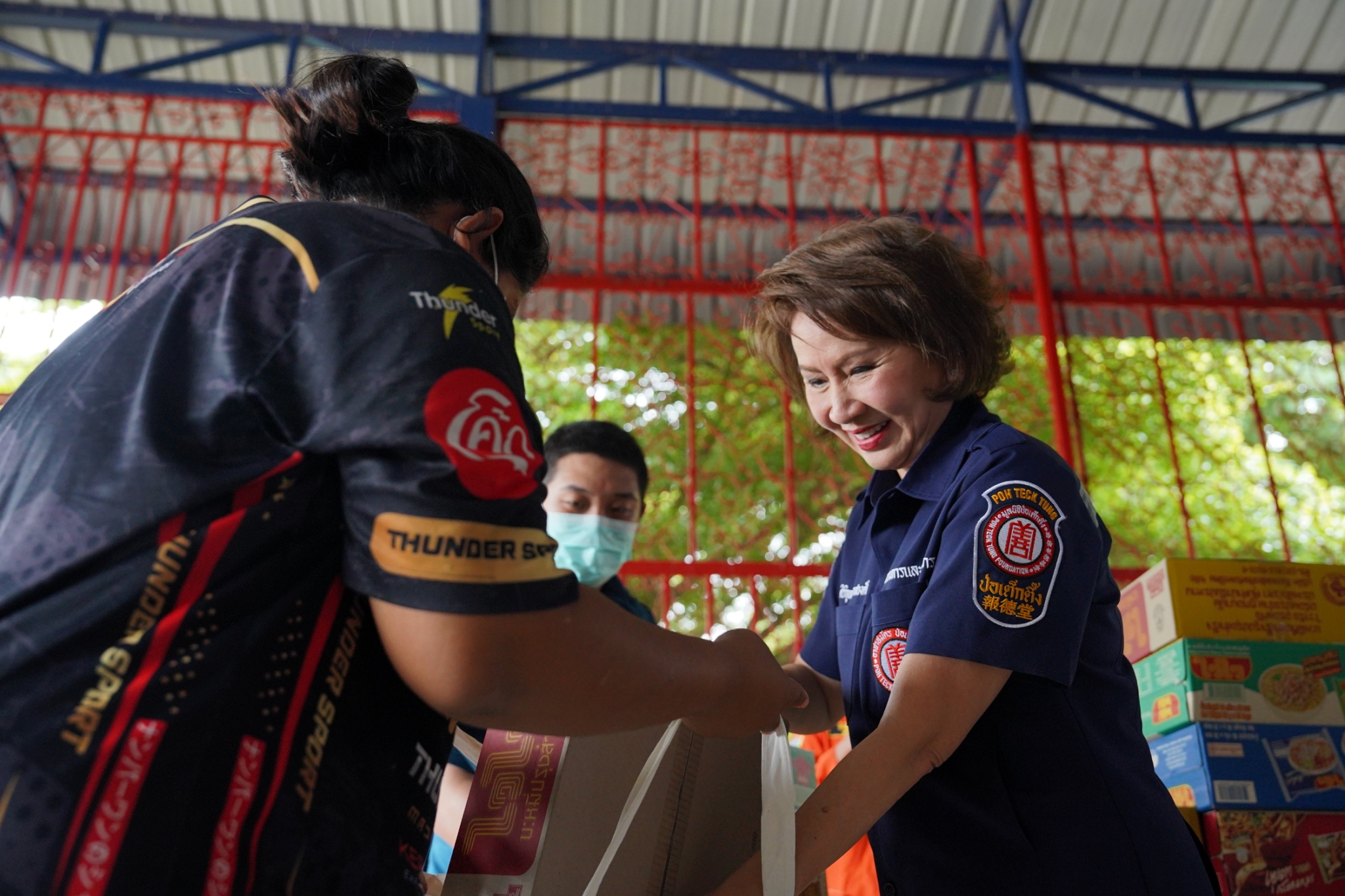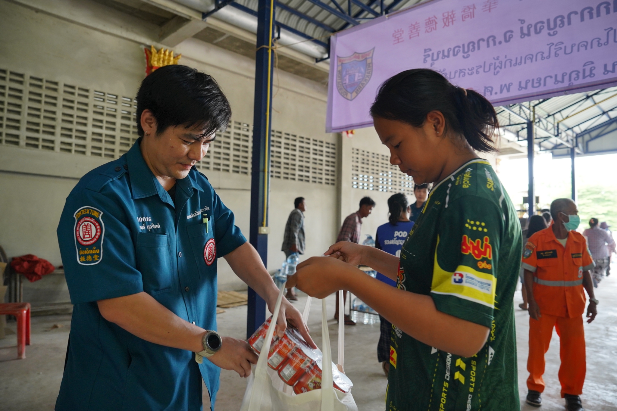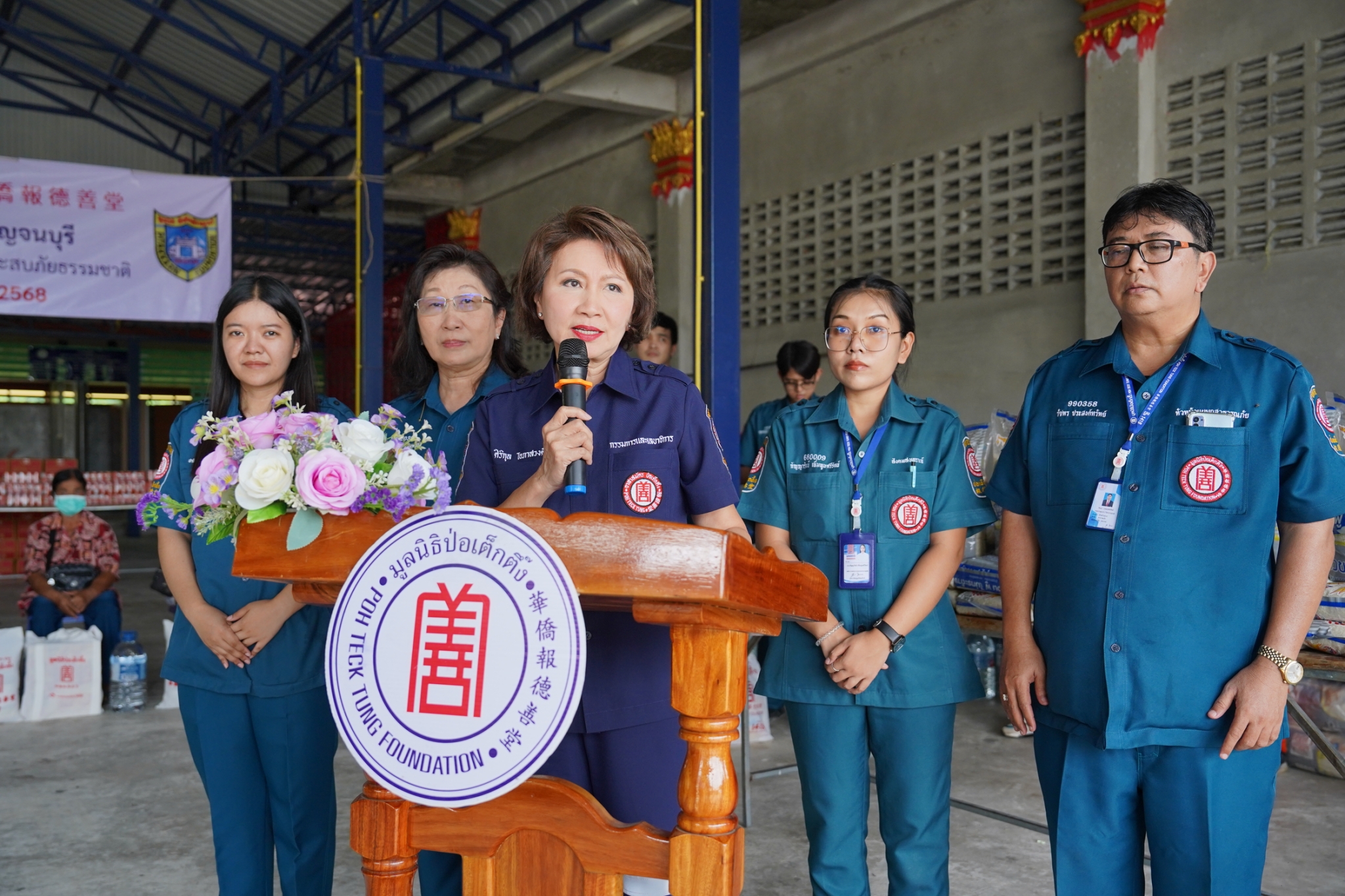 วันที่ 3 มิถุนายน พ.ศ. 2568 เวลา 10.30 น. มูลนิธิป่อเต็กตึ๊ง นำโดย คุณศิริกุล โอภาสวงศ์ กรรมการและเลขาธิการ พร้อมด้วย คุณดวงชุตา ติยะพจนพรกุล ผู้ช่วยผู้จัดการฝ่ายสังคมสงเคราะห์ คุณรัชพร ประสงค์ทรัพย์ หัวหน้าแผนกสาธารณภัย เจ้าหน้าที่แผนกสาธารณภัย และอาสาสมัครเฉพาะกิจ ร่วมกับ มูลนิธิพิทักษ์กาญจน์ จังหวัดกาญจนบุรี นำโดย คุณวันจักร จันทร์สว่าง กรรมการบริหารมูลนิธิฯ พร้อมคณะ ลงพื้นที่มอบน้ำดื่มพร้อมเครื่องอุปโภคบริโภค [ประกอบด้วย ข้าวสาร บะหมี่กึ่งสำเร็จรูป น้ำมัน น้ำปลา และปลากระป๋อง บรรจุลงในถุงผ้ามูลนิธิฯ] จำนวน 600 ชุด คิดเป็นมูลค่าทั้งสิ้น 330,000 บาท (สามแสนสามหมื่นบาทถ้วน) ให้แก่ผู้ประสบภัยธรรมชาติในพื้นที่อำเภอเลาขวัญ โดยมี คุณชลธิชา วงษ์อุตสาห์ นายอำเภอเลาขวัญ ให้เกียรติเป็นประธานในพิธีมอบ พร้อมด้วย ผู้แทนจากหน่วยงานส่วนราชการ ร่วมมอบ