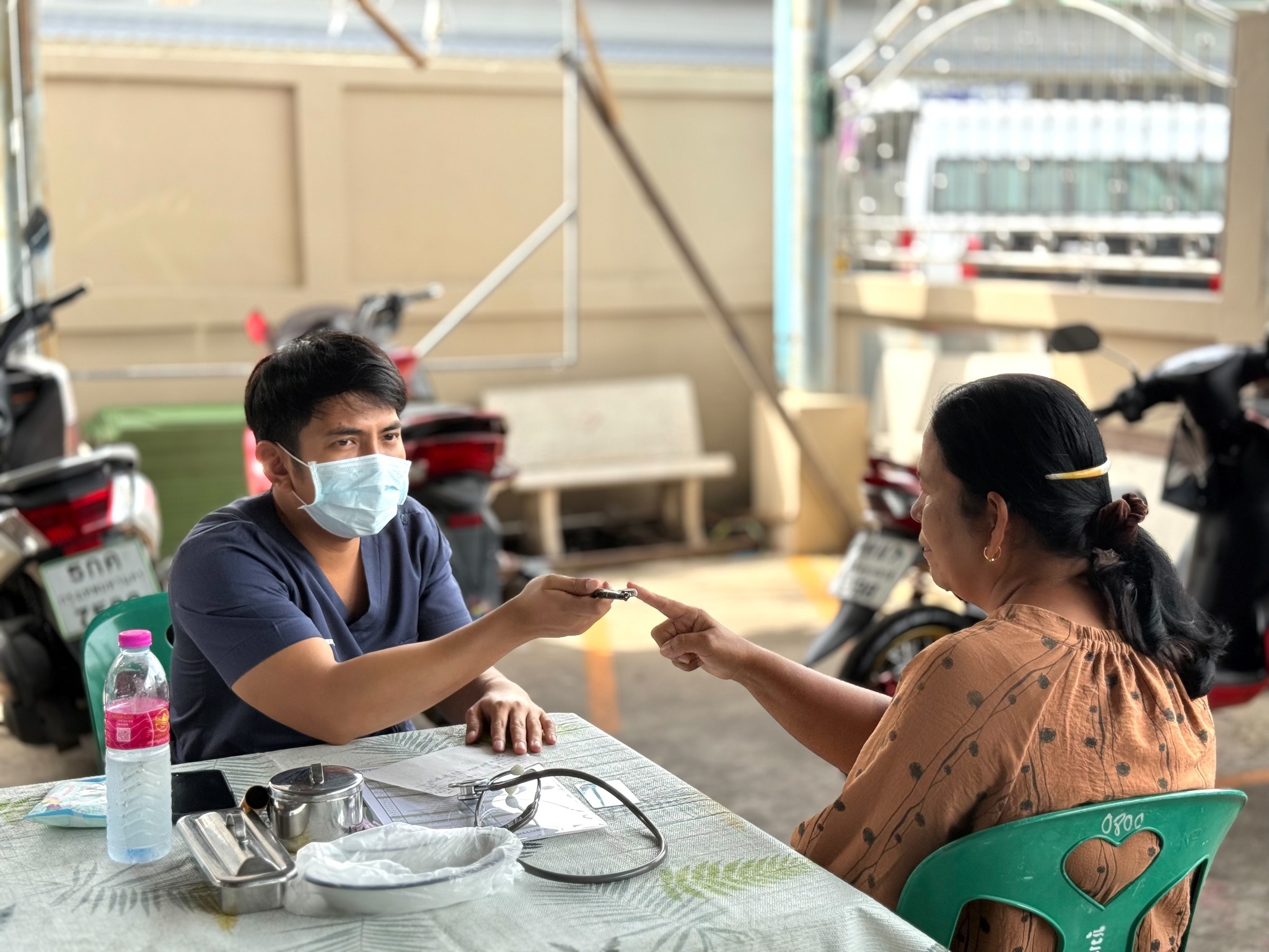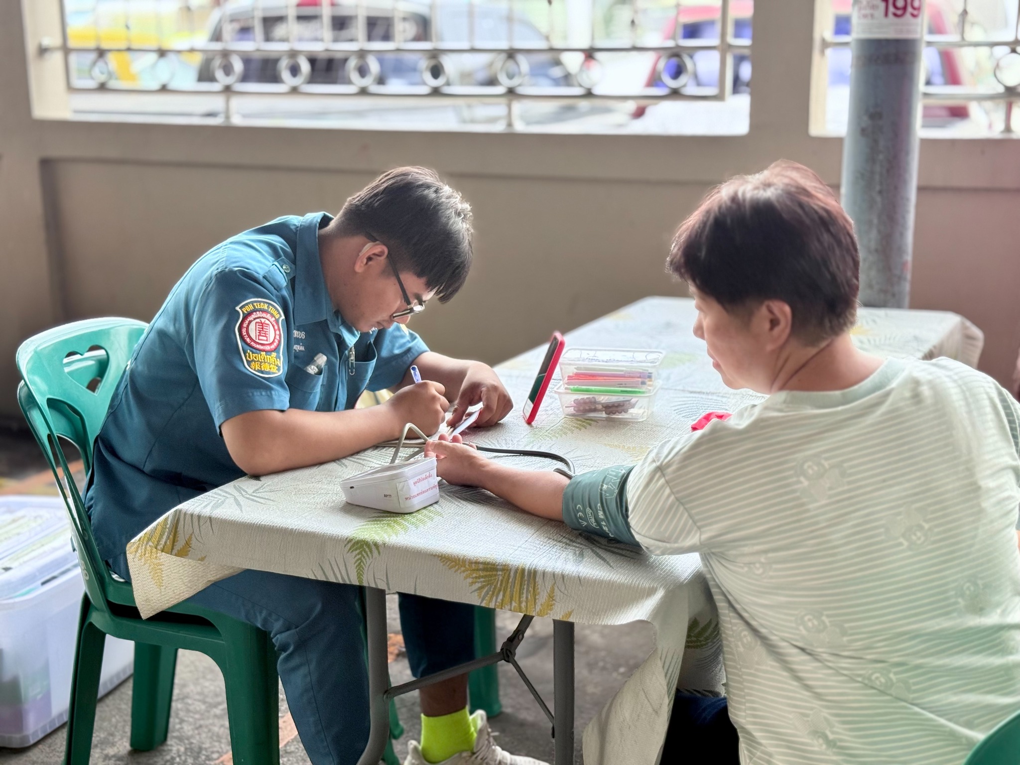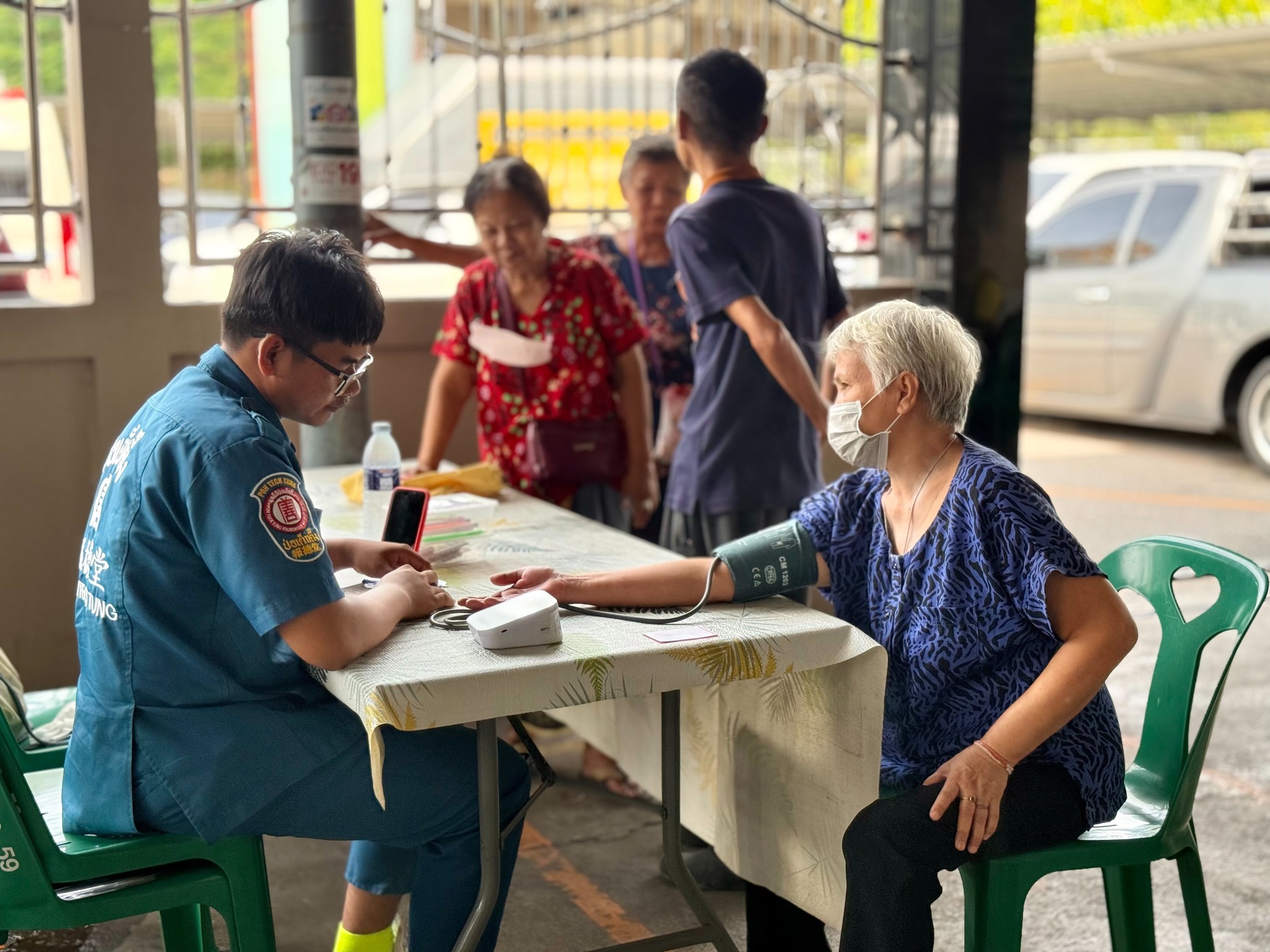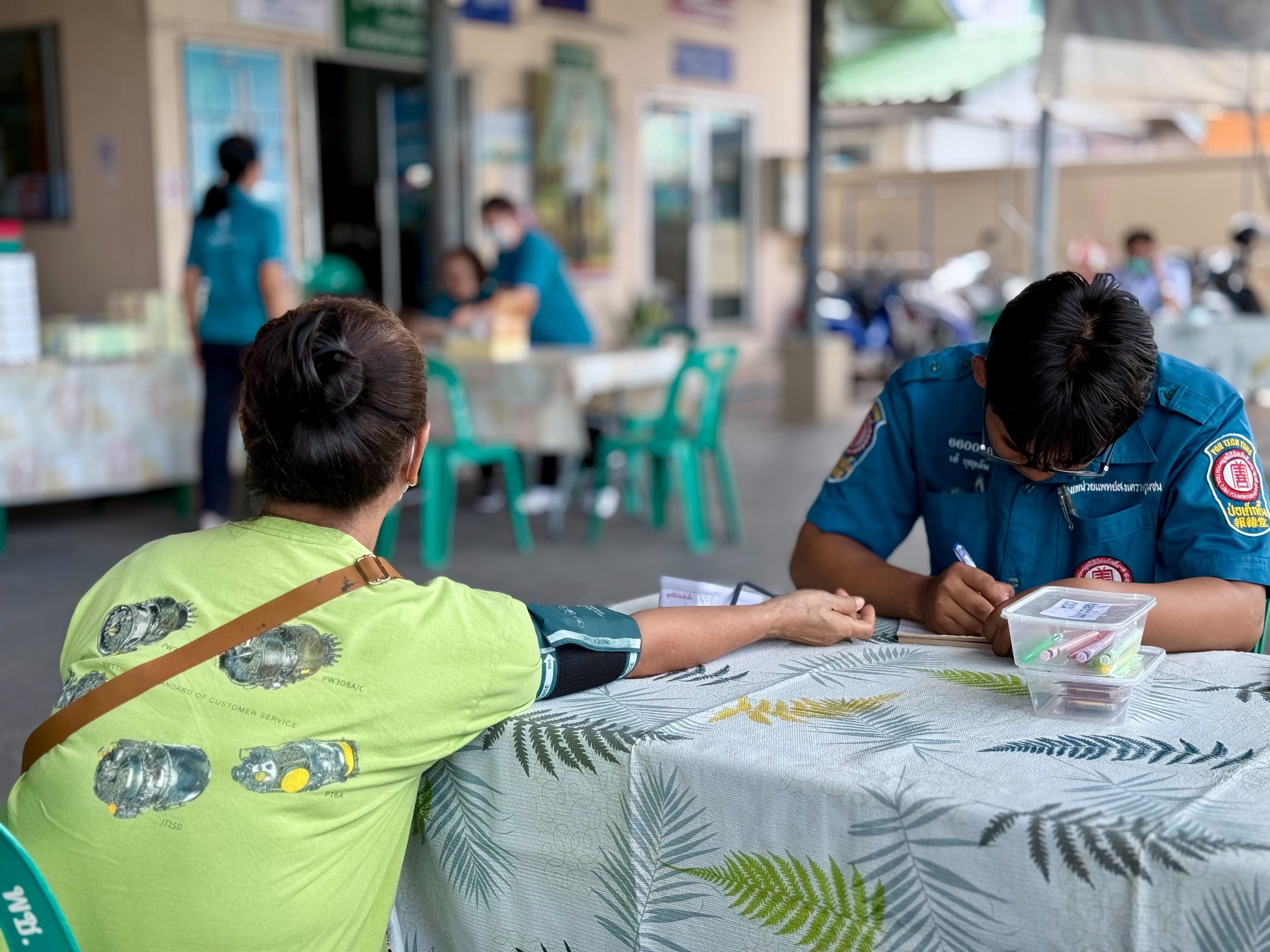 วันนี้ (7 สิงหาคม พ.ศ. 2568) มูลนิธิป่อเต็กตึ๊ง ฝ่ายสังคมสงเคราะห์ นำโดย คุณเนาวรัตน์ วรรณศิริ หัวหน้าแผนกหน่วยแพทย์สงเคราะห์ชุมชน นำทีมแพทย์ และเจ้าหน้าที่แผนกหน่วยแพทย์ฯ ลงพื้นที่ให้บริการตรวจรักษาโรคทั่วไป และแจกแว่นสายตายาวแก่ประชาชนโดยไม่มีค่าใช้จ่ายใดๆ ณ ชุมชนโค้งรถไฟยมราช เขตราชเทวี กรุงเทพฯ