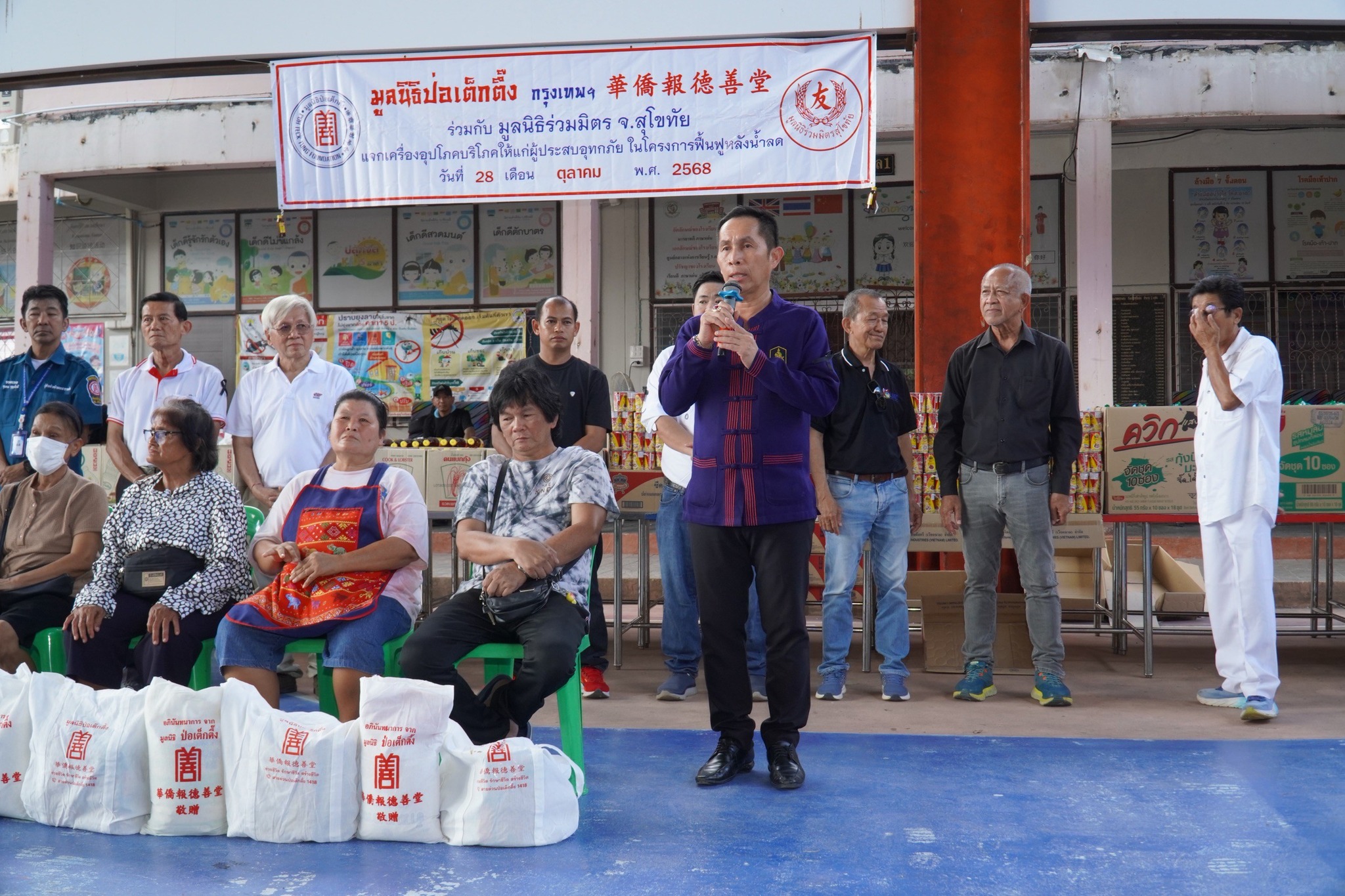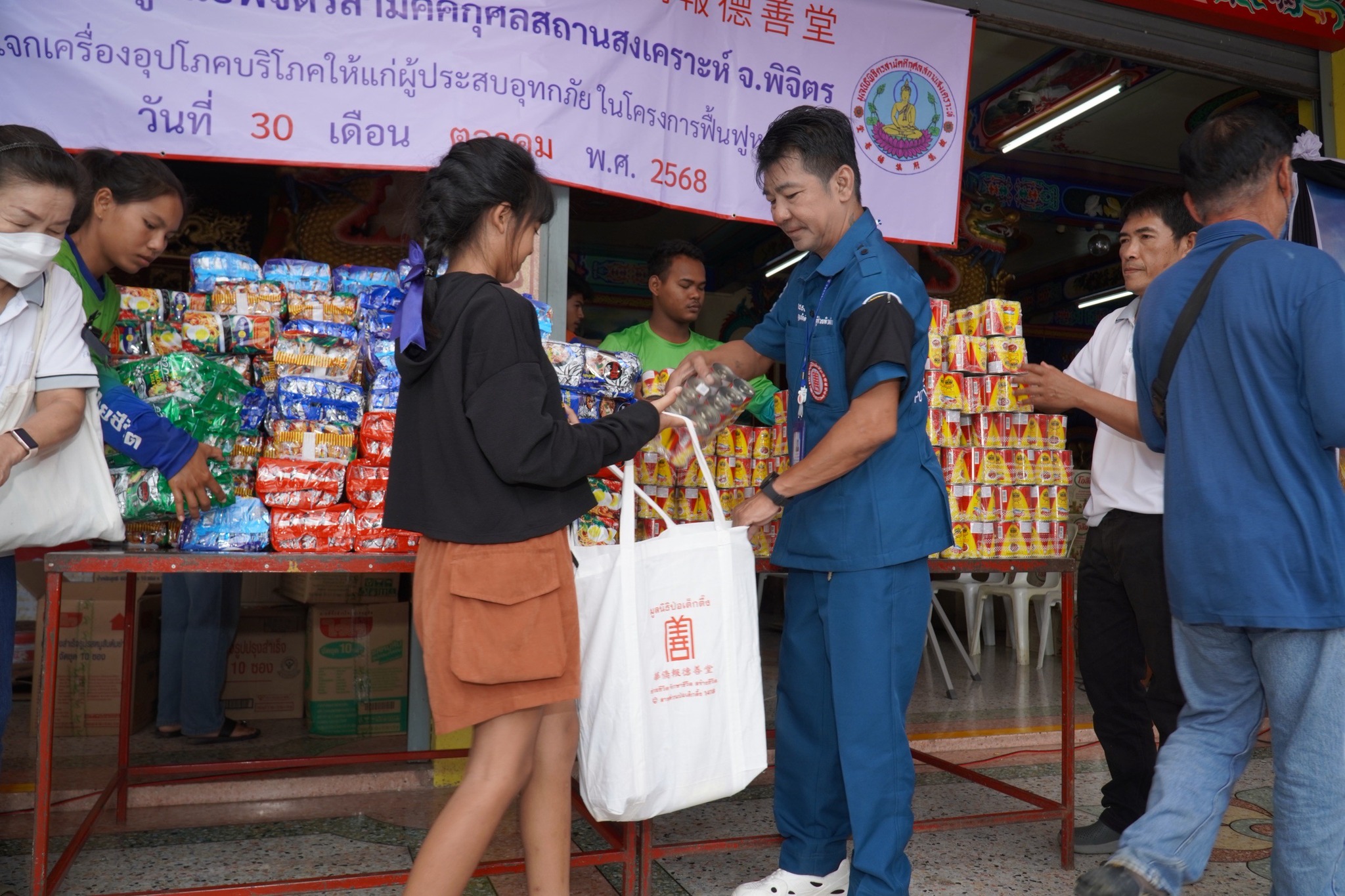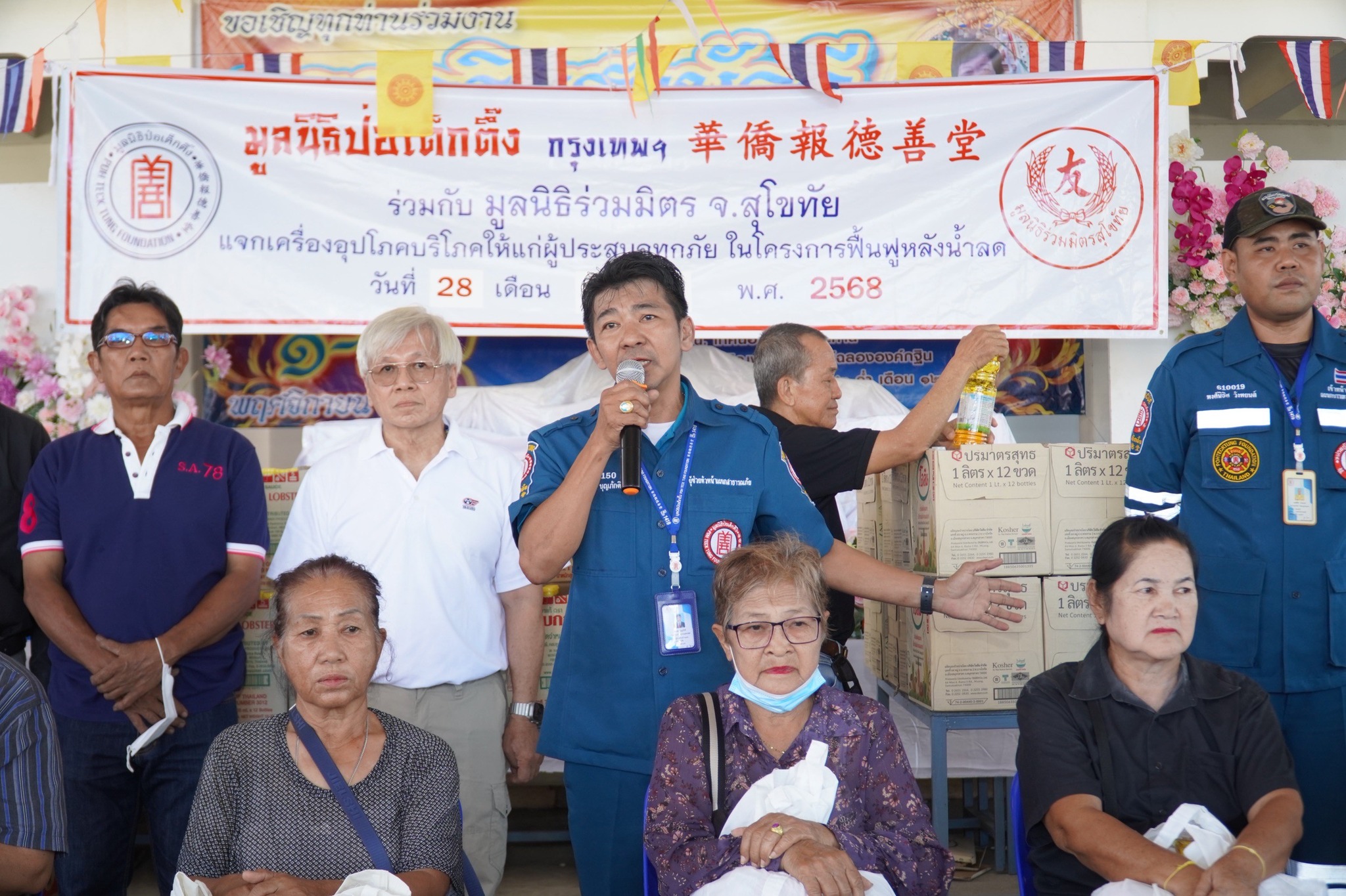 วันที่ 29 ตุลาคม พ.ศ. 2568 มูลนิธิป่อเต็กตึ๊ง นำโดย คุณศิริกุล โอภาสวงศ์ กรรมการและเลขาธิการ พร้อมด้วย คุณรัชพร ประสงค์ทรัพย์ หัวหน้าแผนกสาธารณภัย คุณชุมพล บุญภักดี ผู้ช่วยหัวหน้าแผนกสาธารณภัย คุณศิริพร โอภาสวงศ์ อาสาสมัครกิตติมศักดิ์ นำทีมเจ้าหน้าที่แผนกสาธารณภัย และเจ้าหน้าที่แผนกบรรเทาสาธารณภัย ลงพื้นที่จังหวัดอุตรดิตถ์ ร่วมกับ มูลนิธิอุตรดิตถ์สงเคราะห์ นำโดย คุณวิเชียร แสงวิวัฒน์เจริญ ประธานมูลนิธิฯ พร้อมคณะฯ แจกเครื่องอุปโภคบริโภค จำนวน 1,500 ชุด (ใน 1 ชุด ประกอบด้วย ข้าวสาร ปลากระป๋อง บะหมี่กึ่งสำเร็จรูป น้ำมัน และน้ำปลา บรรจุลงในถุงหิ้วมูลนิธิฯ) คิดเป็นเงิน 675,000 บาท (หกแสนเจ็ดหมื่นห้าพันบาทถ้วน) ให้แก่ผู้ประสบอุทกภัยในพื้นที่อำเภอตรอน อำเภอน้ำปาด และอำเภอทองแสนขัน จังหวัดอุตรดิตถ์ รวม 3 แห่ง ดังนี้