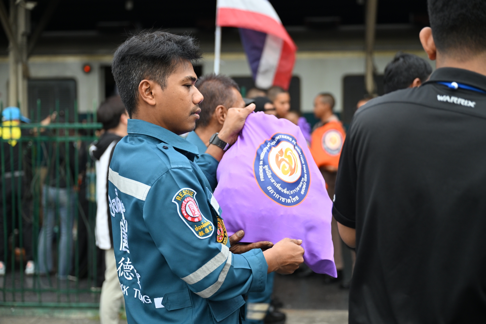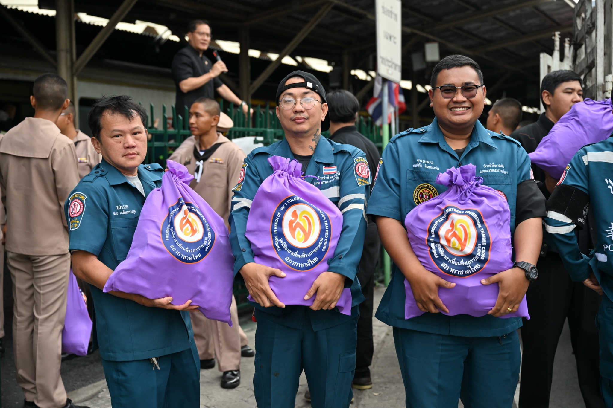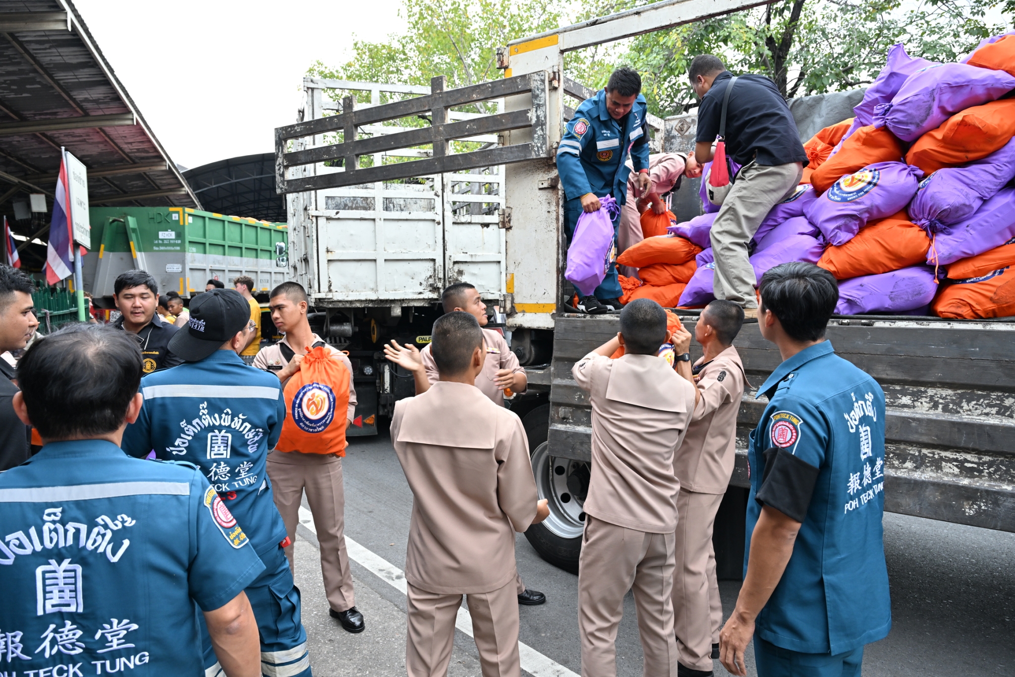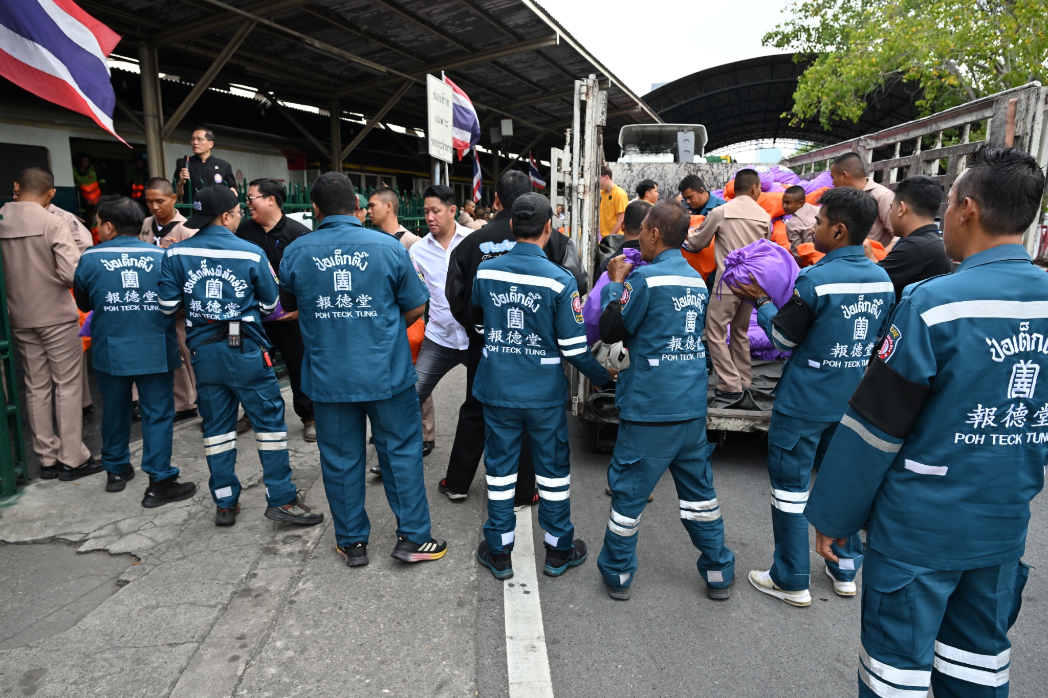วันพฤหัสบดีที่ 11 ธันวาคม พ.ศ. 2568 เวลาประมาณ 14.00 น. มูลนิธิป่อเต็กตึ๊ง ฝ่ายปฏิบัติการ นำโดย คุณยุทธนา ทาโคตร์ ผู้ช่วยหัวหน้าแผนกบรรเทาสาธารณภัยฯ ทำทีมเจ้าหน้าที่กู้ชีพกู้ภัย แผนกบรรเทาสาธารณภัย ให้การสนับสนุนลำเลียงถุงยังชีพพระราชทาน 12,600 ถุง ของมูลนิธิอาสาเพื่อนพึ่ง (ภาฯ) ยามยาก สภากาชาดไทย ขึ้นรถไฟที่สถานีรถไฟหัวลำโพง เพื่อช่วยเหลือผู้ประสบอุทกภัยในพื้นที่ภาคใต้ จังหวัดสงขลา สตูล ยะลา นราธิวาส และปัตตานี โดยมี หน่วยงานภาครัฐ เอกชน และจิตอาสา ร่วมลำเลียง ณ บริเวณสถานีรถไฟหัวลำโพง กรุงเทพฯ