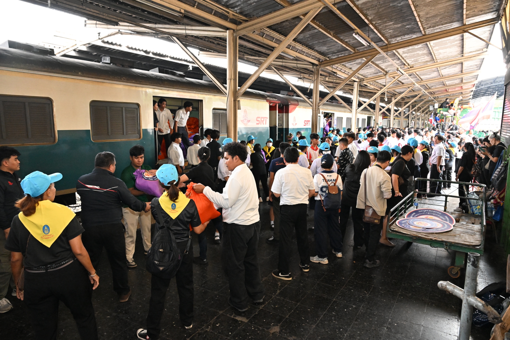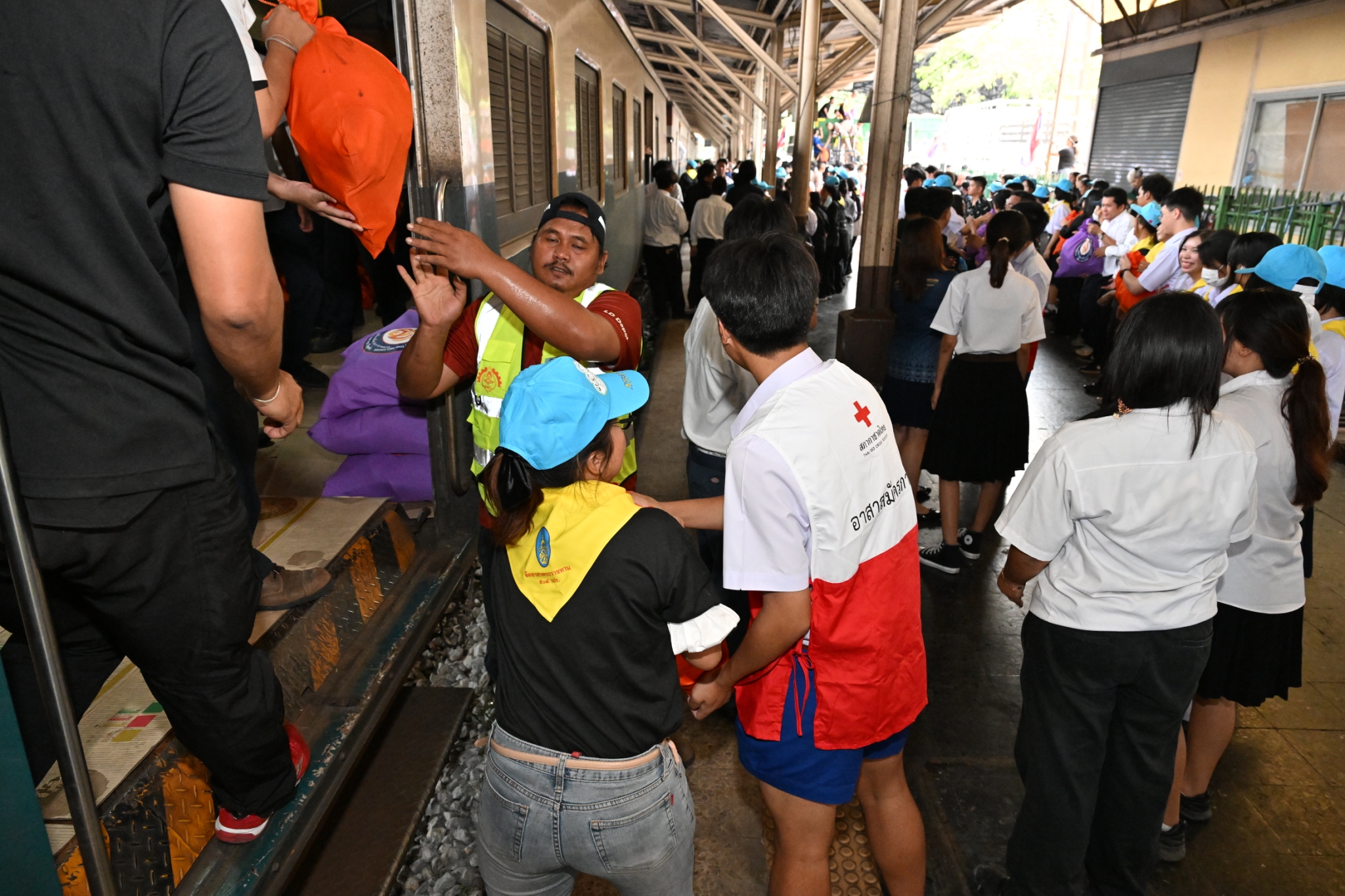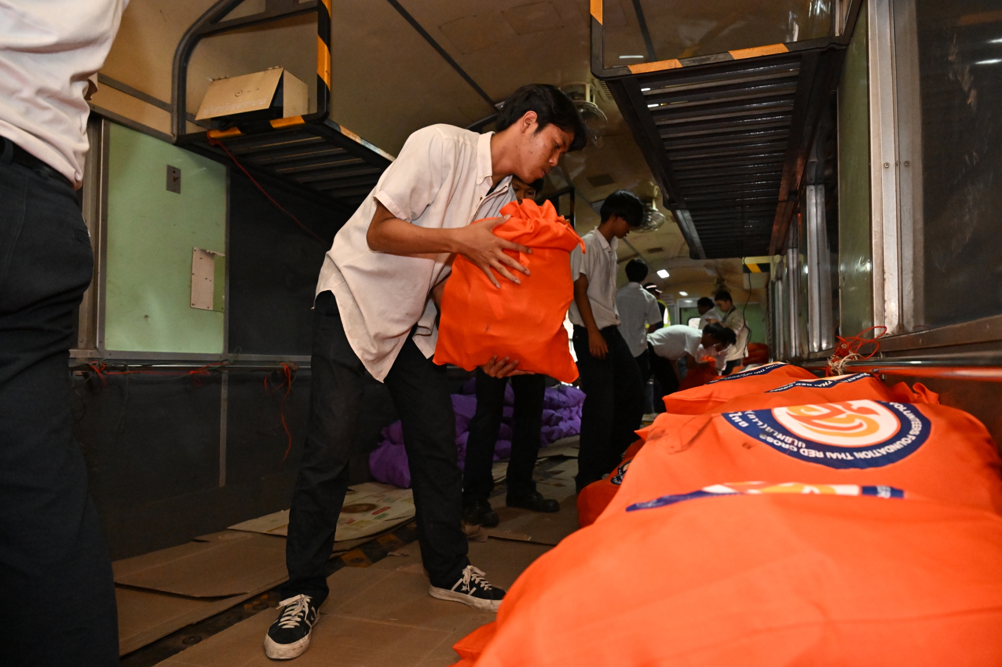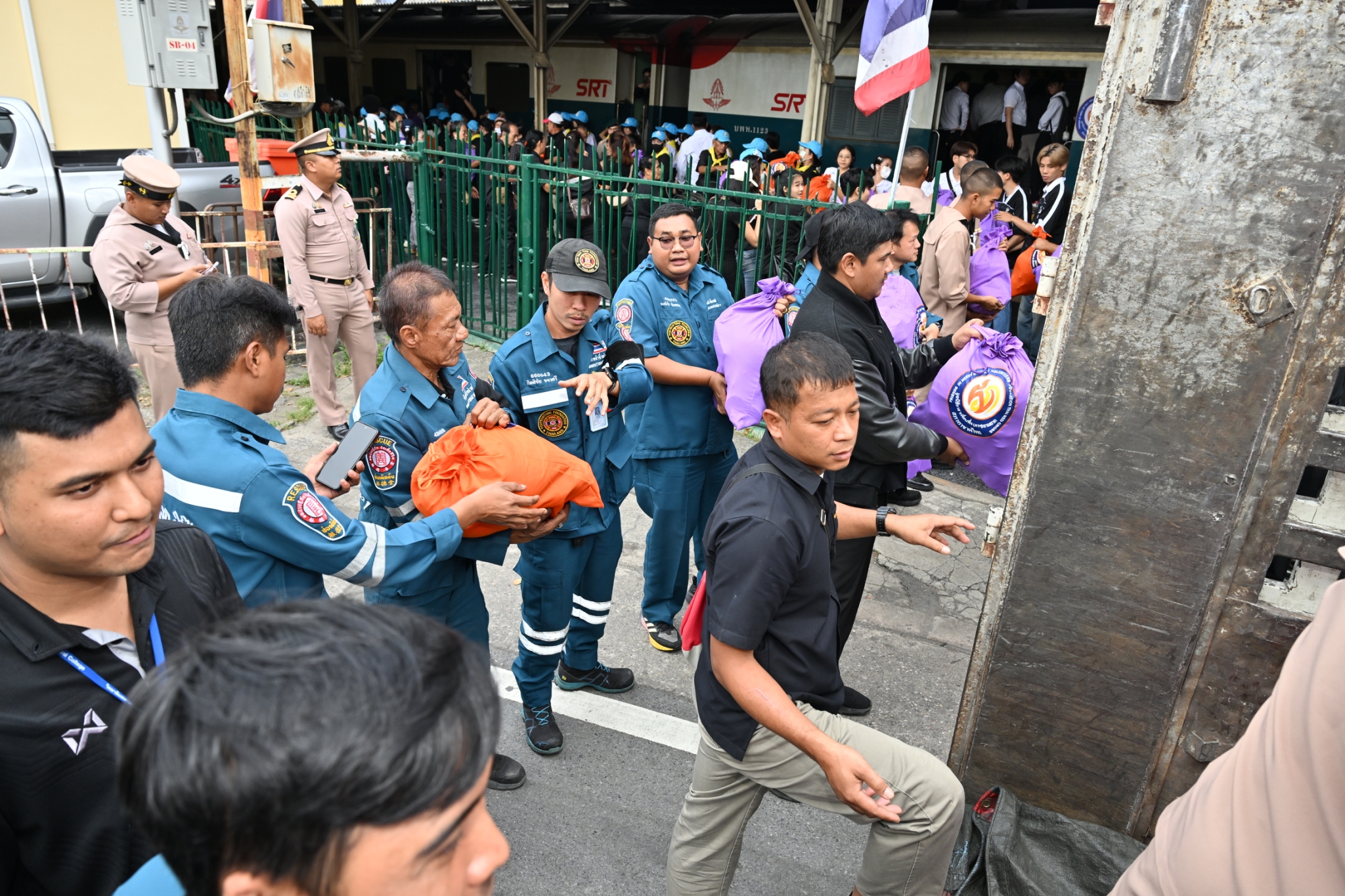 วันพฤหัสบดีที่ 11 ธันวาคม พ.ศ. 2568 เวลาประมาณ 14.00 น. มูลนิธิป่อเต็กตึ๊ง ฝ่ายปฏิบัติการ นำโดย คุณยุทธนา ทาโคตร์ ผู้ช่วยหัวหน้าแผนกบรรเทาสาธารณภัยฯ ทำทีมเจ้าหน้าที่กู้ชีพกู้ภัย แผนกบรรเทาสาธารณภัย ให้การสนับสนุนลำเลียงถุงยังชีพพระราชทาน 12,600 ถุง ของมูลนิธิอาสาเพื่อนพึ่ง (ภาฯ) ยามยาก สภากาชาดไทย ขึ้นรถไฟที่สถานีรถไฟหัวลำโพง เพื่อช่วยเหลือผู้ประสบอุทกภัยในพื้นที่ภาคใต้ จังหวัดสงขลา สตูล ยะลา นราธิวาส และปัตตานี โดยมี หน่วยงานภาครัฐ เอกชน และจิตอาสา ร่วมลำเลียง ณ บริเวณสถานีรถไฟหัวลำโพง กรุงเทพฯ