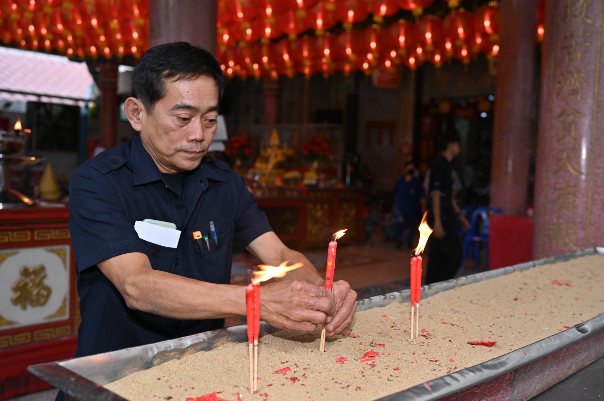 พิธีจุดเทียนเปิดงานฉลองวันเกิดหลวงปู่ไต้ฮง (ไต้ฮงกง) ภายในศาลเจ้าไต้ฮงกง มูลนิธิป่อเต็กตึ๊ง พลับพลาไชย กรุงเทพฯ