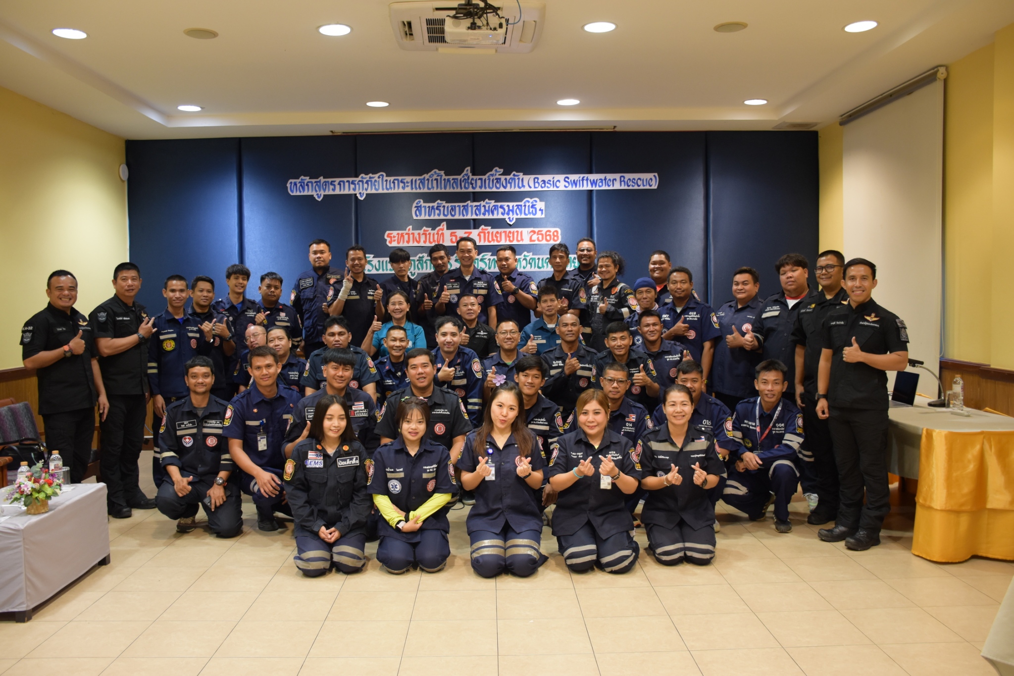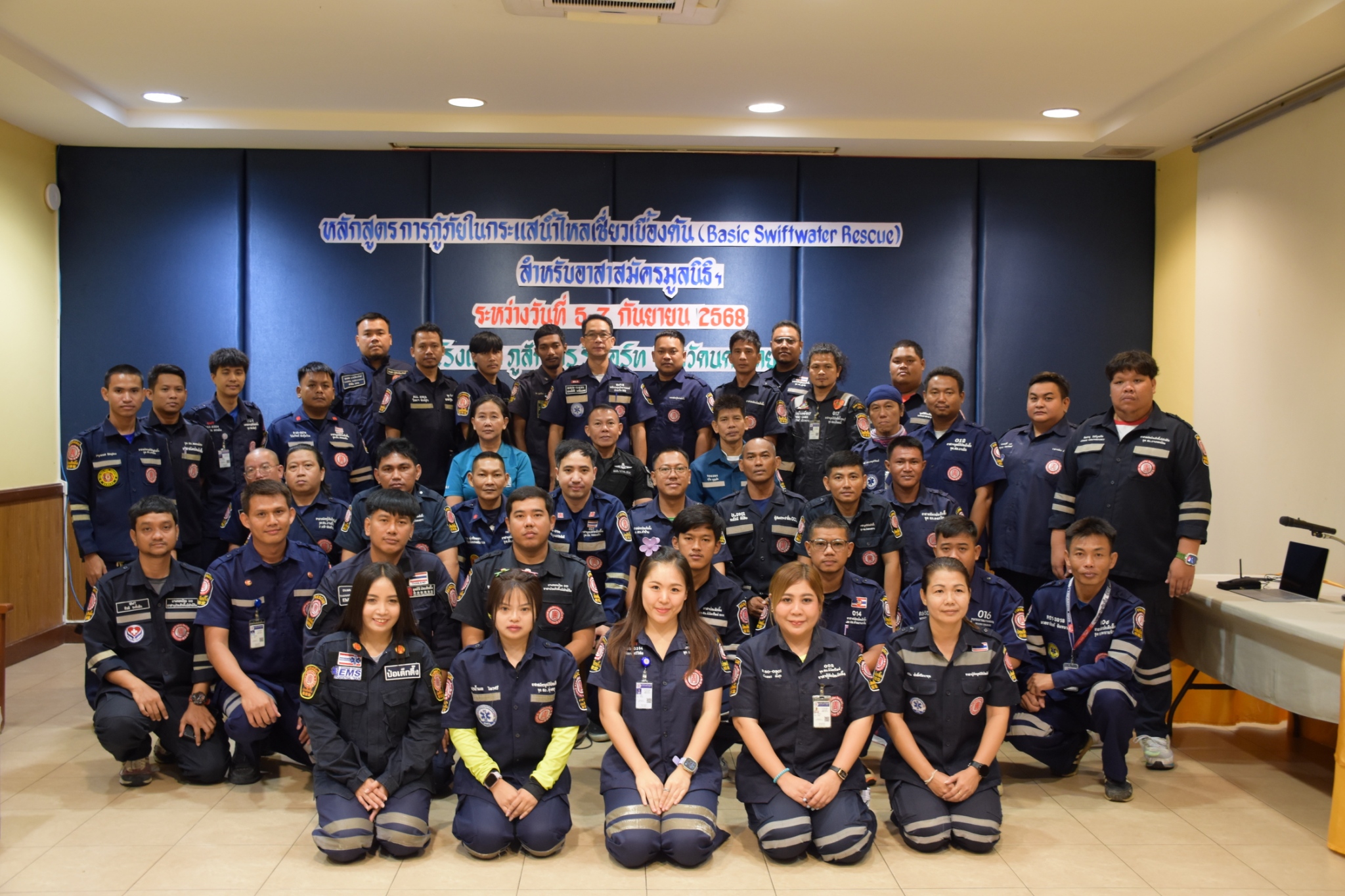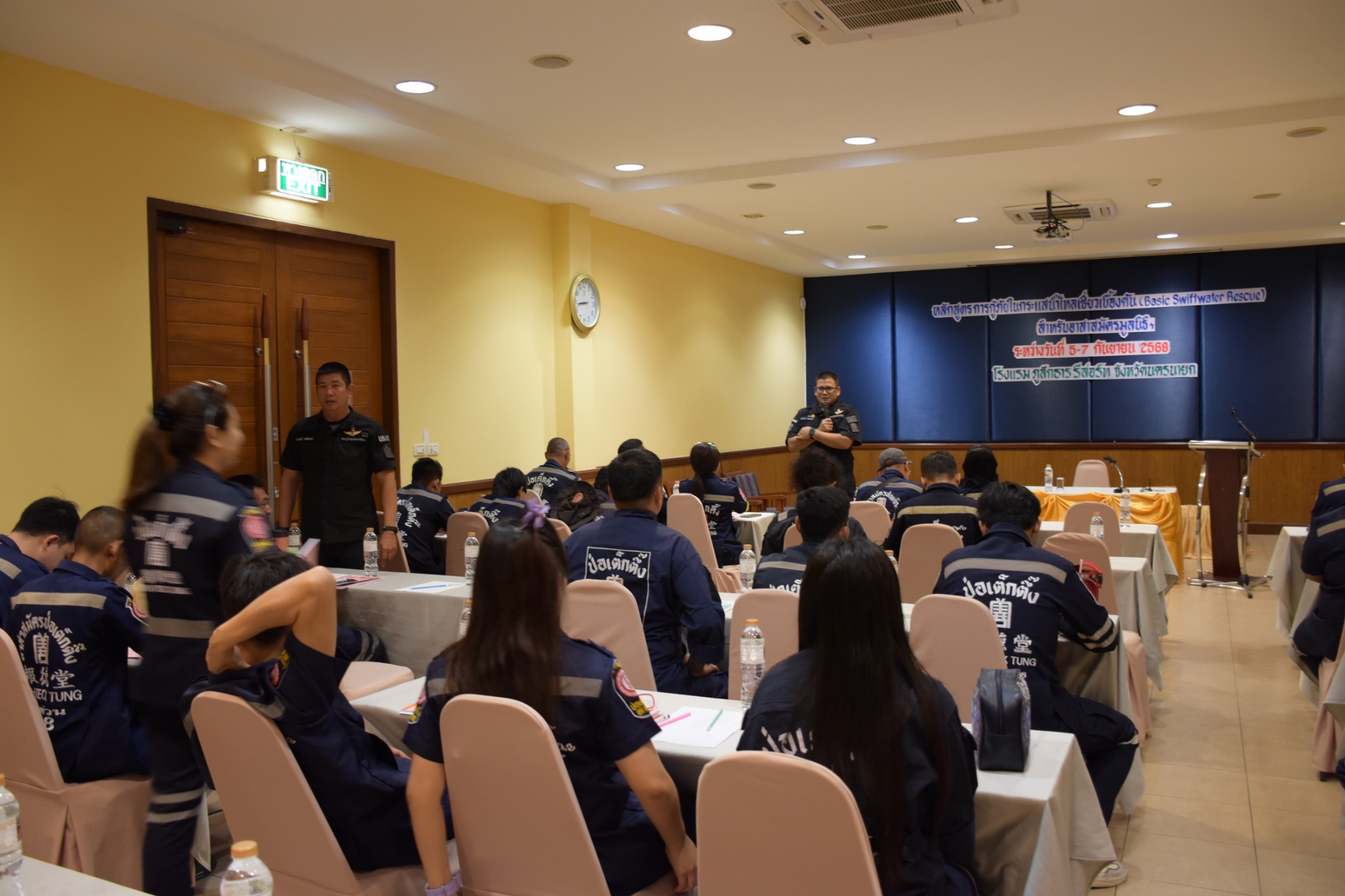 วันนี้ (5 กันยายน พ.ศ. 2568) เวลา 08.30 น. มูลนิธิป่อเต็กตึ๊ง ฝ่ายบุคคลและฝึกอบรม และ ฝ่ายปฏิบัติการ นำโดย คุณสุทิศา ยกสวัสดิ์ ผู้ช่วยผู้จัดการฝ่ายบุคคลและฝึกอบรม พร้อมด้วย คุณสุชีพ บุญเส็ง หัวหน้าแผนกอาสาสมัคร ร่วมในการกล่าวเปิดอบรม "หลักสูตรการกู้ภัยในกระแสน้ำไหลเชี่ยวเบื้องต้น (Basic Swiftwater Rescue)" สำหรับอาสาสมัครมูลนิธิฯ รุ่นที่ 2 ประจำปี พ.ศ. 2568 โดยแบ่ง การฝึกอบรมออกเป็นภาคทฤษฎีและภาคปฏิบัติ อาทิ ฟังการบรรยายวิชาบทบาทหน้าที่ด้านการกู้ภัยทางน้ำ, หลักความปลอดภัยในการปฏิบัติงาน การฝึกปฏิบัติการใช้อุปกรณ์กู้ภัยทางน้ำ การว่ายน้ำในกระแสน้ำเชี่ยว การข้ามลำน้ำแบบไม่ใช้อุปกรณ์และใช้อุปกรณ์ การใช้เงื่อนเชือกในการกู้ภัยกระแสน้ำเชี่ยว การสื่อสารสัญญาณในการกู้ภัยทางน้ำ การใช้เรือกู้ภัยในกระแสน้ำเชี่ยว การสร้างระบบดึงเรือ กรณีติดโขดหินและการกู้ภัยเรือล่มในกระแสน้ำเชี่ยว เป็นต้น รวมใช้ระยะเวลาในการฝึกอบรมทั้งสิ้น 3 วัน โดยมี ผู้เชียวชาญจาก กรมป้องกันและบรรเทาสาธารณภัยฯ เป็นวิทยากรในการฝึกอบรม ณ โรงแรมภูสักธาร รีสอร์ท จังหวัดนครนายก