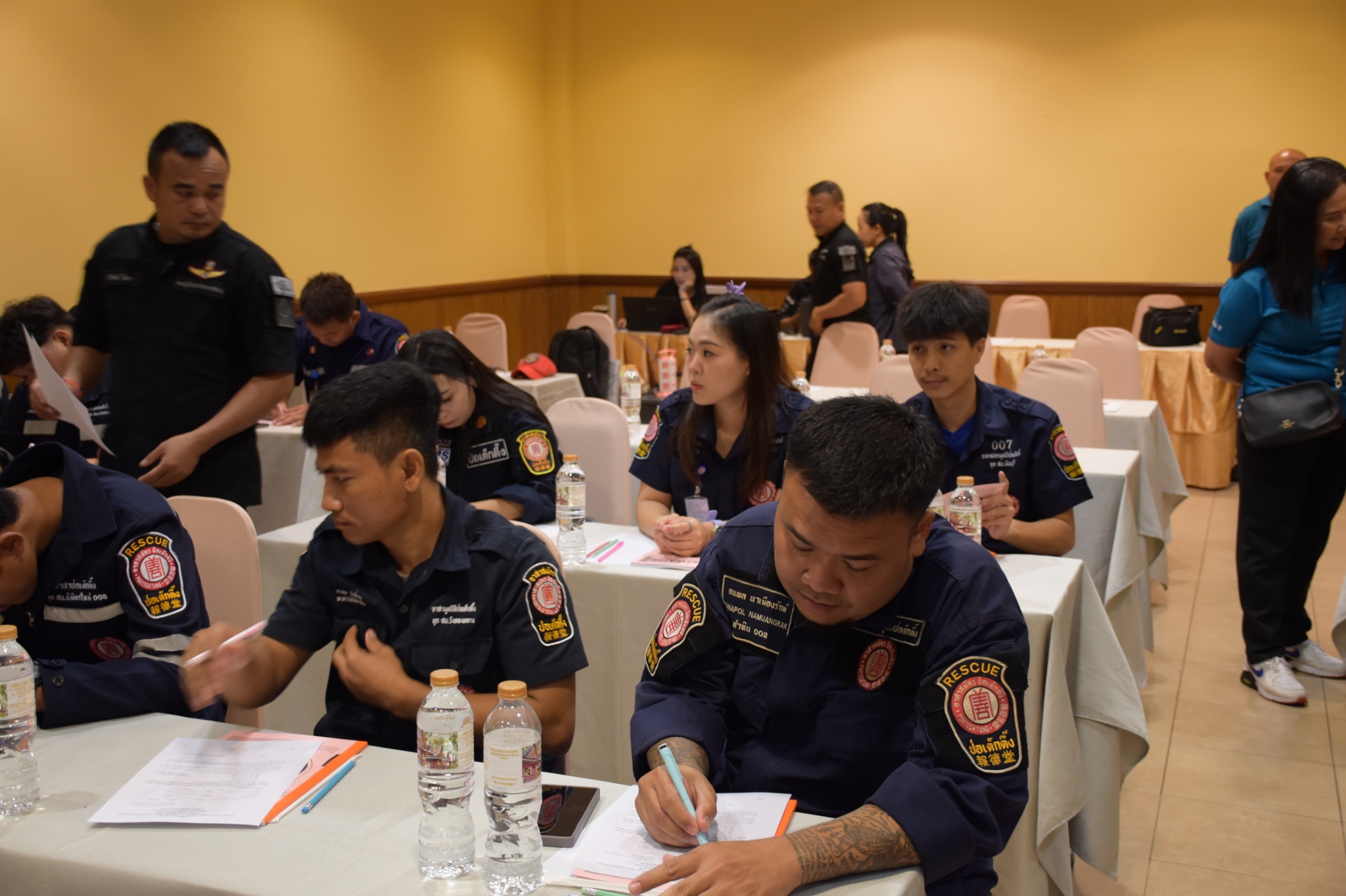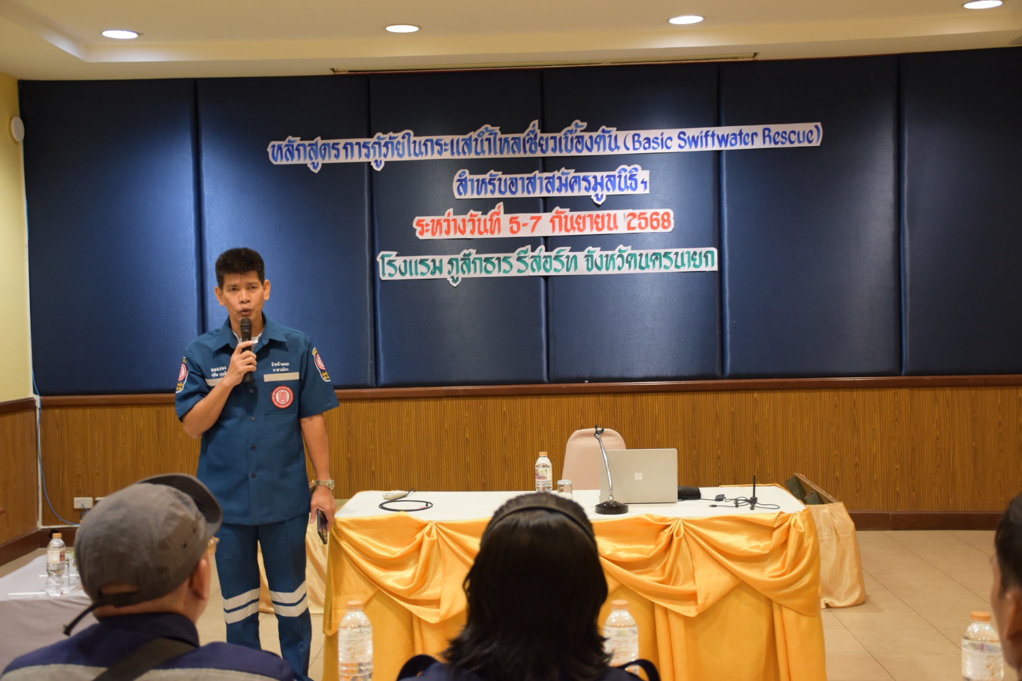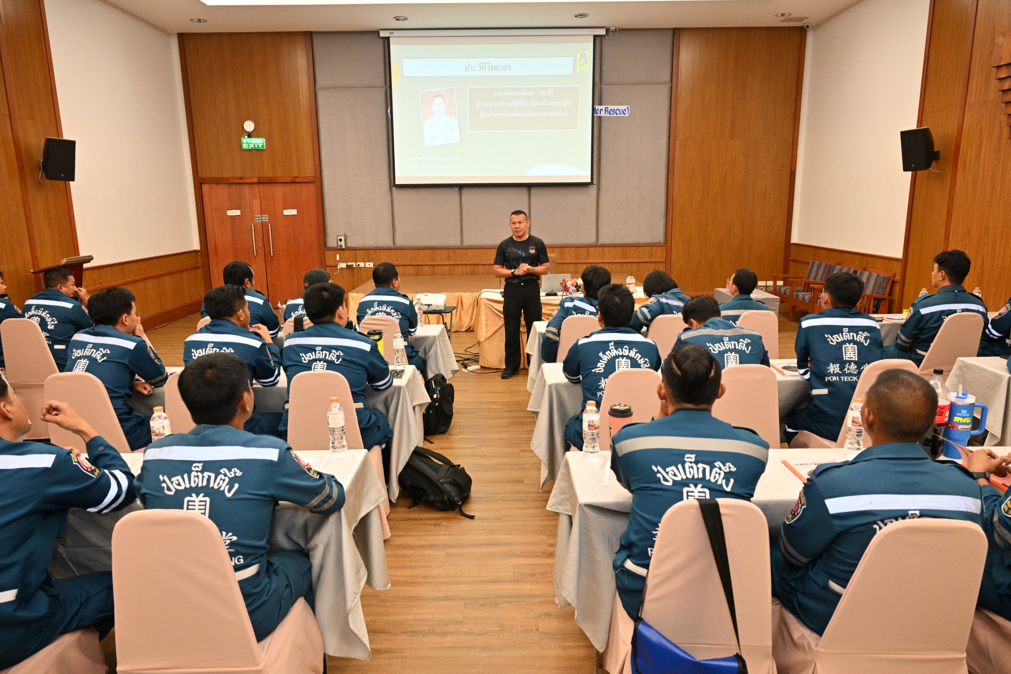วันนี้ (5 กันยายน พ.ศ. 2568) เวลา 08.30 น. มูลนิธิป่อเต็กตึ๊ง ฝ่ายบุคคลและฝึกอบรม และ ฝ่ายปฏิบัติการ นำโดย คุณสุทิศา ยกสวัสดิ์ ผู้ช่วยผู้จัดการฝ่ายบุคคลและฝึกอบรม พร้อมด้วย คุณสุชีพ บุญเส็ง หัวหน้าแผนกอาสาสมัคร ร่วมในการกล่าวเปิดอบรม "หลักสูตรการกู้ภัยในกระแสน้ำไหลเชี่ยวเบื้องต้น (Basic Swiftwater Rescue)" สำหรับอาสาสมัครมูลนิธิฯ รุ่นที่ 2 ประจำปี พ.ศ. 2568 โดยแบ่ง การฝึกอบรมออกเป็นภาคทฤษฎีและภาคปฏิบัติ อาทิ ฟังการบรรยายวิชาบทบาทหน้าที่ด้านการกู้ภัยทางน้ำ, หลักความปลอดภัยในการปฏิบัติงาน การฝึกปฏิบัติการใช้อุปกรณ์กู้ภัยทางน้ำ การว่ายน้ำในกระแสน้ำเชี่ยว การข้ามลำน้ำแบบไม่ใช้อุปกรณ์และใช้อุปกรณ์ การใช้เงื่อนเชือกในการกู้ภัยกระแสน้ำเชี่ยว การสื่อสารสัญญาณในการกู้ภัยทางน้ำ การใช้เรือกู้ภัยในกระแสน้ำเชี่ยว การสร้างระบบดึงเรือ กรณีติดโขดหินและการกู้ภัยเรือล่มในกระแสน้ำเชี่ยว เป็นต้น รวมใช้ระยะเวลาในการฝึกอบรมทั้งสิ้น 3 วัน โดยมี ผู้เชียวชาญจาก กรมป้องกันและบรรเทาสาธารณภัยฯ เป็นวิทยากรในการฝึกอบรม ณ โรงแรมภูสักธาร รีสอร์ท จังหวัดนครนายก