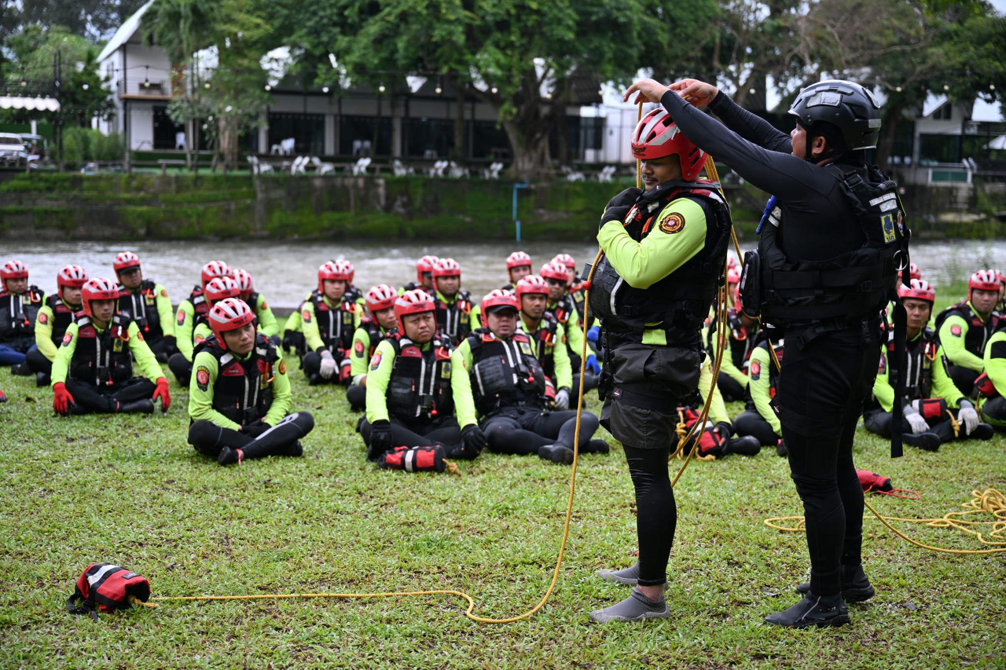 [ประมวลภาพ] การฝึกอบรม "หลักสูตรการกู้ภัยในกระแสน้ำไหลเชี่ยวเบื้องต้น (Basic Swiftwater Rescue)" สำหรับเจ้าหน้าที่แผนกบรรเทาสาธารณภัย มูลนิธิป่อเต็กตึ๊ง (วันที่ 2 : ฝึกภาคปฏิบัติ) ฝึกปฏิบัติการใช้อุปกรณ์กู้ภัยทางน้ำ การว่ายน้ำในกระแสน้ำเชี่ยว การข้ามลำน้ำแบบไม่ใช้อุปกรณ์และใช้อุปกรณ์ การใช้เงื่อนเชือกในการกู้ภัยกระแสน้ำเชี่ยว การสื่อสารสัญญาณในการกู้ภัยทางน้ำ การใช้เรือกู้ภัยในกระแสน้ำเชี่ยว การสร้างระบบดึงเรือ กรณีติดโขดหินและการกู้ภัยเรือล่มในกระแสน้ำเชี่ยว เพื่อเป็นการทบทวนความรู้ความสามารถ และเพิ่มพูนทักษะด้านการกู้ภัยทางน้ำ โดยมี ผู้เชี่ยวชาญจาก กรมป้องกันและบรรเทาสาธารณภัยฯ เป็นวิทยากรในการฝึกอบรม ณ โรงแรมภูสักธาร รีสอร์ท จังหวัดนครนายก