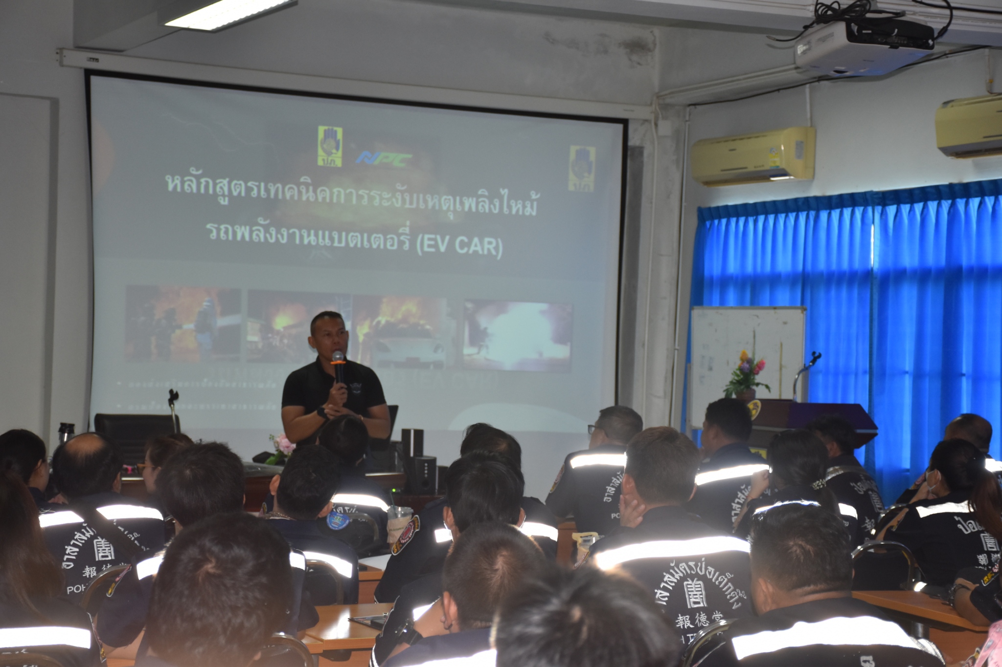 ระหว่างวันที่ 4-5 ตุลาคม พ.ศ. 2568 มูลนิธิป่อเต็กตึ๊ง ฝ่ายบุคคลและฝึกอบรม ร่วมกับ กรมป้องกันและบรรเทาสาธารณภัย จัดอบรมหลักสูตรการกู้ภัยยานยนต์ไฟฟ้า รุ่นที่ 2 ประจำปี พ.ศ. 2568 ให้แก่อาสาสมัครกู้ภัยมูลนิธิฯ โดยแบ่งการฝึกอบรมออกเป็นภาคทฤษฎีและฝึกปฏิบัติ อาทิ เรียนรู้พฤติกรรมการเผาไหม้และกลไกการติดไฟของเชื้อเพลิงแบตเตอรี่, อันตรายจากเพลิงไหม้รถยนต์แบตเตอรี่, เรียนรู้ลักษณะของเชื้อเพลิงแบตเตอรี่เปรียบเทียบกับเชื้อเพลิงอื่นและเทคโนโลยีสารดับเพลิงที่ใช้กับเชื้อเพลิงแบตเตอรี่, การเข้าควบคุมเพลิงไหม้จากแบตเตอรี่แบบทีม พร้อมฝึกสถานการณ์จำลอง เพื่อให้ผู้ฝึกได้ปฏิบัติจริง โดยมี คุณสุทิศา ยกสวัสดิ์ ผู้ช่วยผู้จัดการฝ่ายบุคคลและฝึกอบรม พร้อมด้วย คุณสุชีพ บุญเส็ง หัวหน้าแผนกอาสาสมัคร กล่าวเปิดการฝึกอบรมฯ และได้รับเกียรติจาก ผู้เชี่ยวชาญ จากกรมป้องกันและบรรเทาสาธารณภัย ร่วมเป็นวิทยากรในการฝึกอบรมฯ ณ ศูนย์ฝึกอบรมอาสาสมัครป้องกันภัยฝ่ายพลเรือน กรมป้องกันและบรรเทาสาธารณภัย จังหวัดชัยนาท