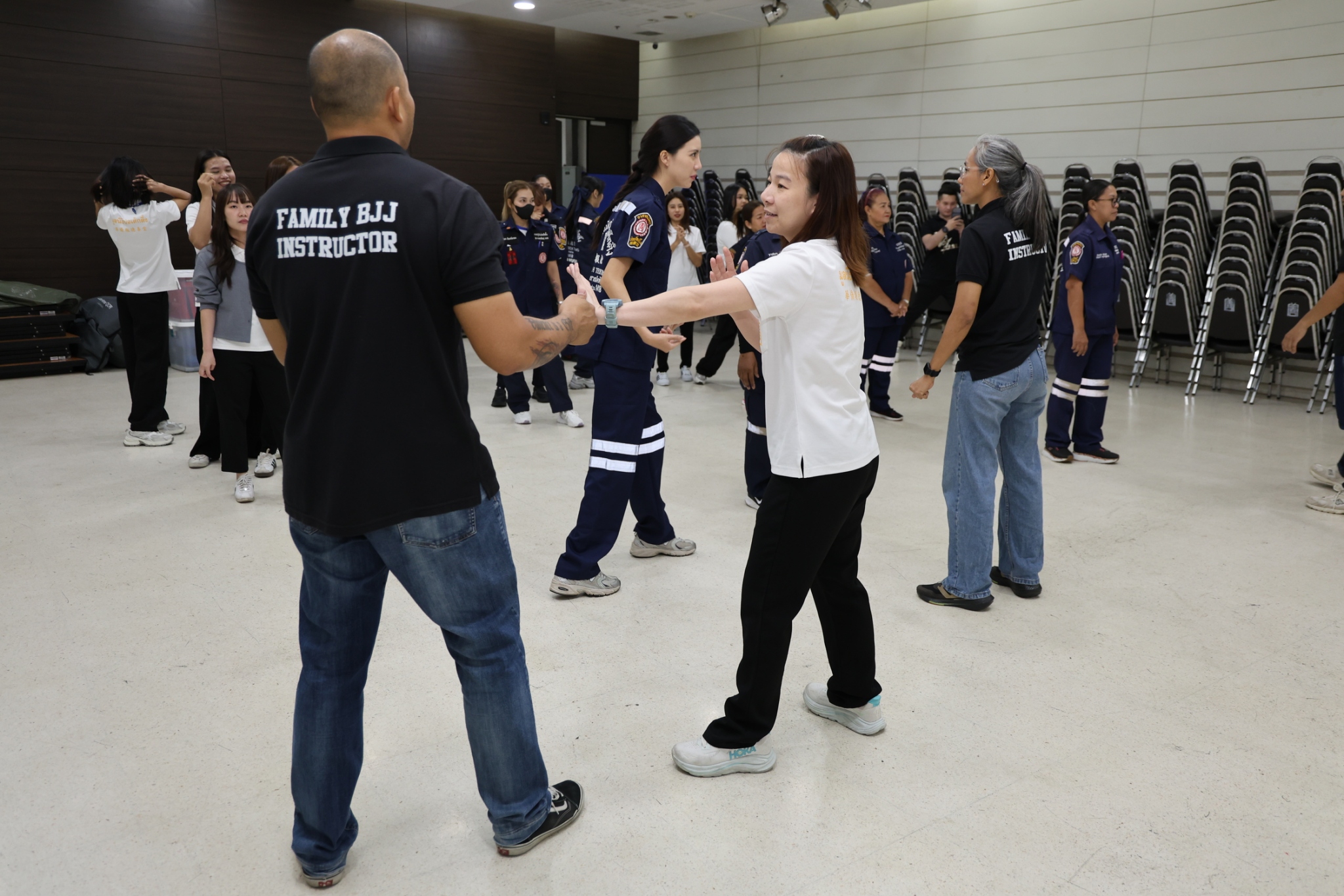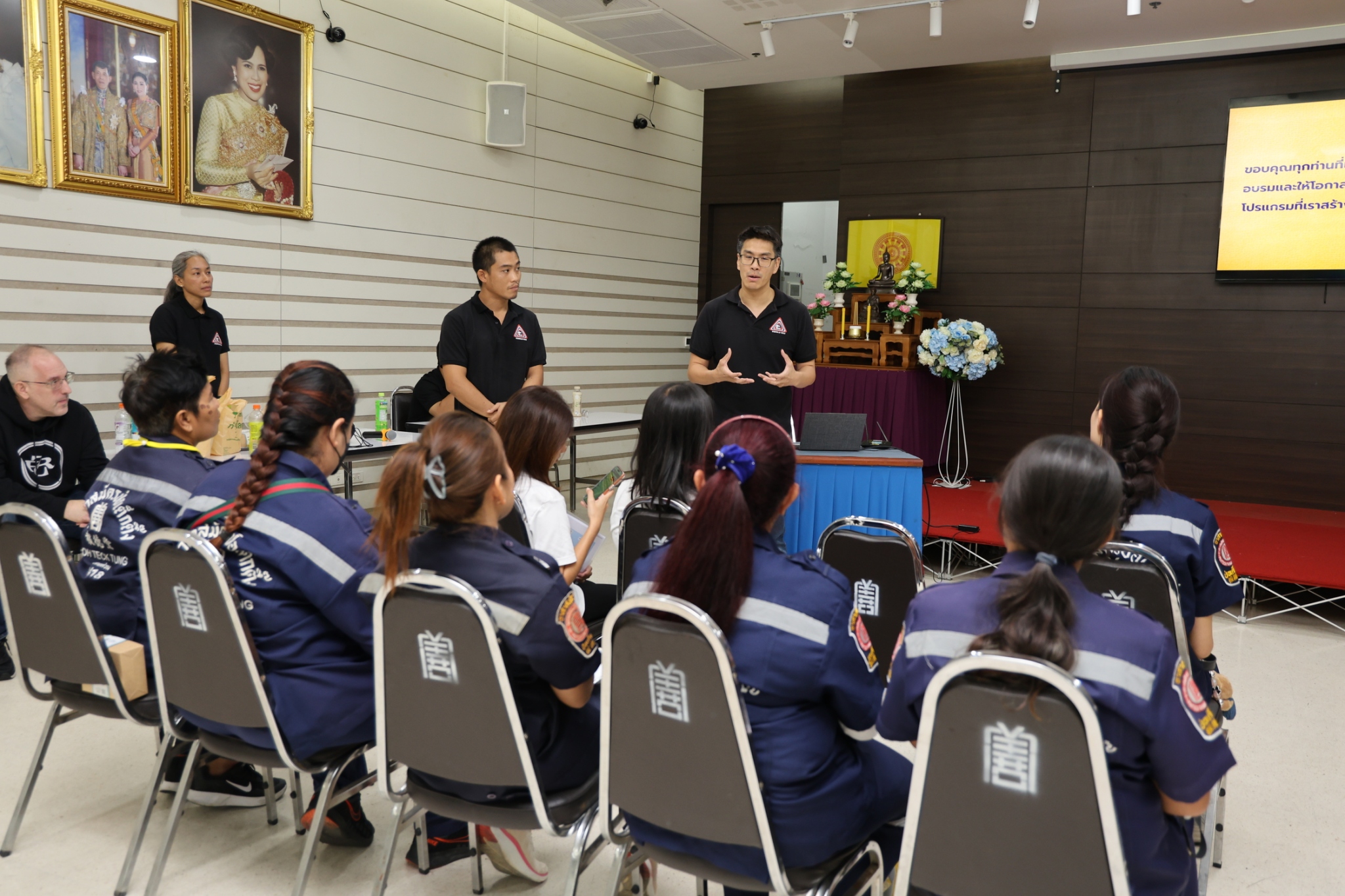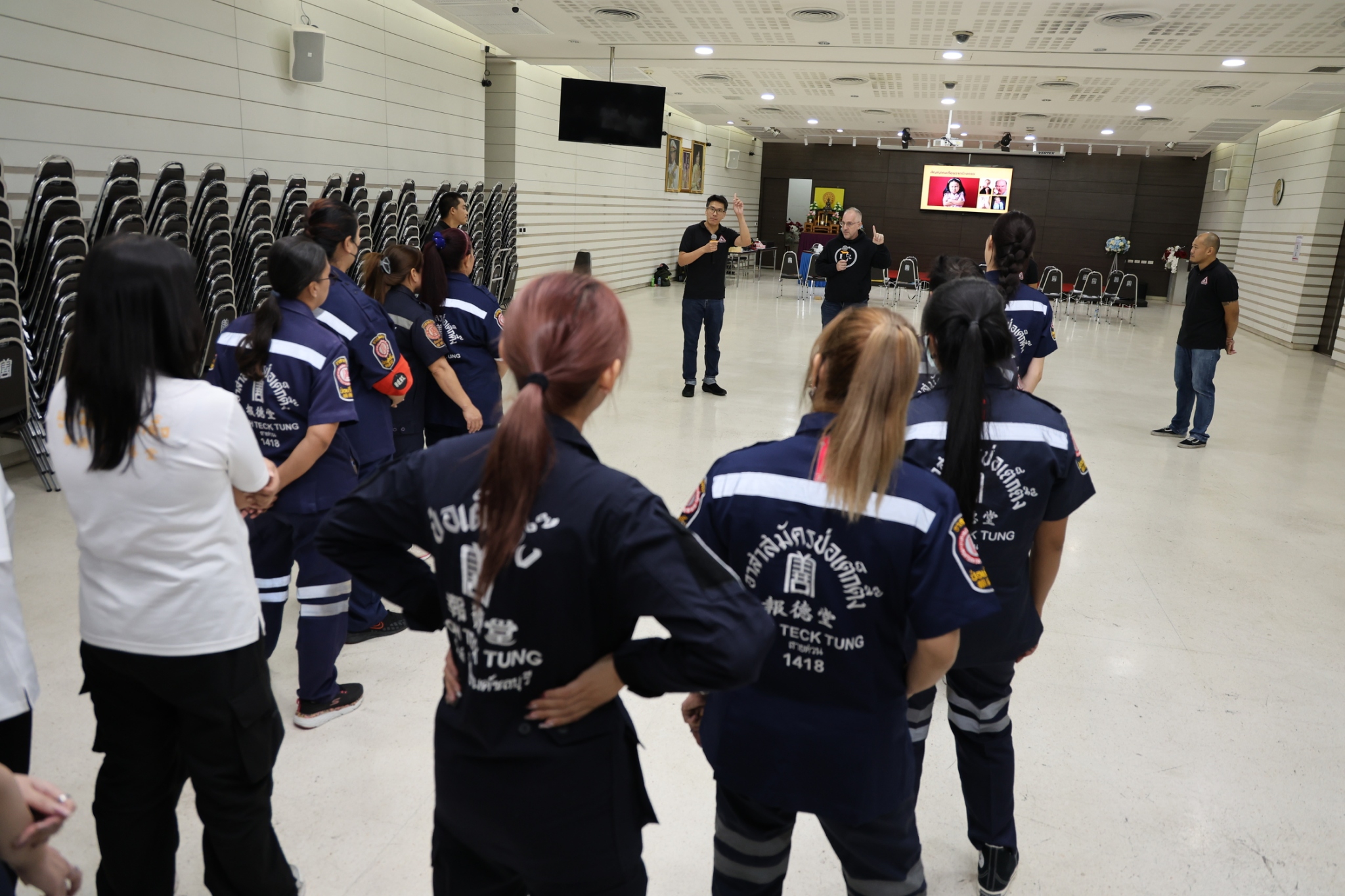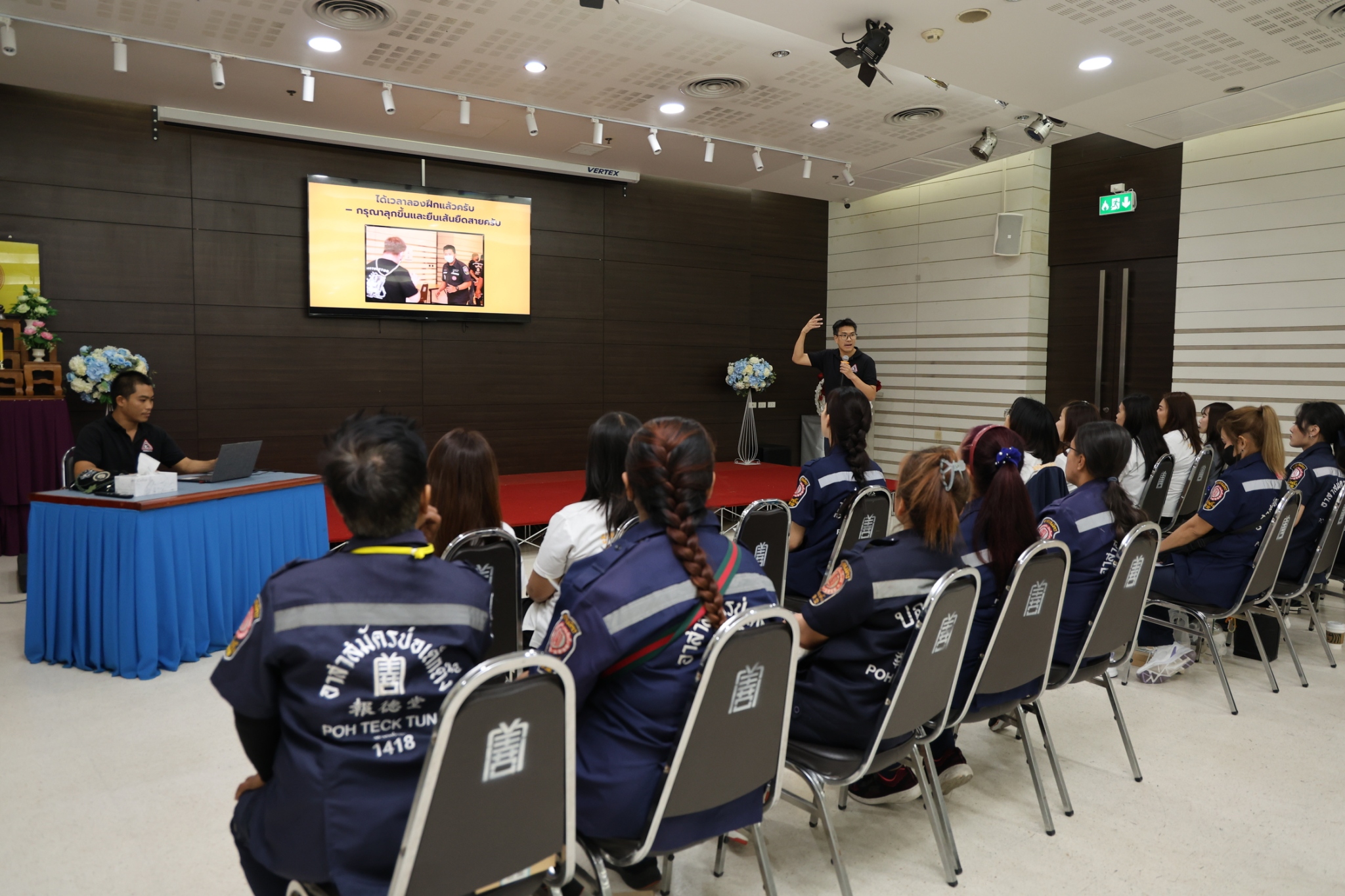 วันนี้ (24 ตุลาคม พ.ศ. 2568) เวลา 13.00-15.00 น. มูลนิธิป่อเต็กตึ๊ง ฝ่ายบุคคลและฝึกอบรม นำโดย คุณถาวร พาเชื้อ หัวหน้าแผนกฝึกอบรม จัดอบรมหลักสูตร "เริ่มต้นวิชาป้องกันตัวและต้านภัยคุกคามและความรุนแรงภายใต้การปฏิบัติภารกิจ Level 1" รุ่นที่ 5/68 ให้แก่เจ้าหน้าที่และอาสาสมัครมูลนิธิฯ เพื่อให้มีความรู้และเข้าใจ ตลอดจนตระหนักถึงความเสี่ยงที่อาจจะเกิดขึ้นจากผู้ไม่ประสงค์ดี รวมทั้งมีทักษะในการประเมินความเสี่ยงจากผู้ไม่หวังดี และสามารถบริหารจัดการความเสี่ยงที่เกิดขึ้นจากผู้ไม่ประสงค์ดีขณะปฏิบัติหน้าที่ได้อย่างมีประสิทธิภาพ ลดการสูญเสียที่อาจเกิดขึ้นทั้งต่อตนเองและผู้ประสบเหตุ โดยมี คณะผู้เชี่ยวชาญด้านการฝึกสอนจาก Family BJJ เป็นวิทยากรในการฝึกสอน ณ ห้องประชุมชั้น 2 อาคาร 2 มูลนิธิป่อเต็กตึ๊ง พลับพลาไชย กรุงเทพฯ