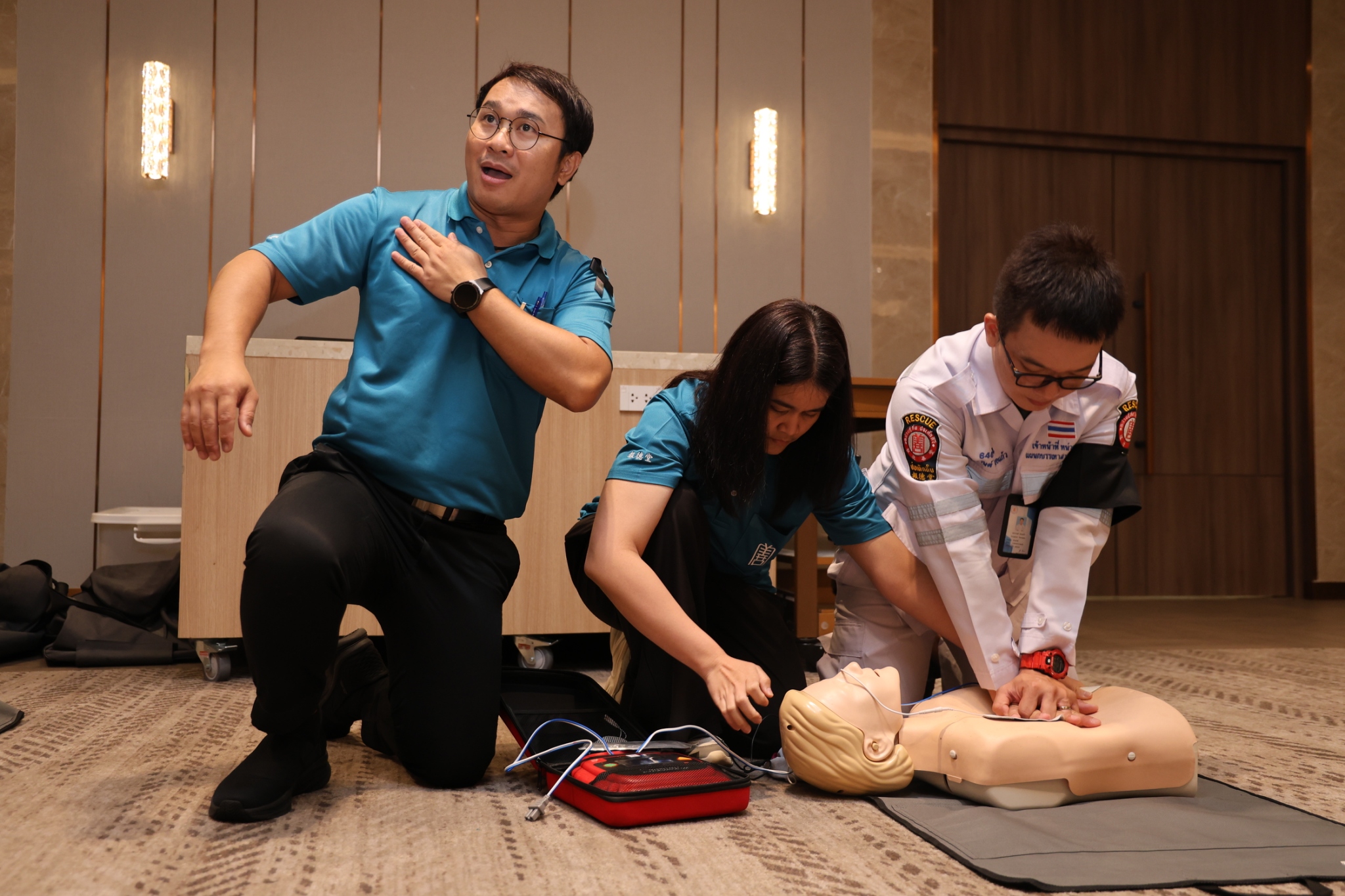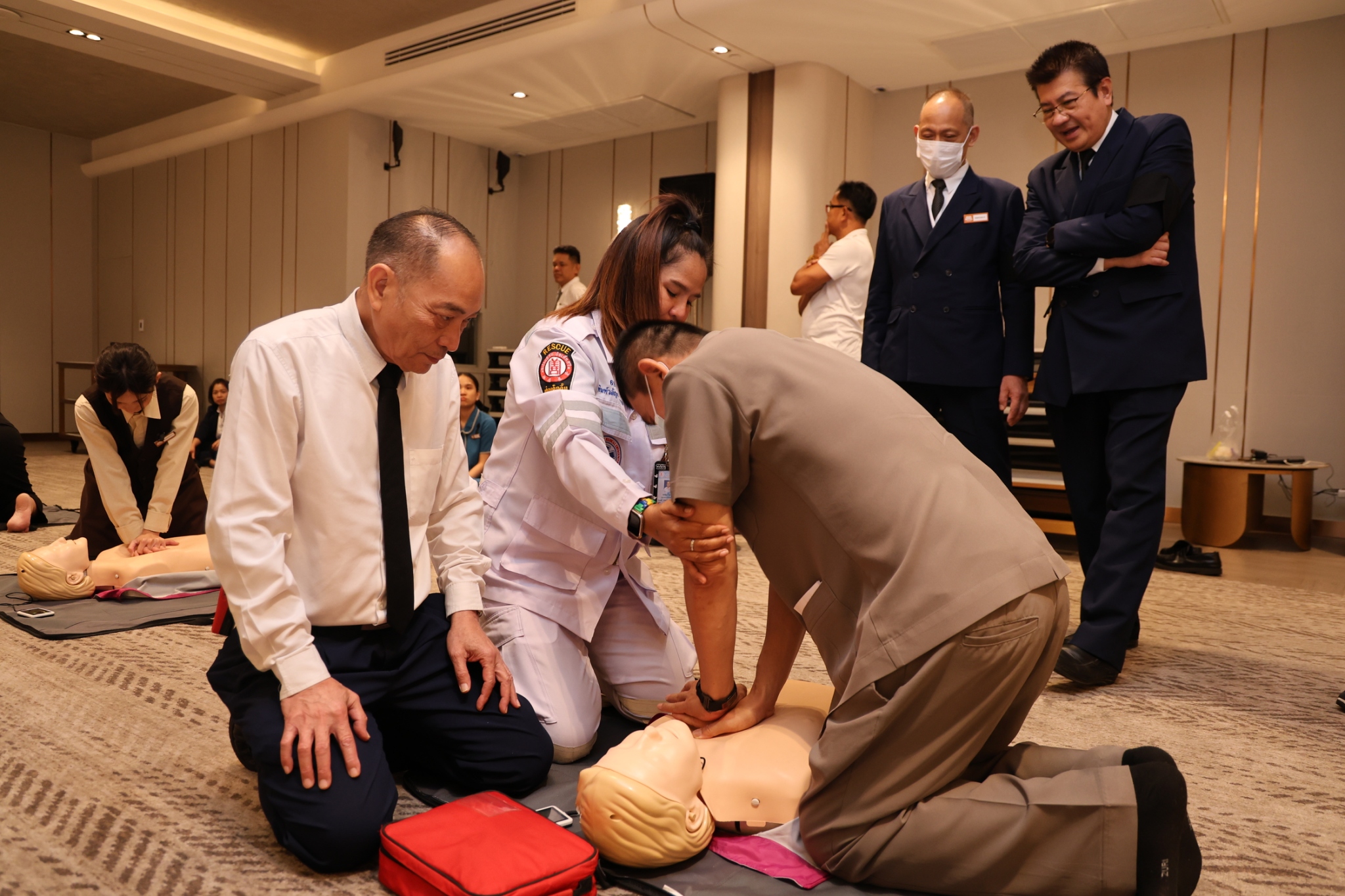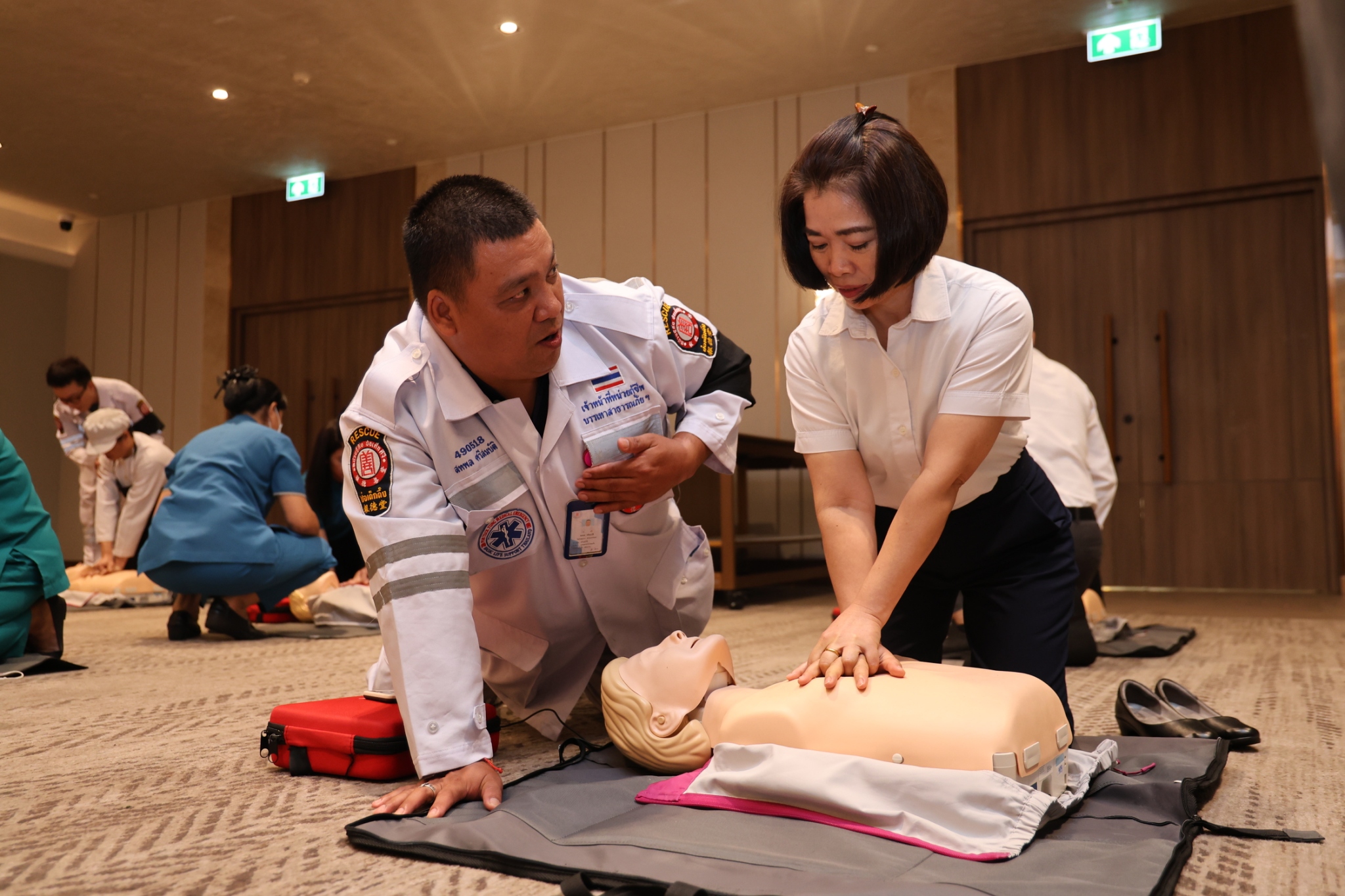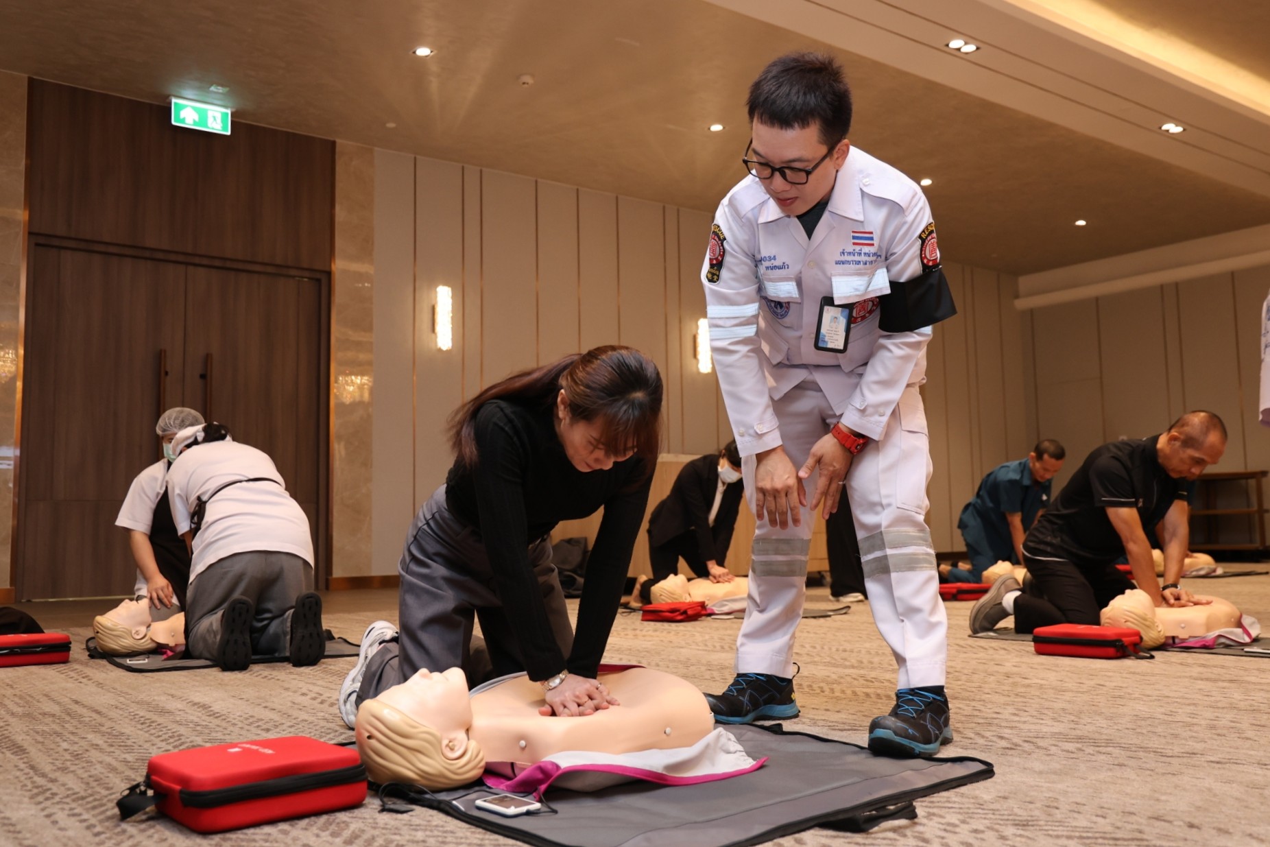 จัดอบรมการปฐมพยาบาลเบื้องต้นและการระงับอัคคีภัยให้แก่พนักงานโรงแรมเอเชีย กรุงเทพฯ
