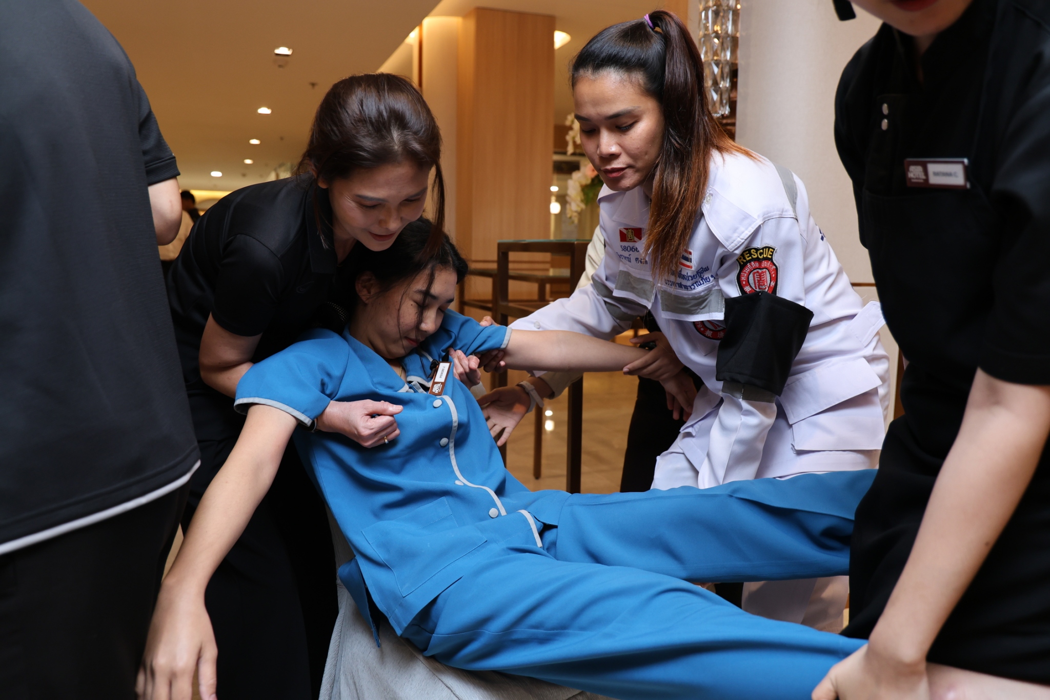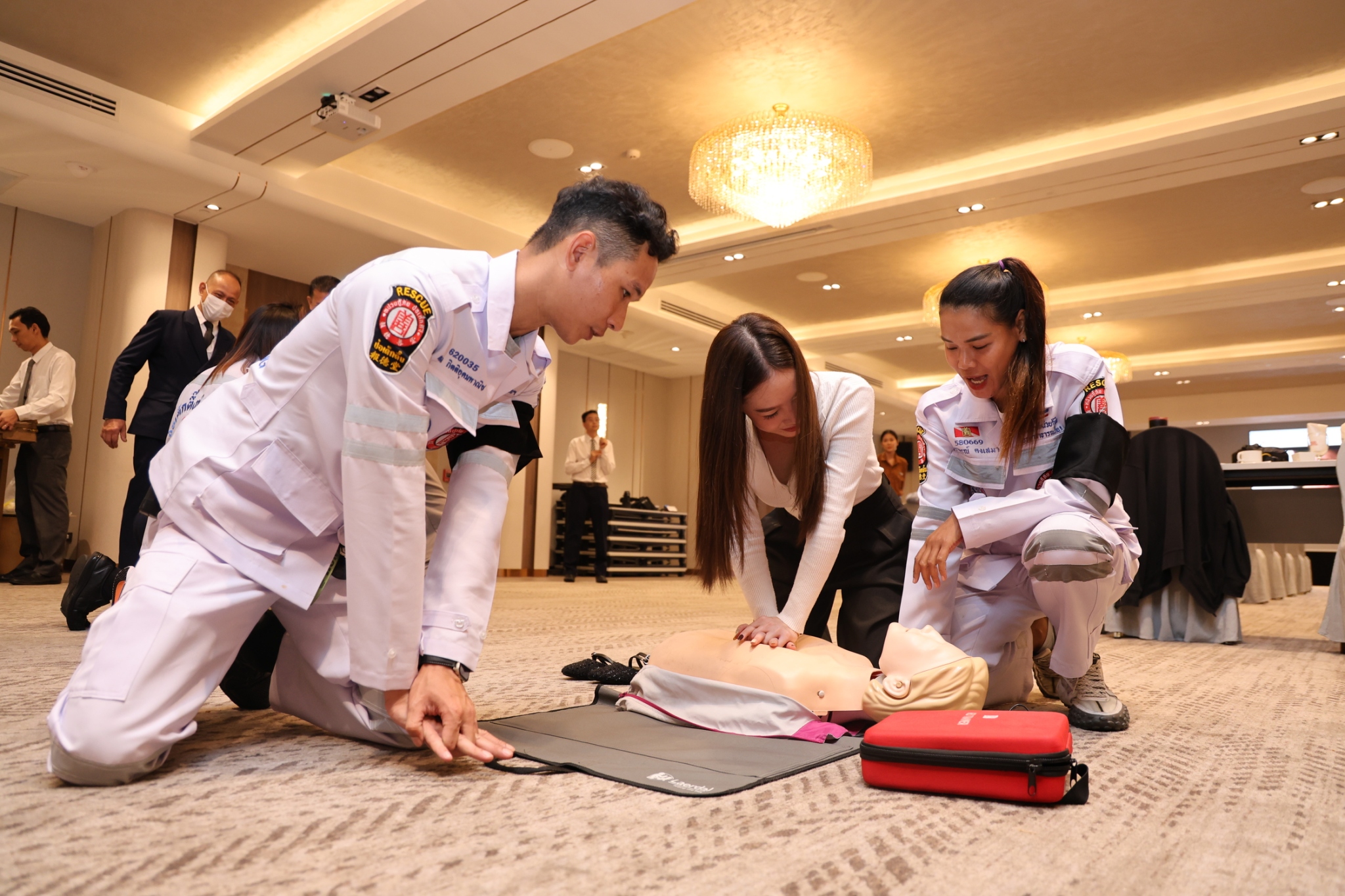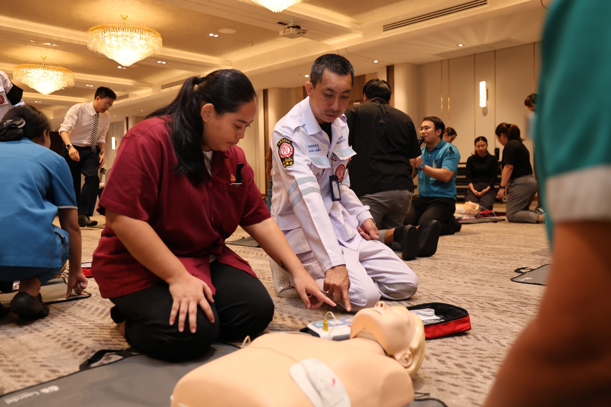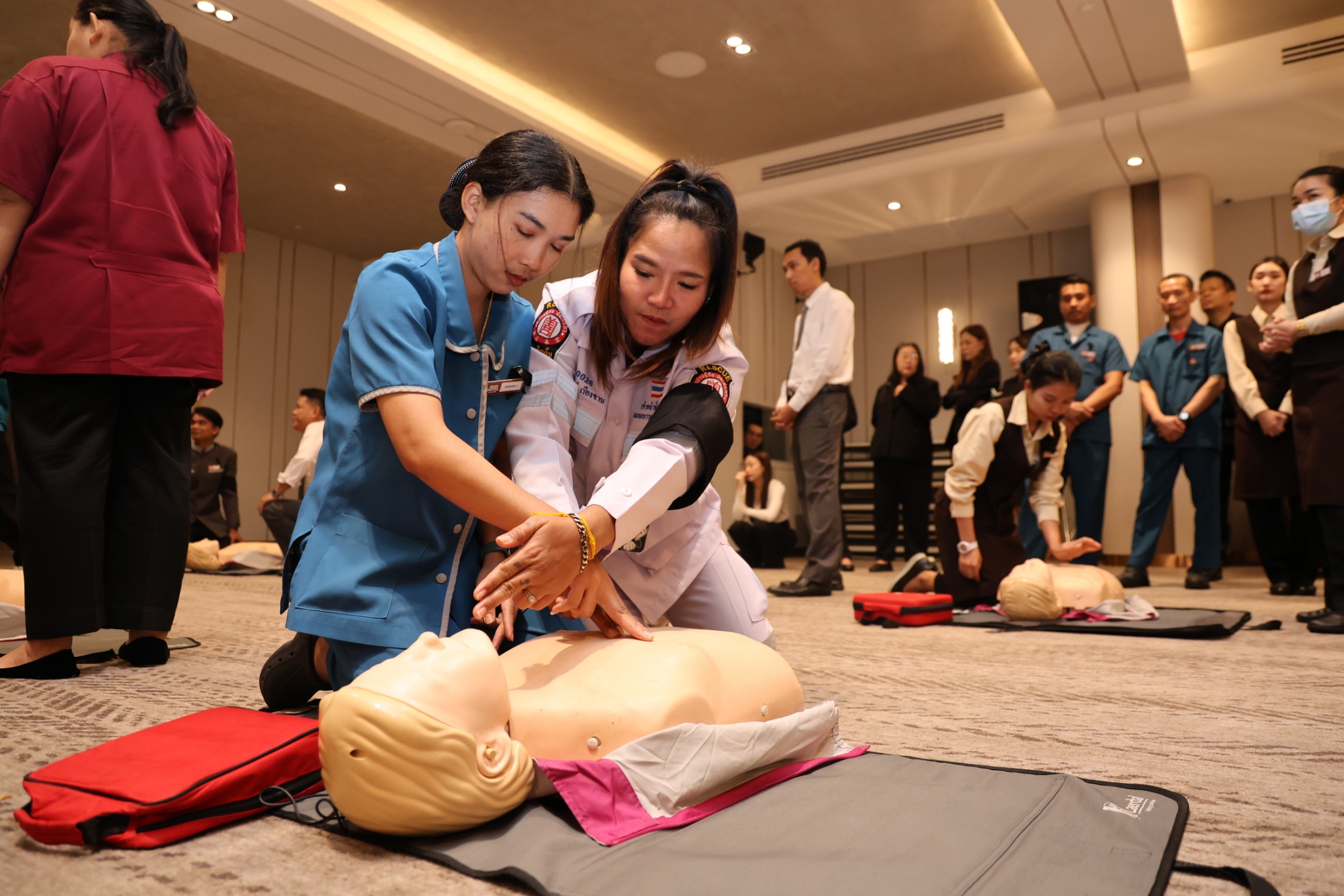 จัดอบรมการปฐมพยาบาลเบื้องต้นและการระงับอัคคีภัยให้แก่พนักงานโรงแรมเอเชีย กรุงเทพฯ