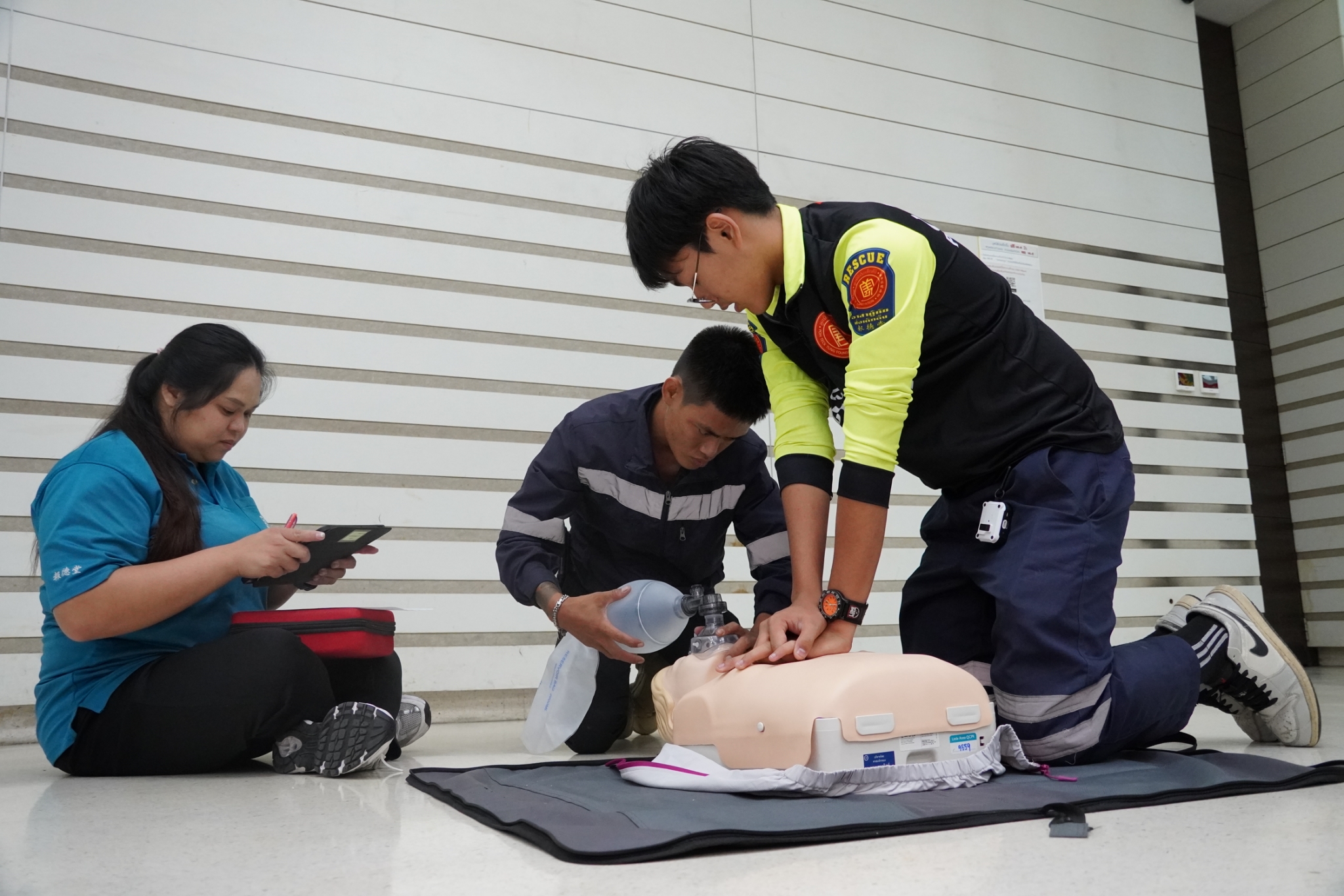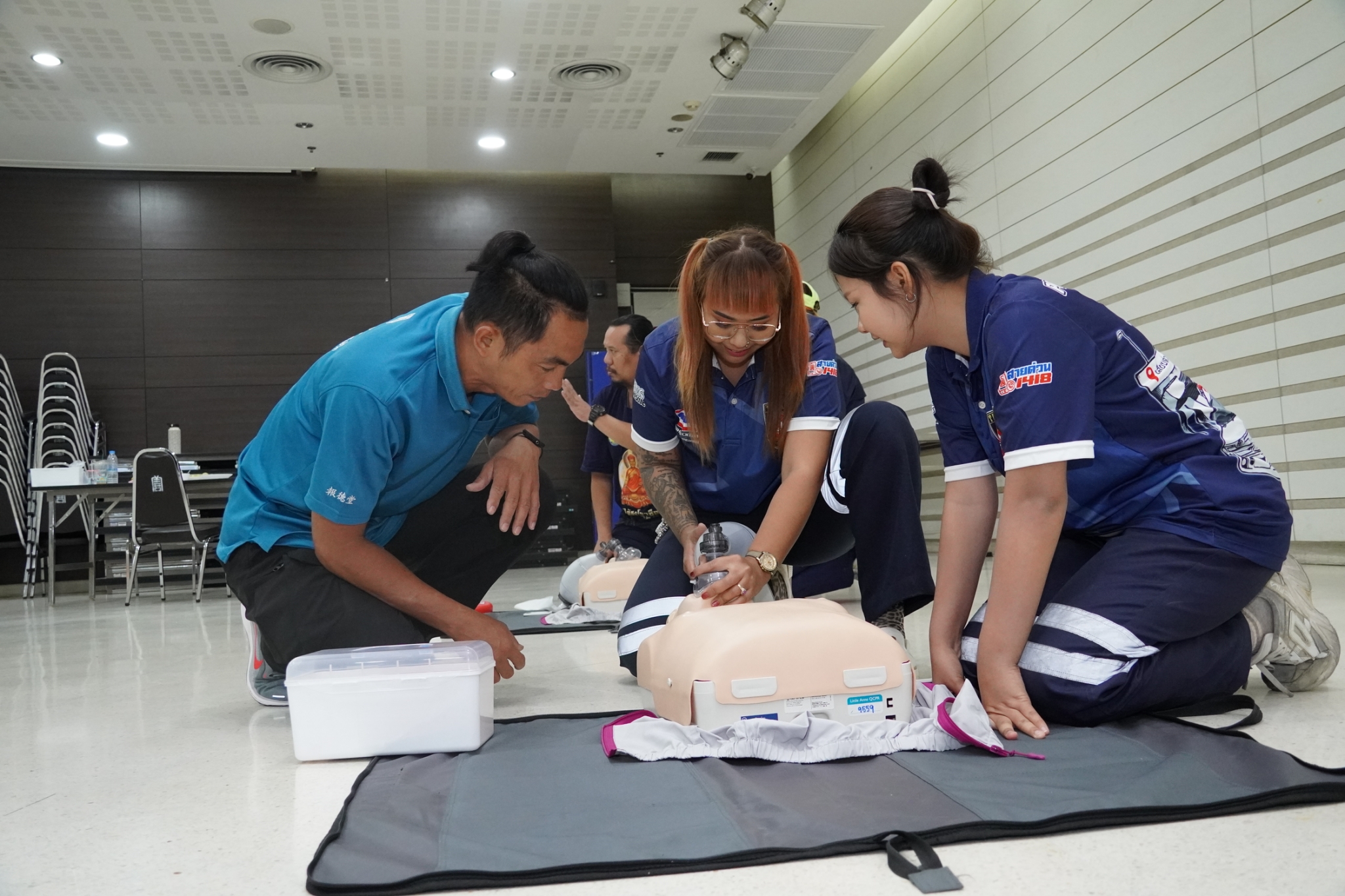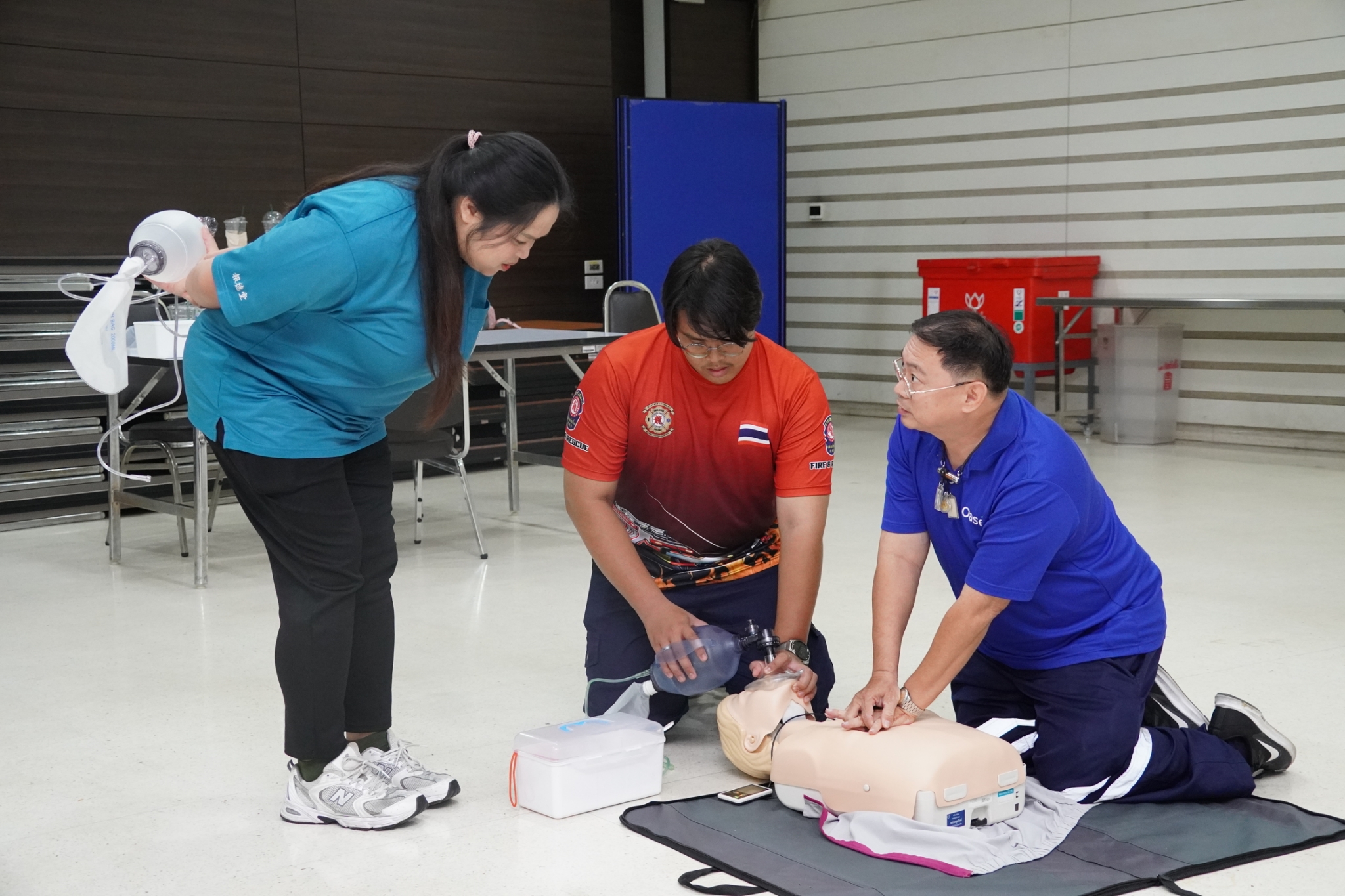 ในการนี้ได้รับเกียรติจาก คุณจิรัฐติกาล บรรจงกิจ รักษาการผู้ช่วยหัวหน้าแผนกอาสาสมัคร พร้อมด้วยเจ้าหน้าที่แผนกฝึกอบรม และเจ้าหน้าที่กู้ชีพ แผนกบรรเทาสาธารณภัย ร่วมเป็นวิทยากรในการฝึกอบรม ณ ห้องประชุมชั้น 2 อาคาร 2 มูลนิธิป่อเต็กตึ๊ง พลับพลาไชย กรุงเทพฯ