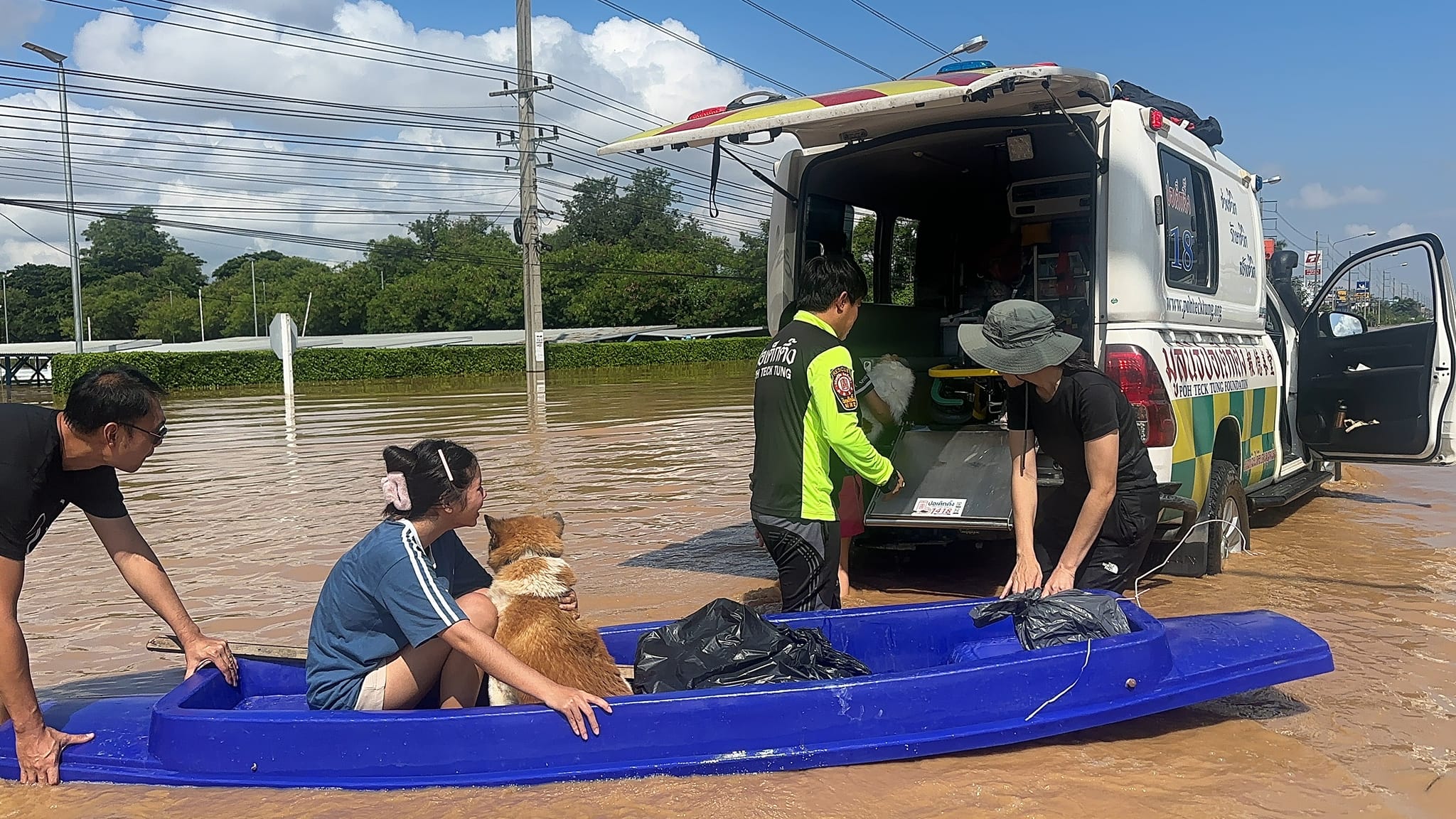 เช้าวันนี้ (6 ตุลาคม พ.ศ. 2567) คุณแทค ภรัณยู โรจนวุฒิธรรม อาสาสมัครศิลปิน มูลนิธิป่อเต็กตึ๊ง (ศิลปิน 210) ร่วมกับ ทีมเจ้าหน้าที่กู้ชีพกู้ภัย แผนกบรรเทาสาธารณภัย มูลนิธิป่อเต็กตึ๊ง และทีมกู้ภัยฉะเชิงเทรา ช่วยเหลืออพยพผู้ประสบภัยออกจากบ้านพักข้าราชการภายในตำบลวัดเกต และนำผู้สูงอายุที่เพิ่งได้รับการผ่าตัด พร้อมครอบครัว และสัตว์เลี้ยงในพื้นที่ตำบลท่าศาลา อำเภอเมืองเชียงใหม่ ไปยังพื้นที่ปลอดภัย
