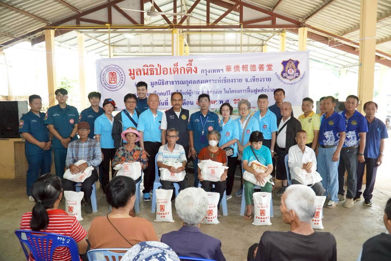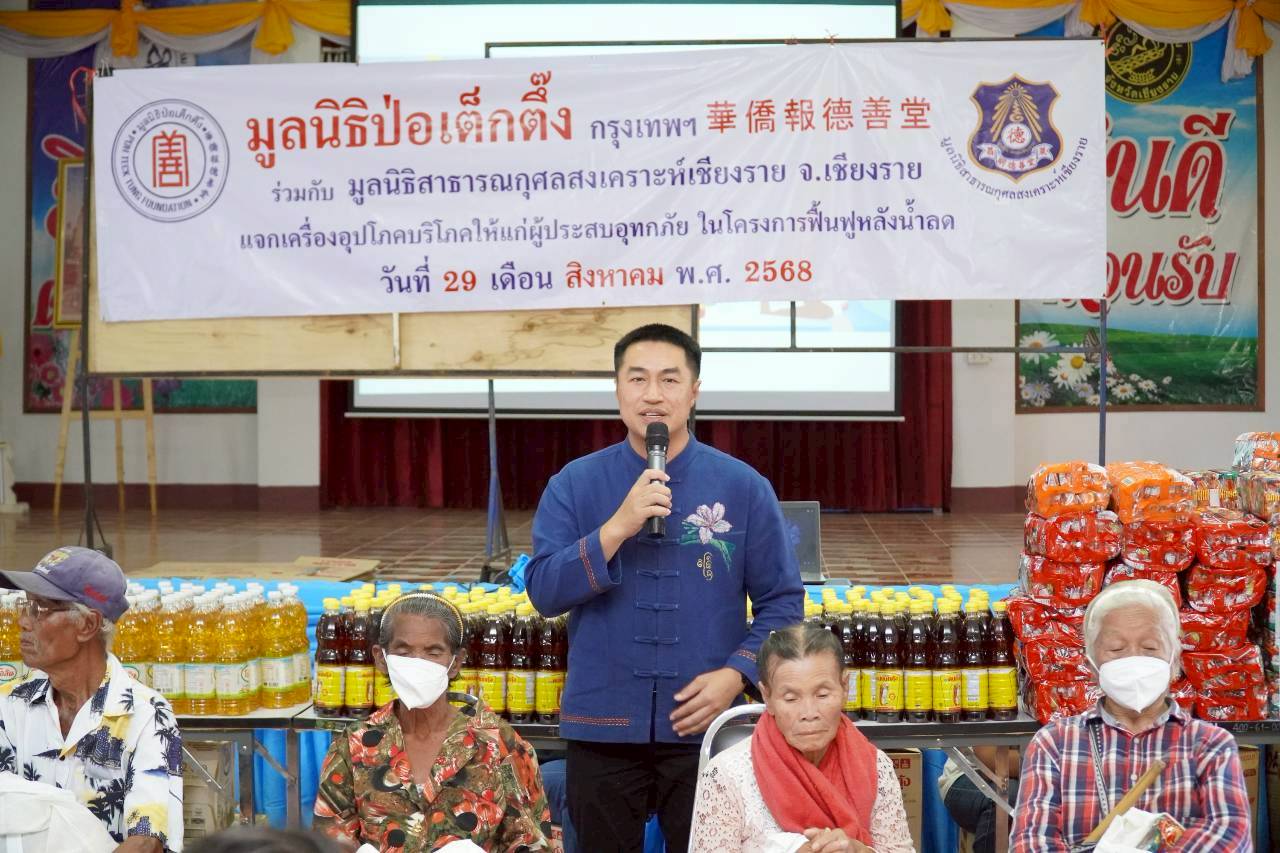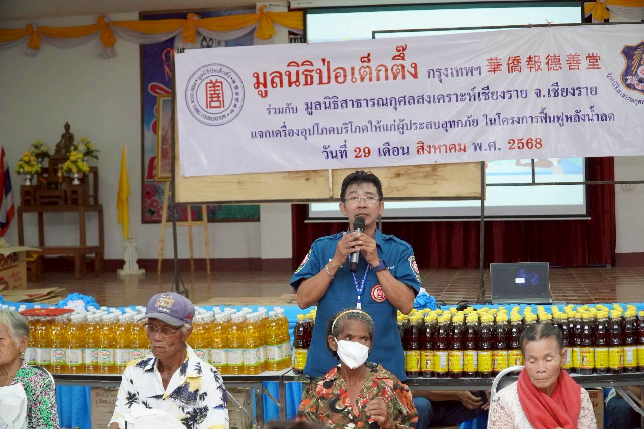 วันนี้ (29 สิงหาคม พ.ศ. 2568) มูลนิธิป่อเต็กตึ๊ง ฝ่ายสังคมสงเคราะห์ นำโดย คุณชุมพล บุญภักดี ผู้ช่วยหัวหน้าแผนกสาธารณภัย นำทีมเจ้าหน้าที่ฝ่ายสังคมสงเคราะห์ ลงพื้นที่จังหวัดเชียงราย ร่วมกับ มูลนิธิสาธารณกุศลสงเคราะห์เชียงราย จังหวัดเชียงราย นำโดย คุณประชา มงคลโรจน์สกุล ประธานมูลนิธิฯ พร้อมคณะฯ แจกจ่ายเครื่องอุปโภคบริโภค (ประกอบด้วย ข้าวสาร บะหมี่กึ่งสำเร็จรูป ปลากระป๋อง น้ำมันพืช น้ำปลา) ให้แก่ผู้ประสบอุทกภัยในพื้นที่อำเภอพญาเม็งราย และอำเภอเทิง รวม 4 แห่ง ดังนี้