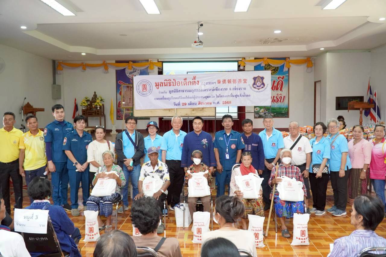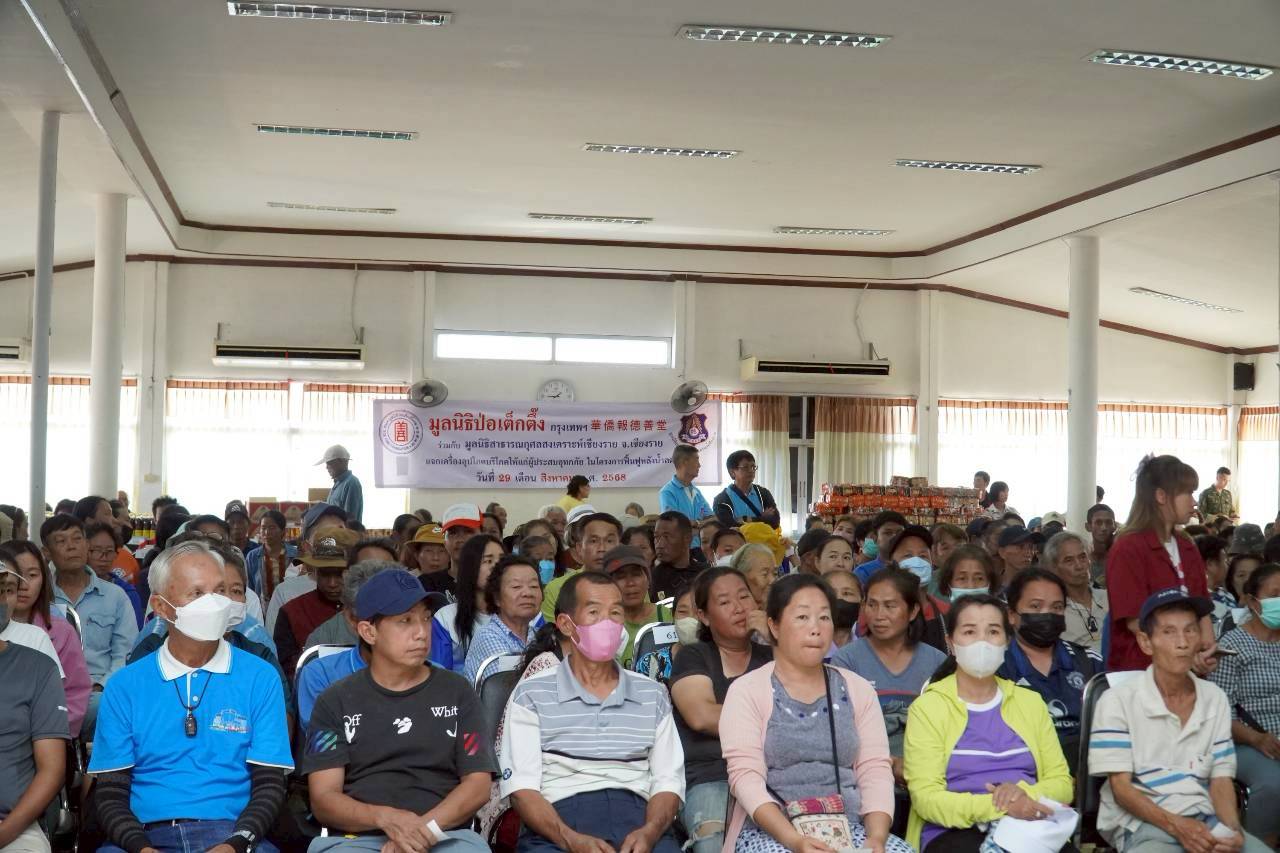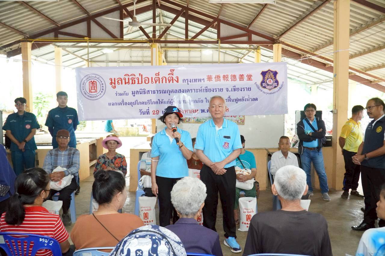 วันนี้ (29 สิงหาคม พ.ศ. 2568) มูลนิธิป่อเต็กตึ๊ง ฝ่ายสังคมสงเคราะห์ นำโดย คุณชุมพล บุญภักดี ผู้ช่วยหัวหน้าแผนกสาธารณภัย นำทีมเจ้าหน้าที่ฝ่ายสังคมสงเคราะห์ ลงพื้นที่จังหวัดเชียงราย ร่วมกับ มูลนิธิสาธารณกุศลสงเคราะห์เชียงราย จังหวัดเชียงราย นำโดย คุณประชา มงคลโรจน์สกุล ประธานมูลนิธิฯ พร้อมคณะฯ แจกจ่ายเครื่องอุปโภคบริโภค (ประกอบด้วย ข้าวสาร บะหมี่กึ่งสำเร็จรูป ปลากระป๋อง น้ำมันพืช น้ำปลา) ให้แก่ผู้ประสบอุทกภัยในพื้นที่อำเภอพญาเม็งราย และอำเภอเทิง รวม 4 แห่ง ดังนี้