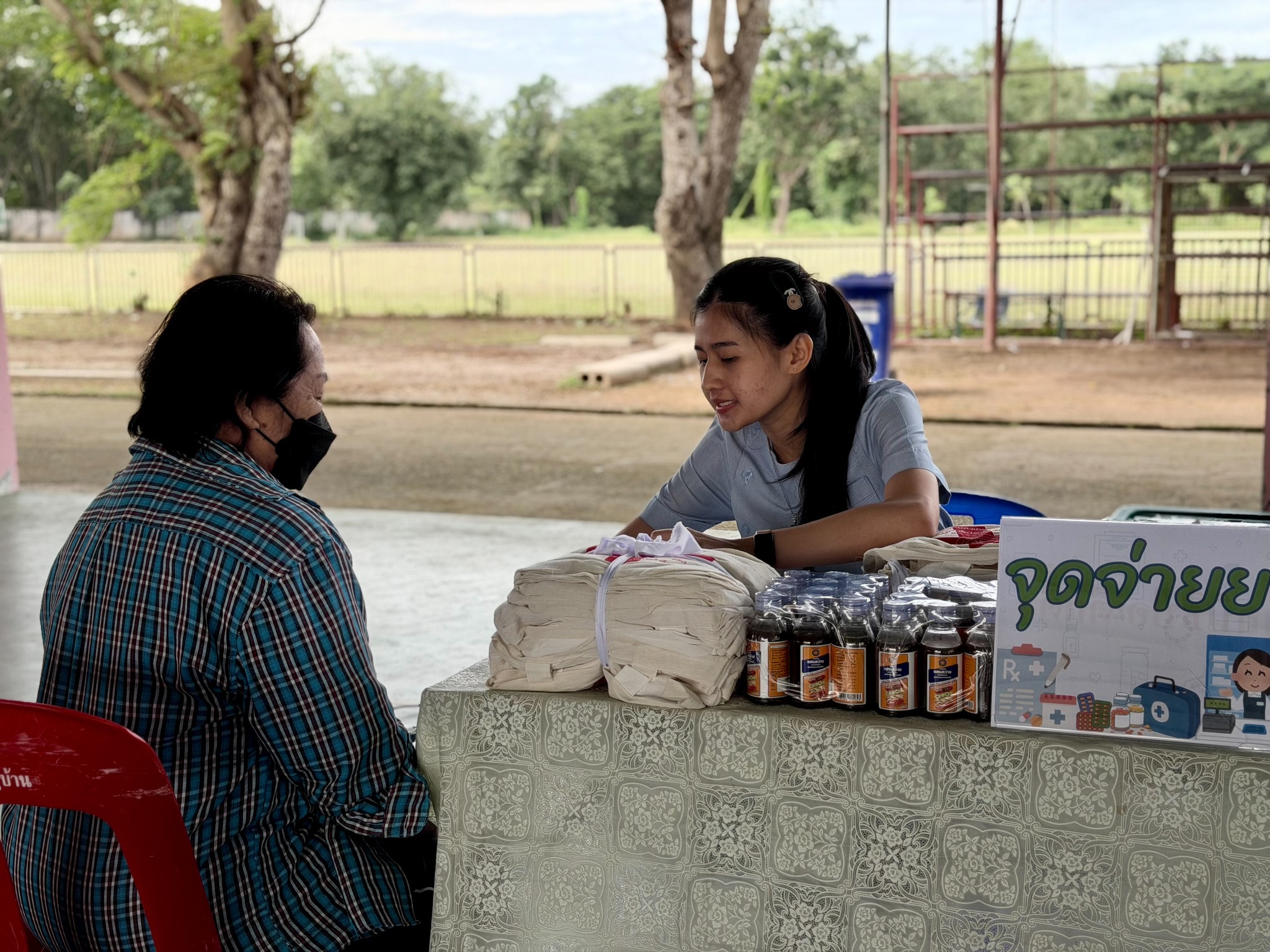 โดยมี ผู้เข้ารับบริการทั้งสิ้น 518 ราย ได้แก่ ตรวจรักษาโรคทั่วไป 134 ราย ตรวจคัดกรองเบาหวานเบื้องต้น 4 ราย บริการตัดผม 40 ราย แจกแว่นสายตาสั้น-สายตายาว 310 ราย ตรวจทันตกรรม 16 ราย ประกอบด้วย แนะนำสุขภาพช่องปาก 1 ราย เคลือบฟลูออไรด์เด็ก 10 ราย ถอนฟัน 5 ราย รวมถึงจัดกิจกรรมนันทนาการสำหรับเด็ก 10 ราย และแจกไม้เท้าแก่ผู้สูงอายุ 4 ราย