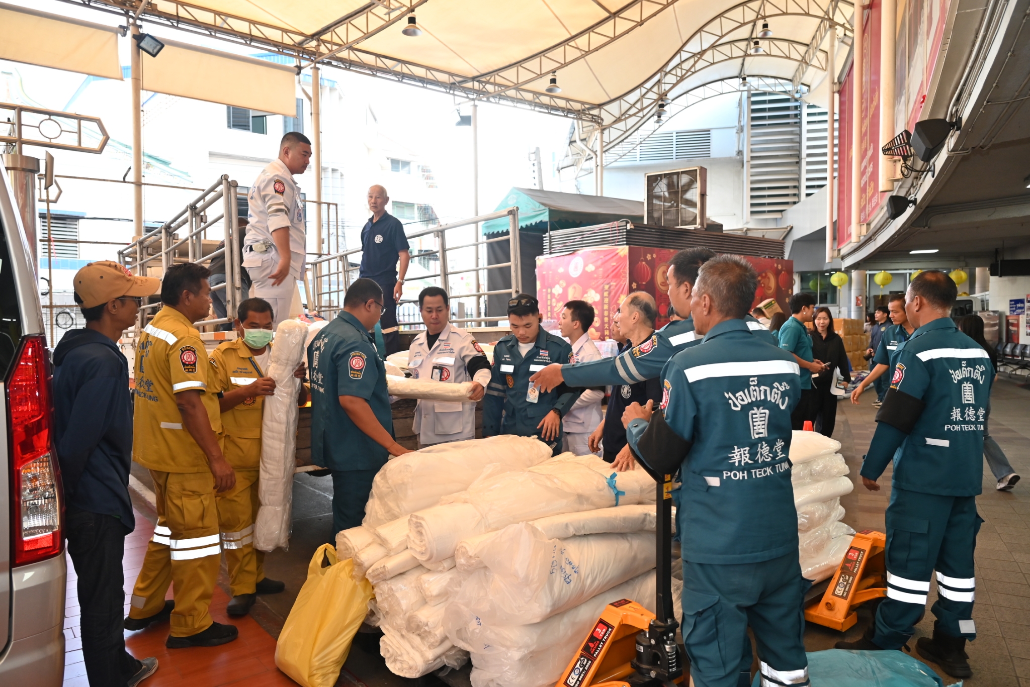 วันนี้ (4 ธันวาคม พ.ศ. 2568) มูลนิธิป่อเต็กตึ๊ง นำโดย คุณวิชิต ชินวงศ์วรกุล รองประธานกรรมการ พร้อมด้วย คุณศิริกุล โอภาสวงศ์ กรรมการและเลขาธิการ คุณอรัณย์ โตทวด ผู้จัดการใหญ่มูลนิธิฯ และคณะเจ้าหน้าที่ระดับบริหาร ร่วมในพิธีรับมอบบริจาคผ้าดิบสำหรับห่อศพ จำนวน 4,473 หลา และถุงห่อศพ น้ำหนักรวม 600 กิโลกรัม จาก คุณอภิกขณา เขื่อนแก้ว ผู้สื่อข่าวอาวุโส รายการสถานีประชาชน ไทยพีบีเอส เพื่อร่วมสนับสนุนการปฏิบัติภารกิจการช่วยเหลือผู้ประสบอุทกภัยในพื้นที่ภาคใต้