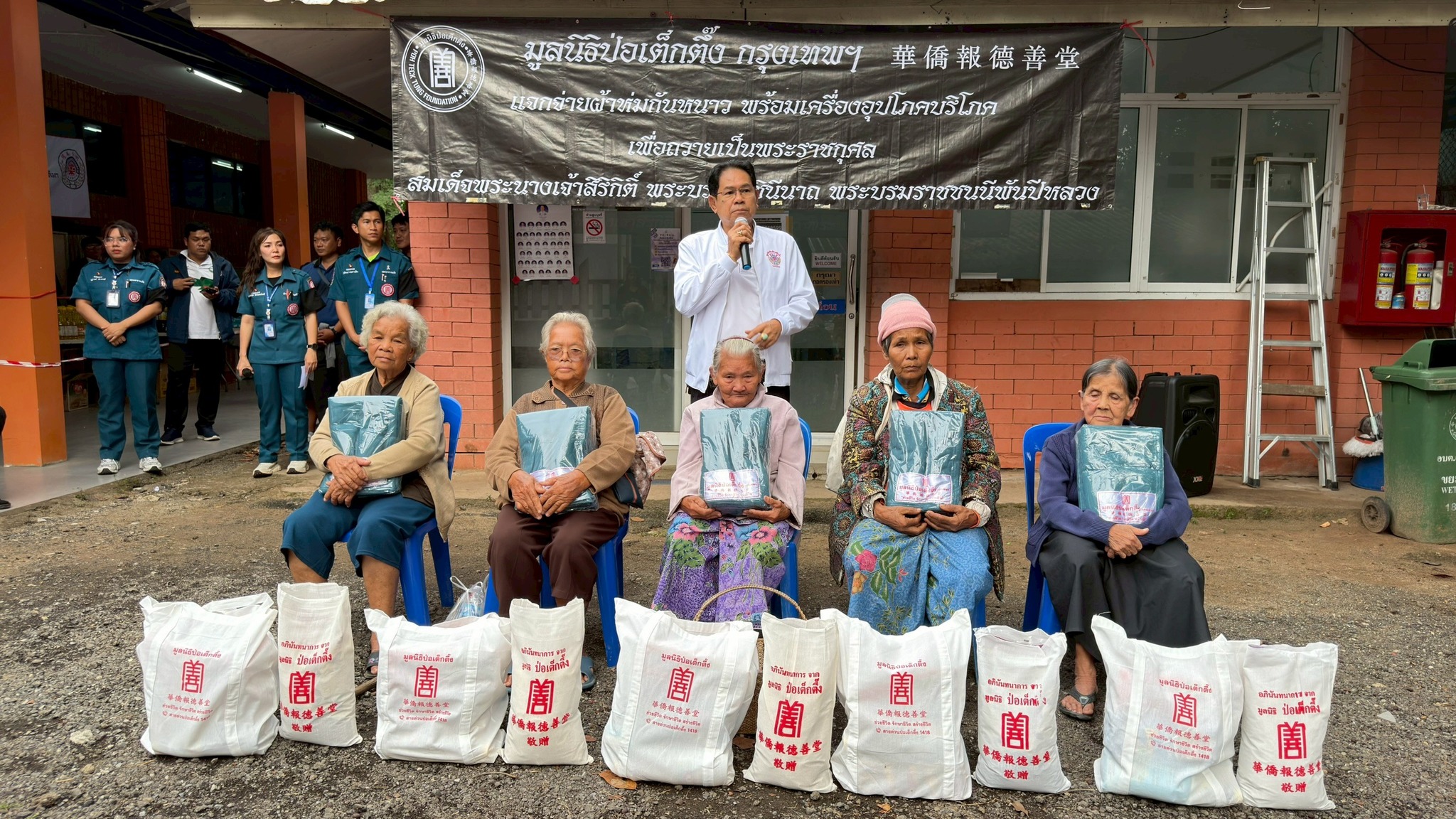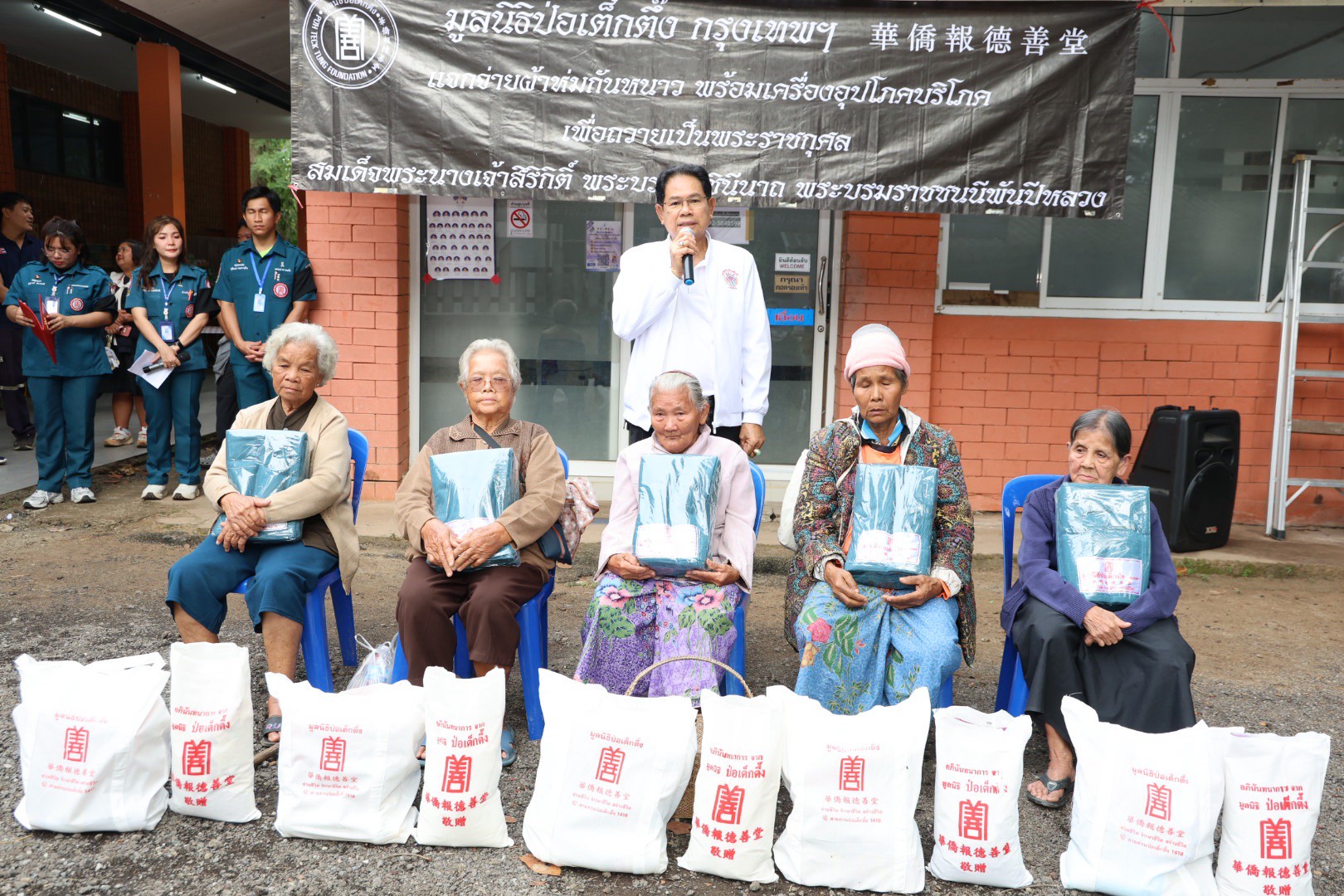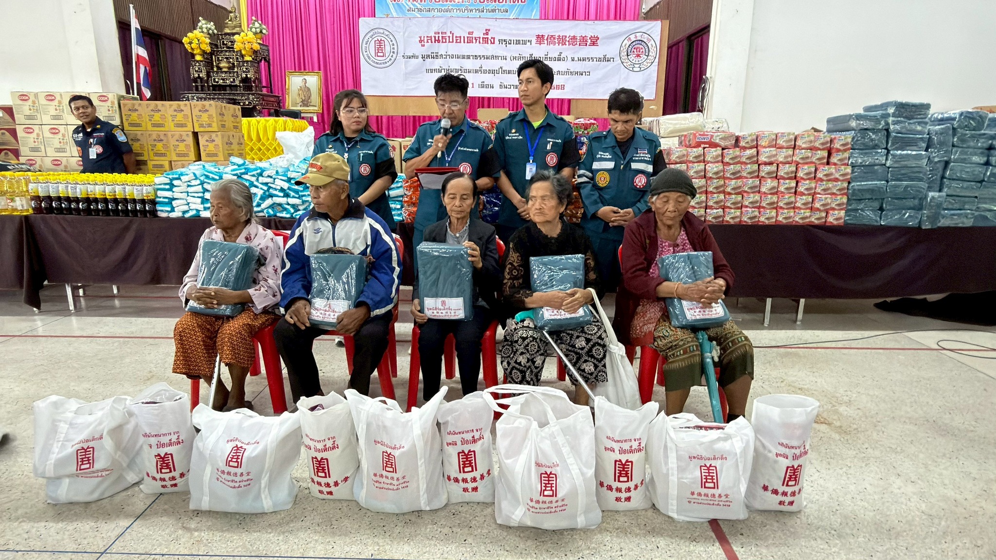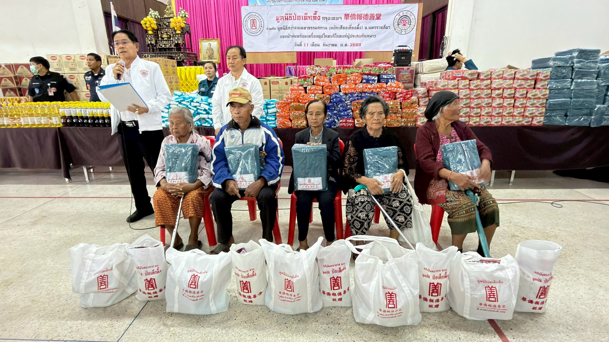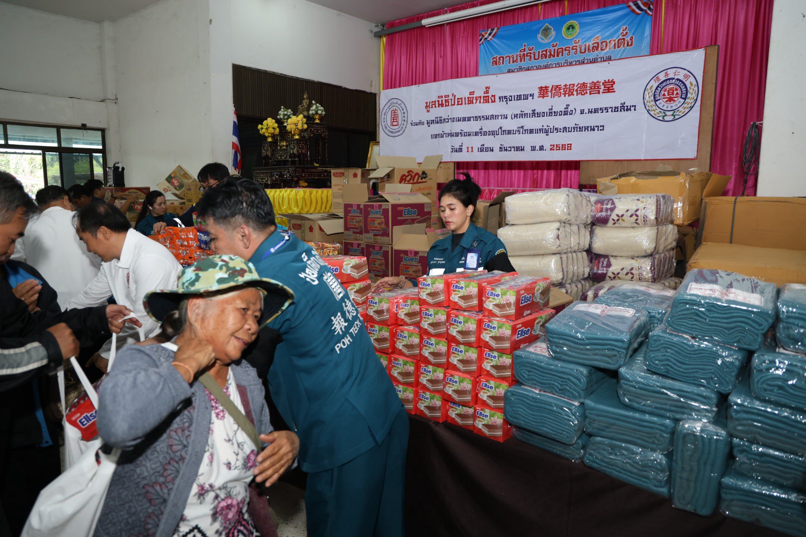 ช่วงบ่ายวานนี้ (วันที่ 11 ธันวาคม พ.ศ. 2568) มูลนิธิป่อเต็กตึ๊ง ฝ่ายสังคมสงเคราะห์ นำโดย คุณชุมพล บุญภักดี ผู้ช่วยหัวหน้าแผนกสาธารณภัย พร้อมด้วยเจ้าหน้าที่แผนกสาธารณภัย และ เจ้าหน้าที่แผนกบรรเทาสาธารณภัย ร่วมกับ มูลนิธิสว่างเมตตาธรรมสถาน จังหวัดนครราชสีมา นำโดย คุณศิวัช เตียเจริญวรรธน์ รองประธานมูลนิธิฯ พร้อมคณะกรรมการฯ มอบผ้าห่มกันหนาวพร้อมเครื่องอุปโภคบริโภค จำนวน 700 ชุด ใน 1 ชุด ประกอบไปด้วย ผ้าห่ม ข้าวสาร น้ำมัน น้ำปลา น้ำตาล ปลาประป๋อง บะหมี่กึ่งสำเร็จรูป ขนม และเสื้อผ้าให้แก่ผู้ประสบภัยหนาวในพื้นที่อำเภอปักธงชัย รวม 2 แห่ง ดังนี้