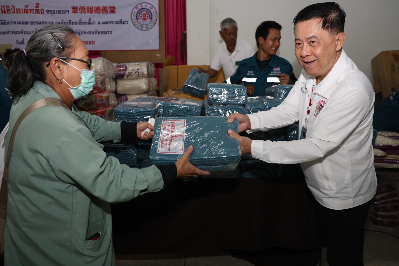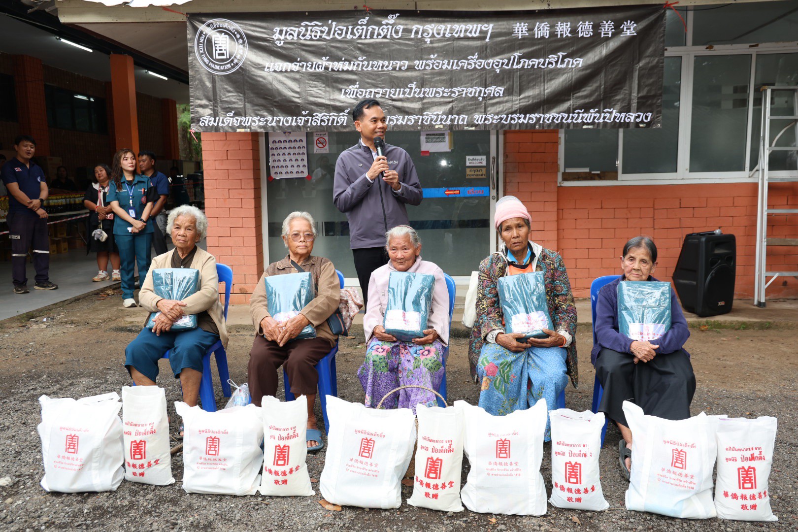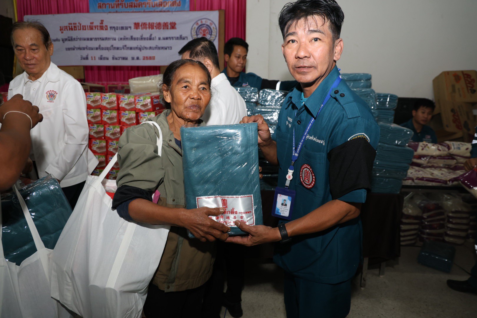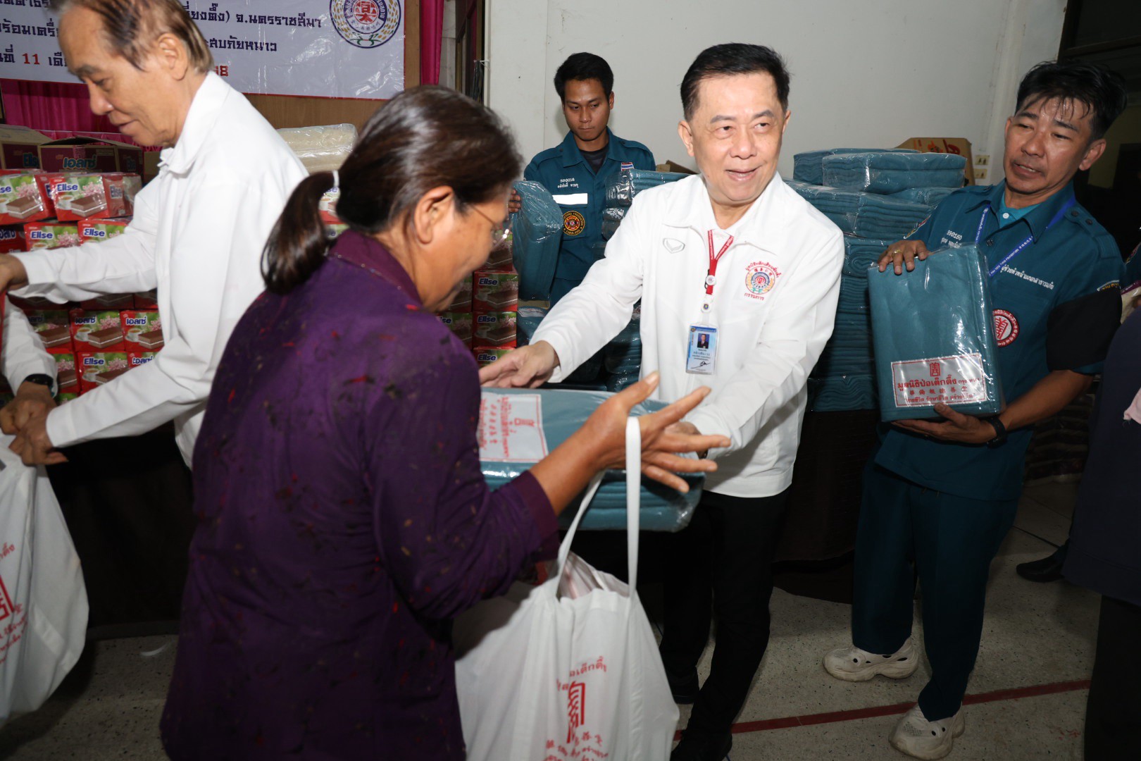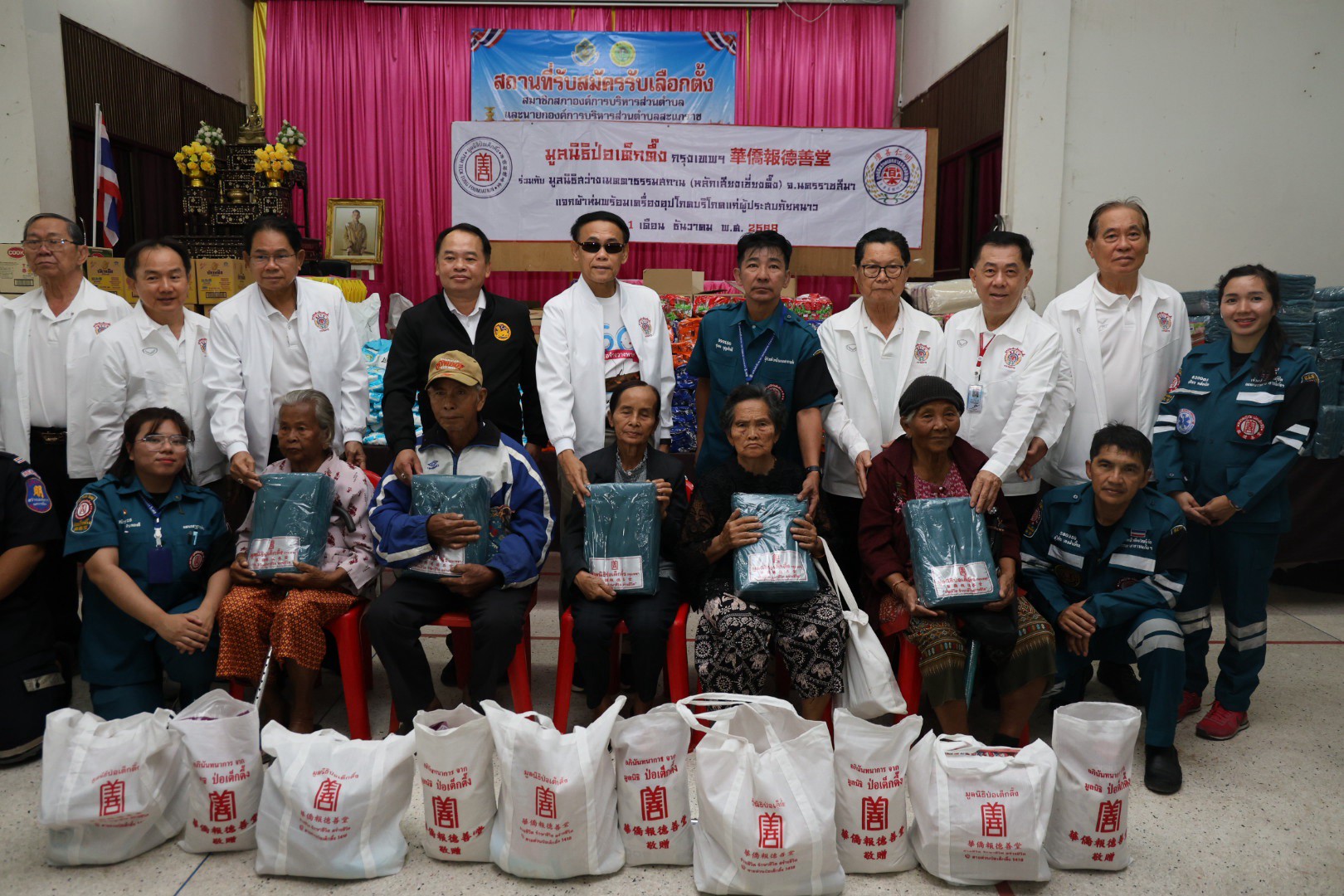 ช่วงบ่ายวานนี้ (วันที่ 11 ธันวาคม พ.ศ. 2568) มูลนิธิป่อเต็กตึ๊ง ฝ่ายสังคมสงเคราะห์ นำโดย คุณชุมพล บุญภักดี ผู้ช่วยหัวหน้าแผนกสาธารณภัย พร้อมด้วยเจ้าหน้าที่แผนกสาธารณภัย และ เจ้าหน้าที่แผนกบรรเทาสาธารณภัย ร่วมกับ มูลนิธิสว่างเมตตาธรรมสถาน จังหวัดนครราชสีมา นำโดย คุณศิวัช เตียเจริญวรรธน์ รองประธานมูลนิธิฯ พร้อมคณะกรรมการฯ มอบผ้าห่มกันหนาวพร้อมเครื่องอุปโภคบริโภค จำนวน 700 ชุด ใน 1 ชุด ประกอบไปด้วย ผ้าห่ม ข้าวสาร น้ำมัน น้ำปลา น้ำตาล ปลาประป๋อง บะหมี่กึ่งสำเร็จรูป ขนม และเสื้อผ้าให้แก่ผู้ประสบภัยหนาวในพื้นที่อำเภอปักธงชัย รวม 2 แห่ง ดังนี้