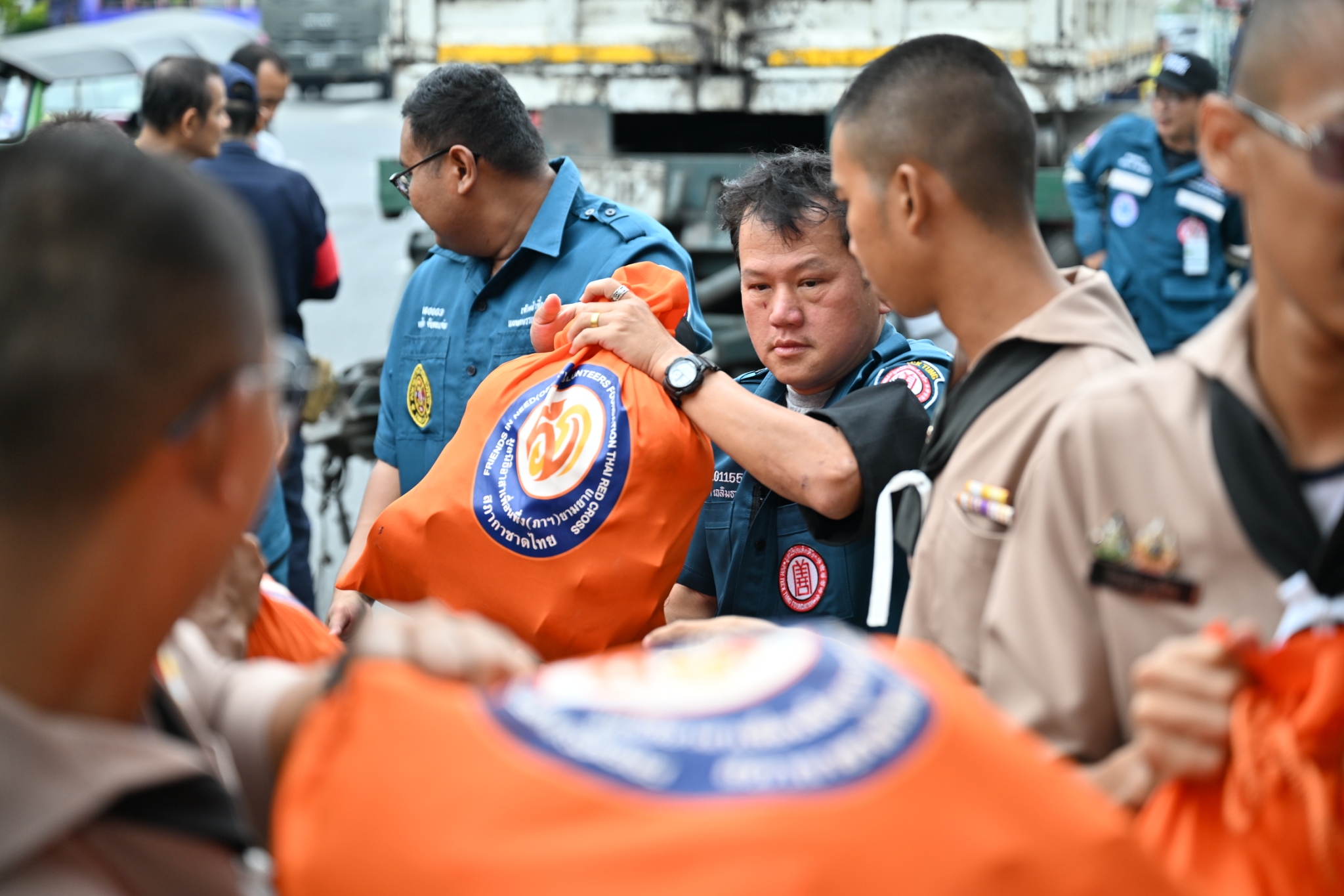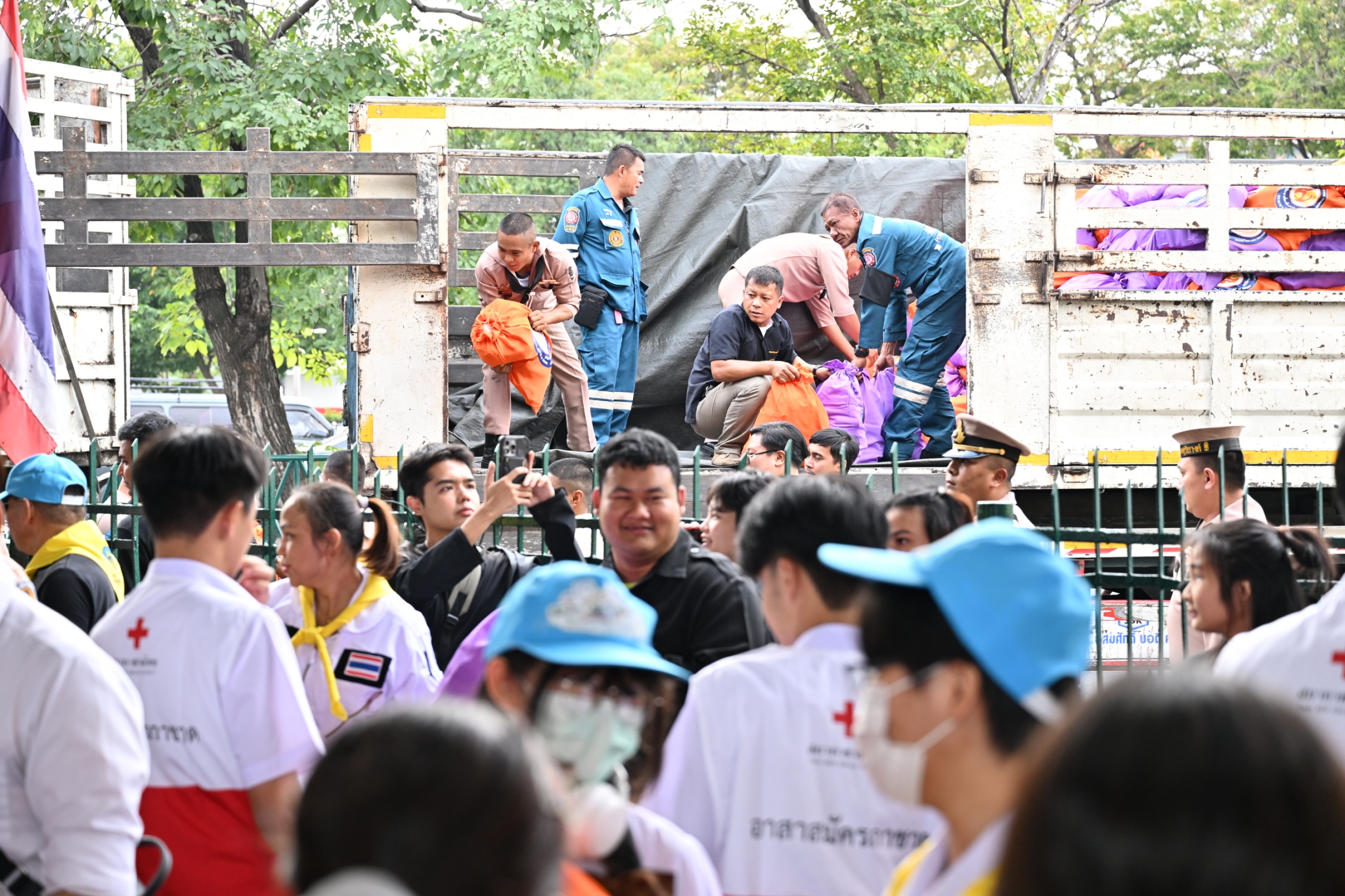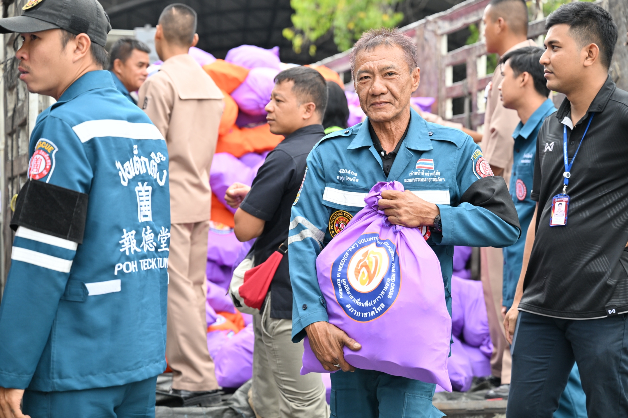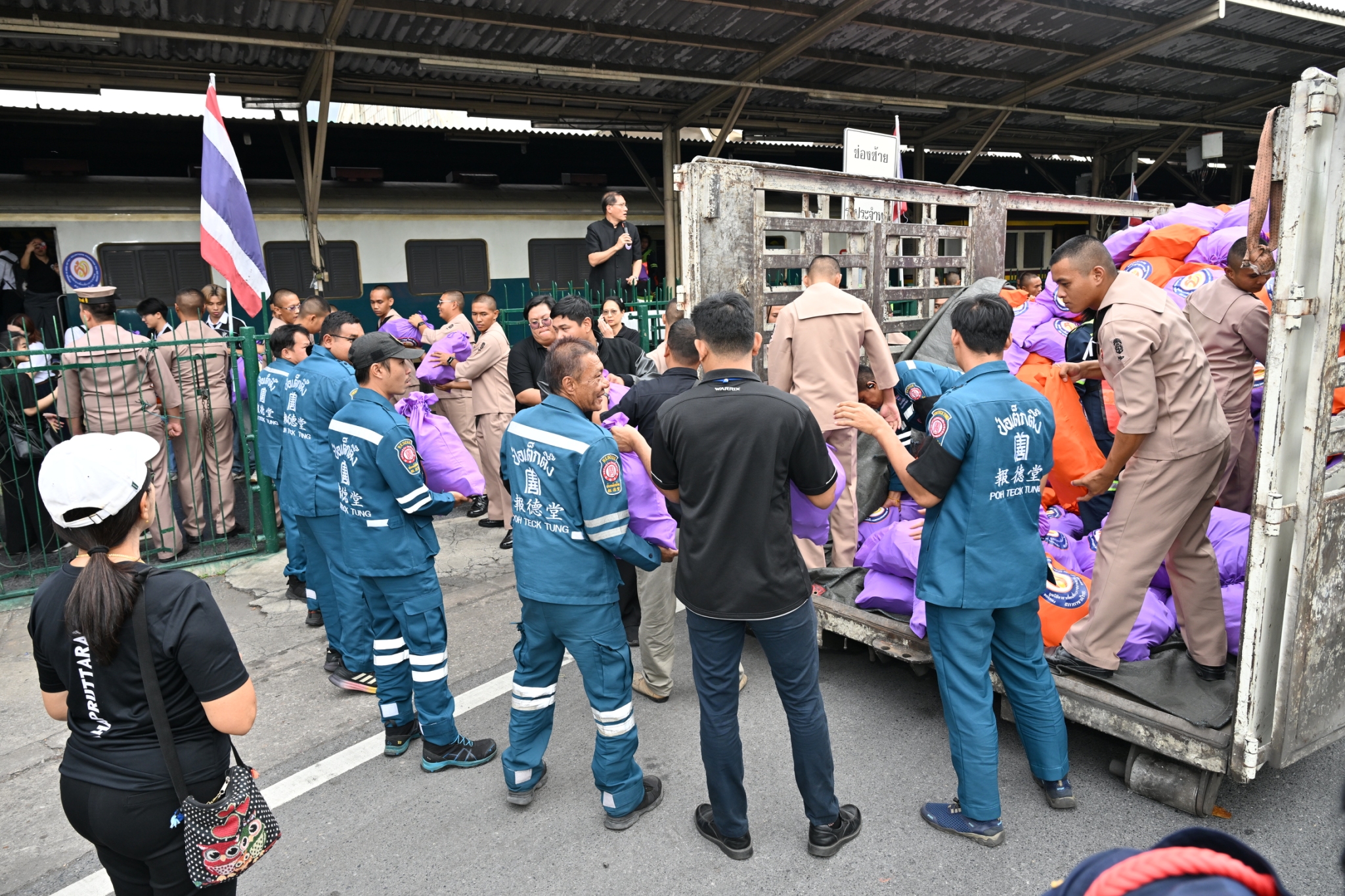 วันพฤหัสบดีที่ 11 ธันวาคม พ.ศ. 2568 เวลาประมาณ 14.00 น. มูลนิธิป่อเต็กตึ๊ง ฝ่ายปฏิบัติการ นำโดย คุณยุทธนา ทาโคตร์ ผู้ช่วยหัวหน้าแผนกบรรเทาสาธารณภัยฯ ทำทีมเจ้าหน้าที่กู้ชีพกู้ภัย แผนกบรรเทาสาธารณภัย ให้การสนับสนุนลำเลียงถุงยังชีพพระราชทาน 12,600 ถุง ของมูลนิธิอาสาเพื่อนพึ่ง (ภาฯ) ยามยาก สภากาชาดไทย ขึ้นรถไฟที่สถานีรถไฟหัวลำโพง เพื่อช่วยเหลือผู้ประสบอุทกภัยในพื้นที่ภาคใต้ จังหวัดสงขลา สตูล ยะลา นราธิวาส และปัตตานี โดยมี หน่วยงานภาครัฐ เอกชน และจิตอาสา ร่วมลำเลียง ณ บริเวณสถานีรถไฟหัวลำโพง กรุงเทพฯ