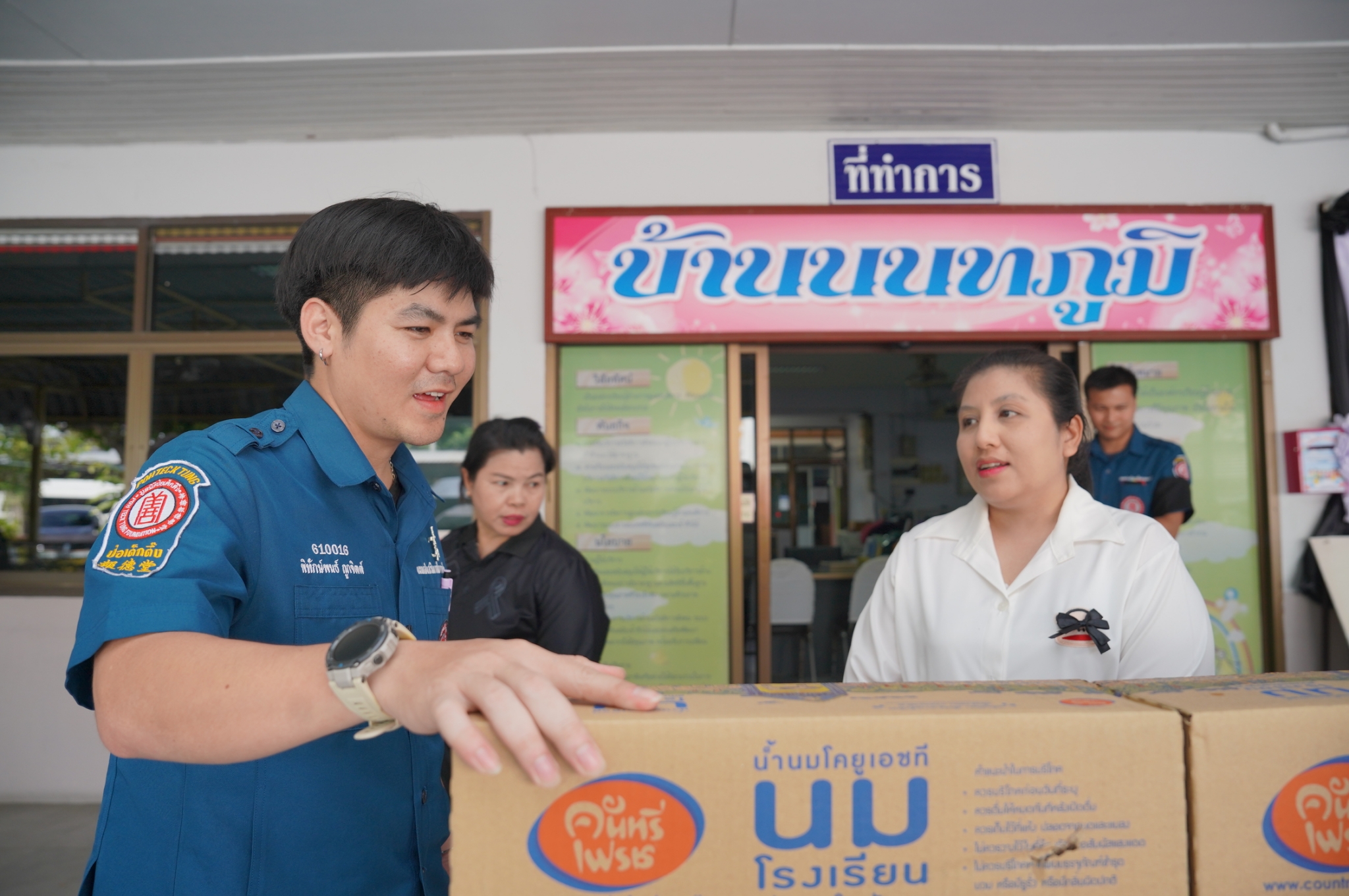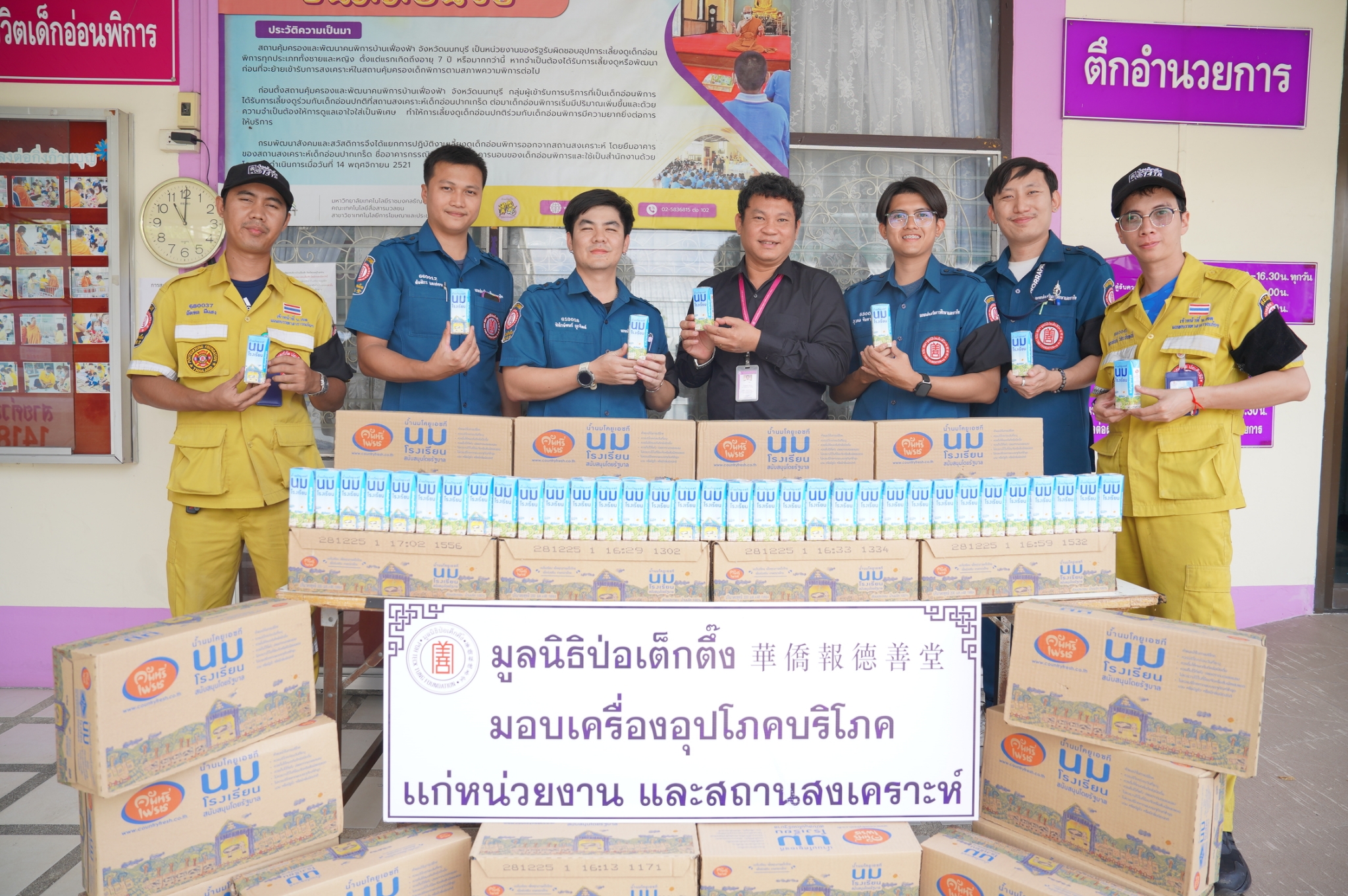 มอบนมรสจืดที่รับบริจาคจาก บริษัท คันทรี่เฟรชแดรี่ จำกัด ให้แก่หน่วยงานและสถานสงเคราะห์ต่างๆ ในจังหวัดสมุทรปราการ และจังหวัดนครปฐม