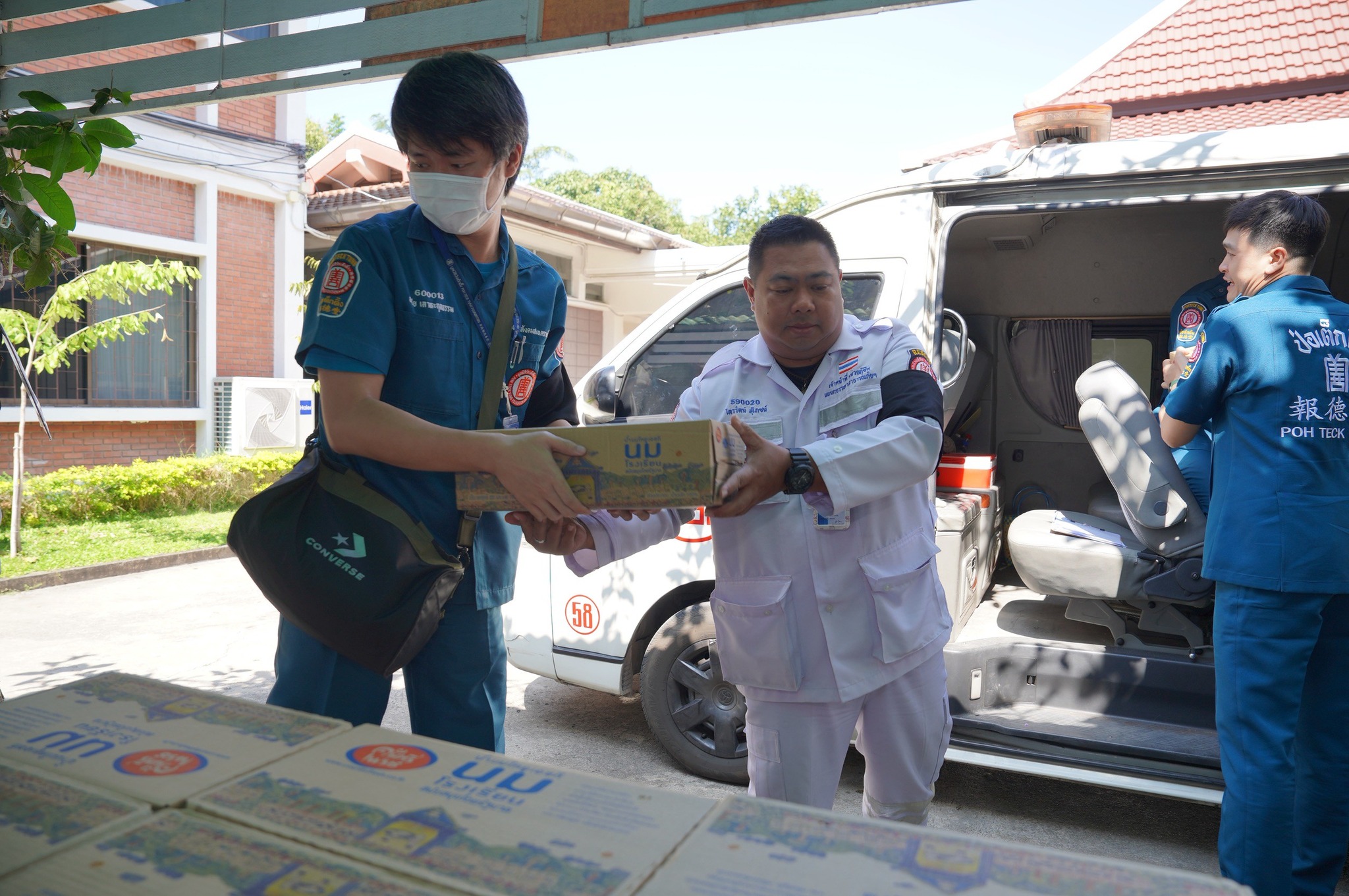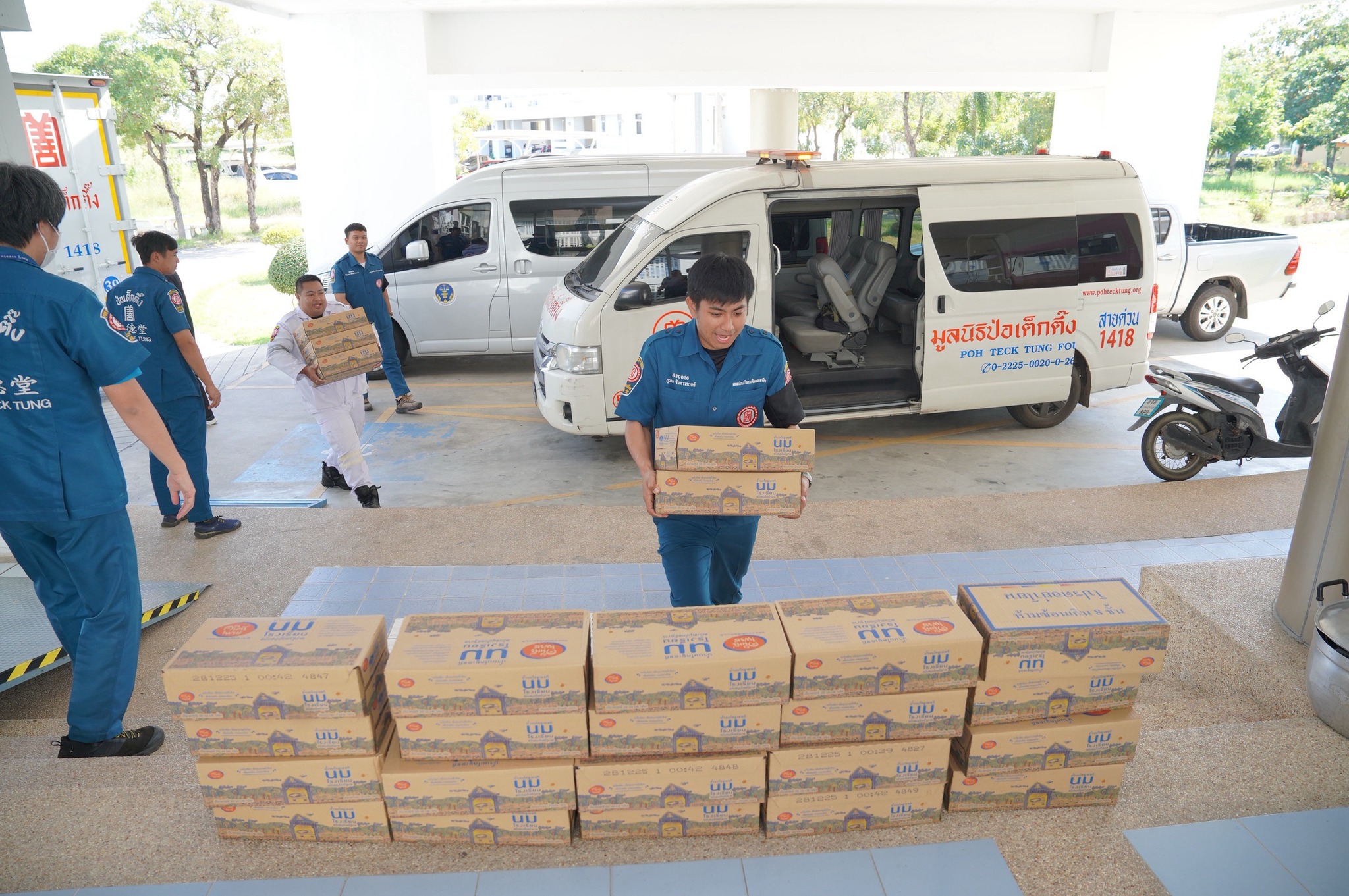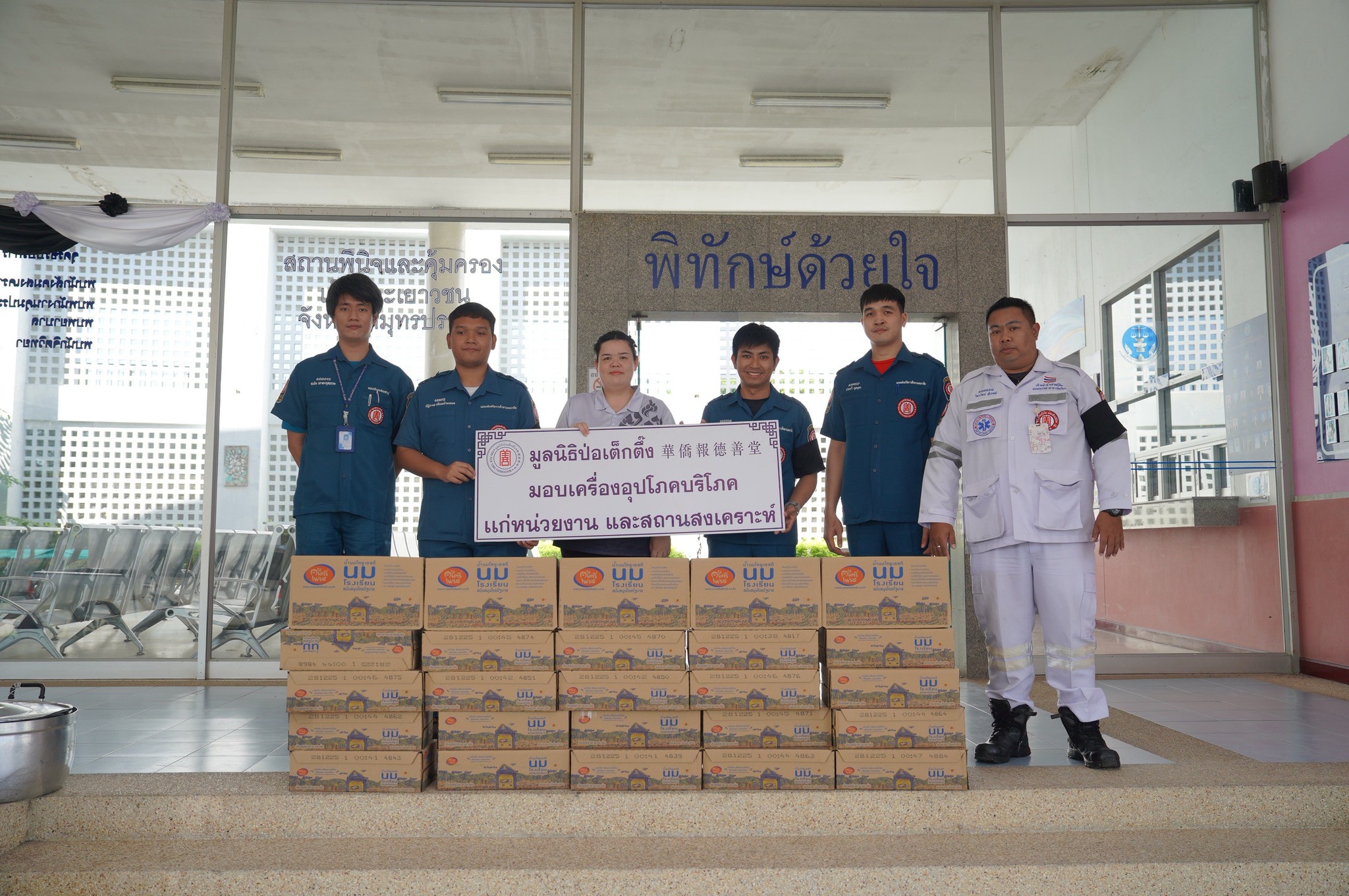 วันนี้ (9 ธันวาคม พ.ศ. 2568) เวลา 09.00 น. คุณจันทิมา รอดเพชรไพร ผู้ช่วยผู้จัดการฝ่ายบัญชีและการเงิน พร้อมด้วย คุณอโรชา อรรถปวัตน์ หัวหน้าแผนกผู้บริจาคสัมพันธ์ ร่วมรับมอบบริจาคน้ำดื่ม จำนวน 500 แพ็ค จากบริษัท เอ็นที ไอซ์โปร จำกัด เพื่อสนับสนุนการช่วยเหลือผู้ประสบอุทกภัยในพื้นที่ภาคใต้ของมูลนิธิป่อเต็กตึ๊ง ณ บริเวณหน้าอาคาร 1 มูลนิธิป่อเต็กตึ๊ง พลับพลาไชย กรุงเทพฯ