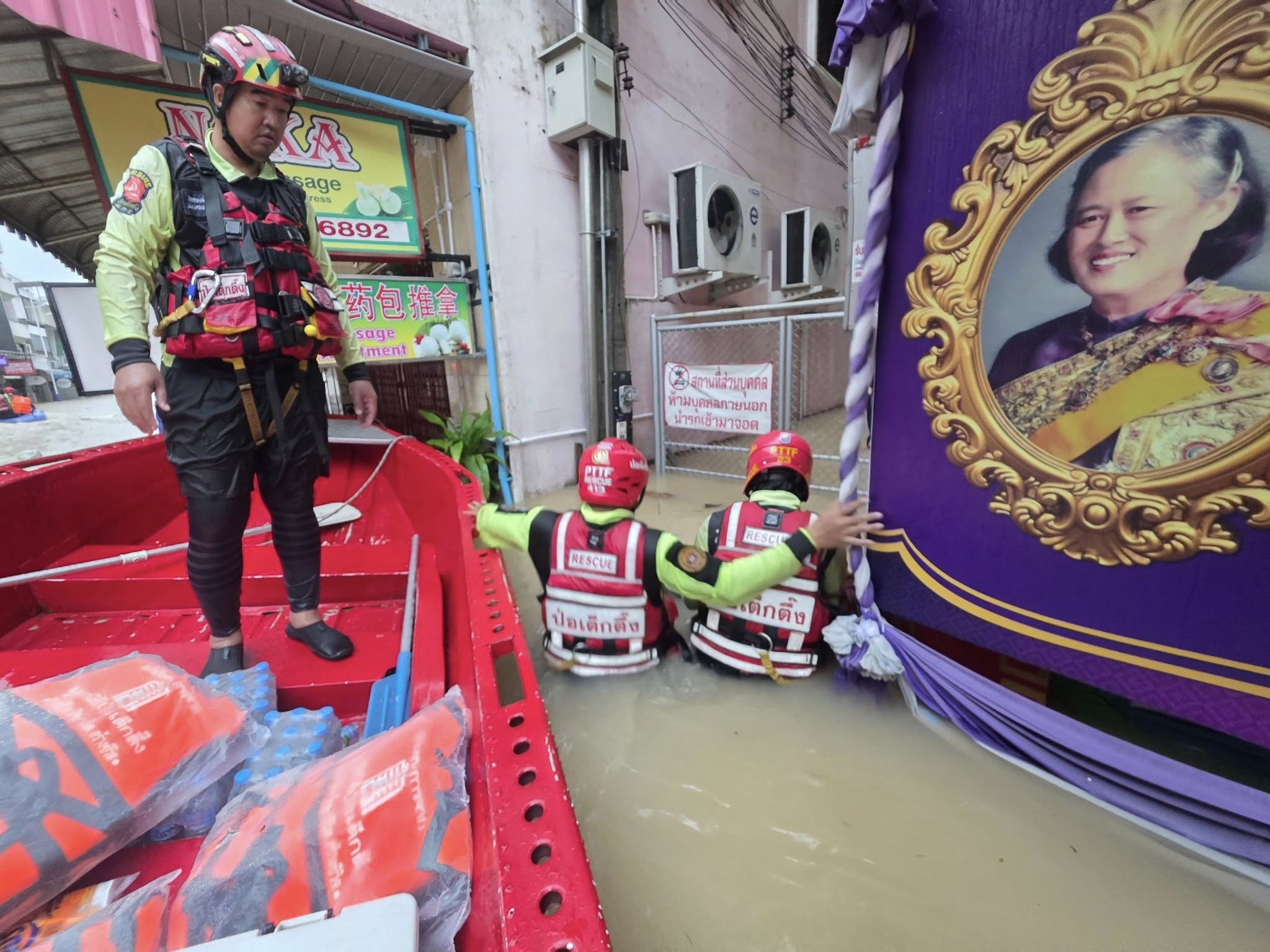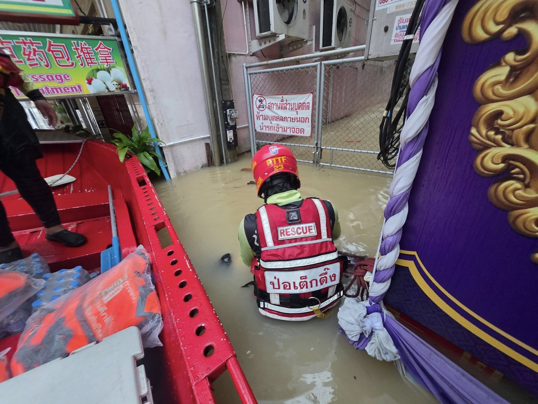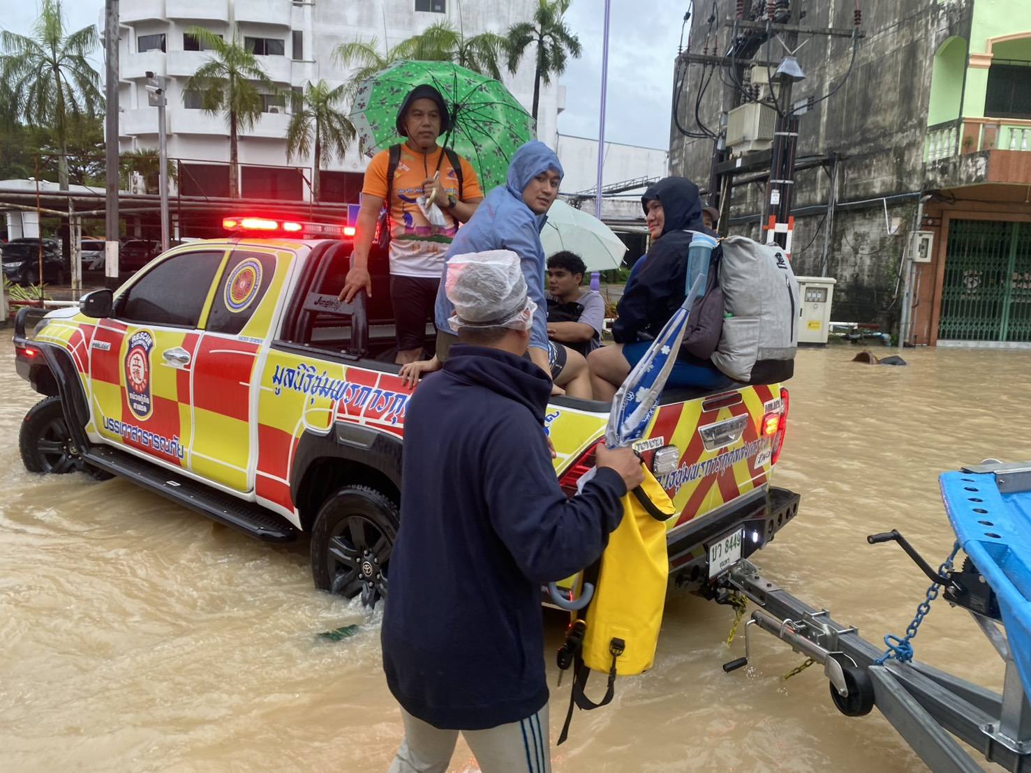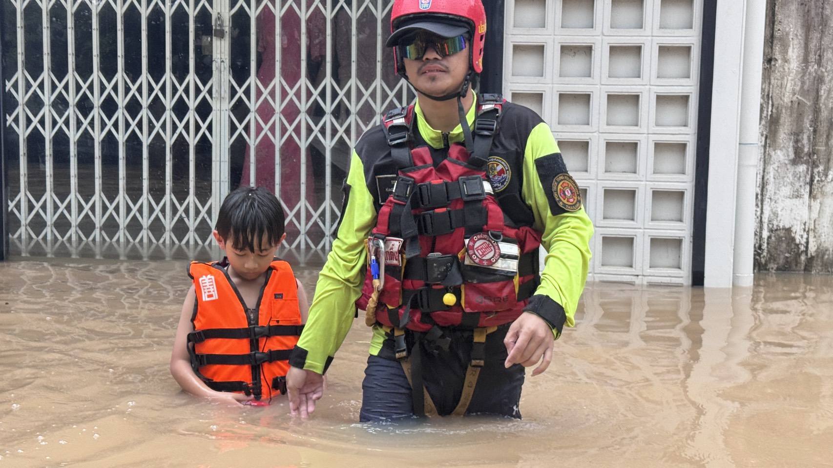 เช้าวันนี้ อาสาสมัครกู้ภัย และ อาสาสมัครศิลปิน คุณแทค-ภรัณยู, คุณแนท-เกศริน ร่วมลงพื้นที่ช่วยเหลืออพยพ แจกจ่ายอาหาร น้ำดื่มแก่ผู้ประสบภัยในพื้นที่หมู่บ้านนครินธานี ตำบลควนลัง และบริเวณใกล้เคียงสนามบินหาดใหญ่ อำเภอหาดใหญ่ จังหวัดสงขลา