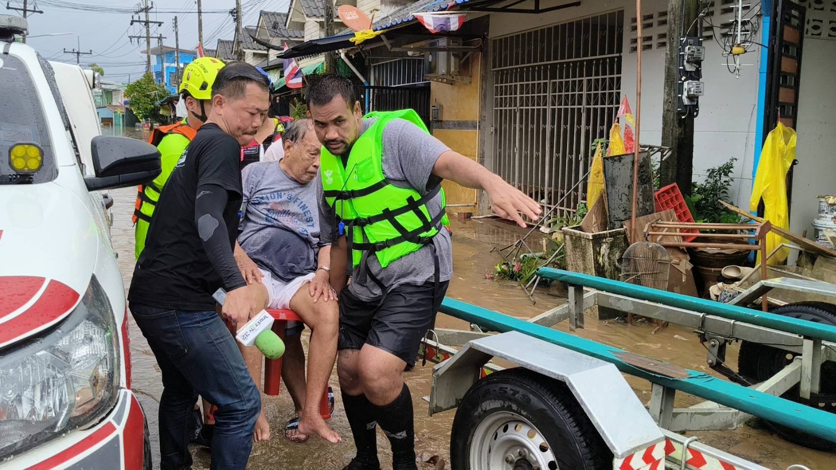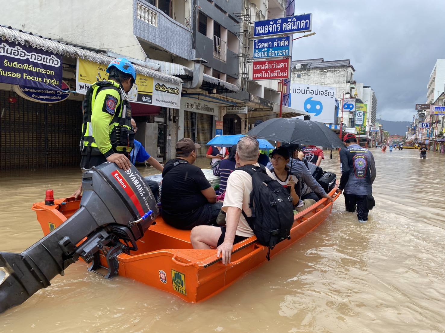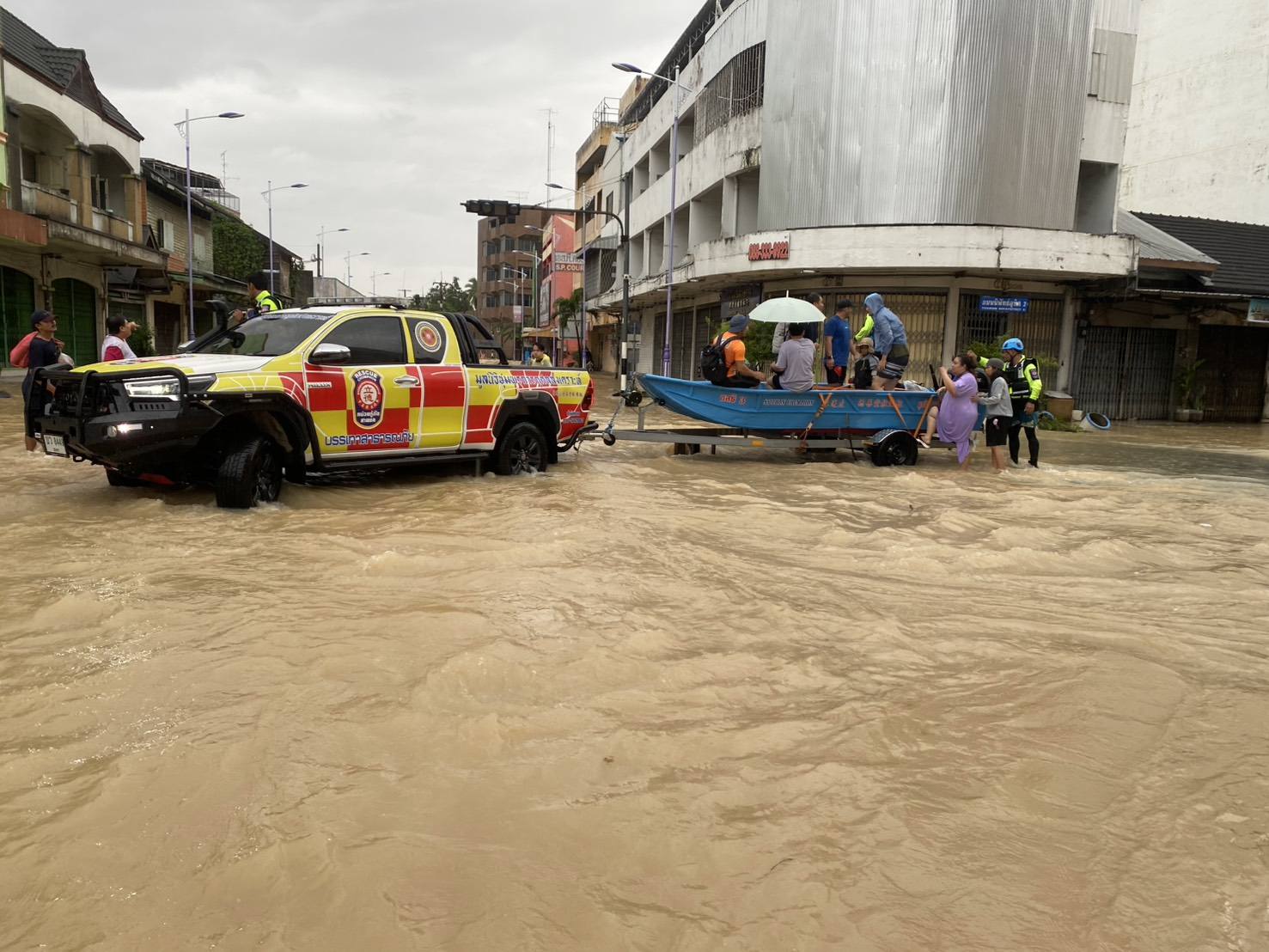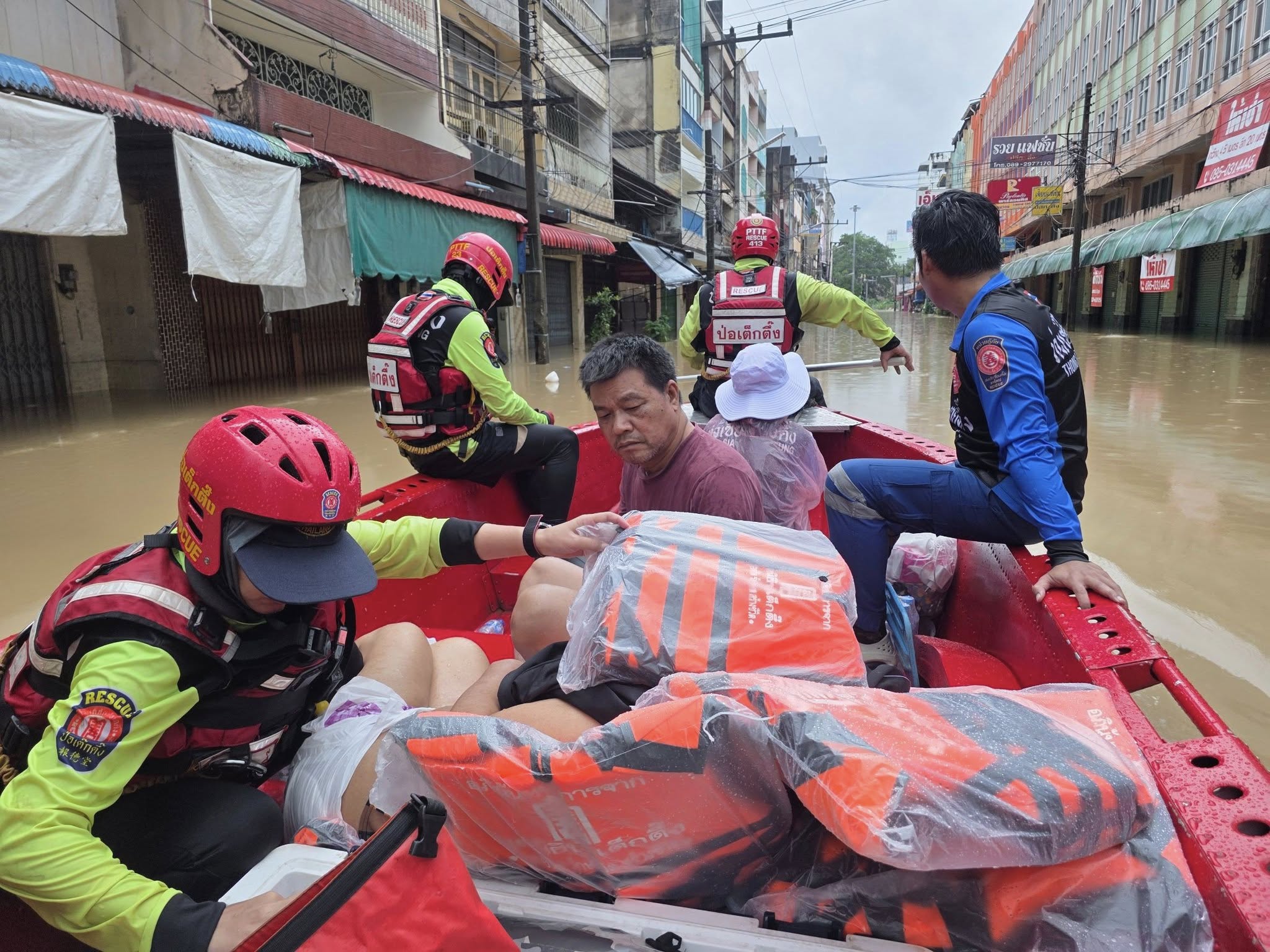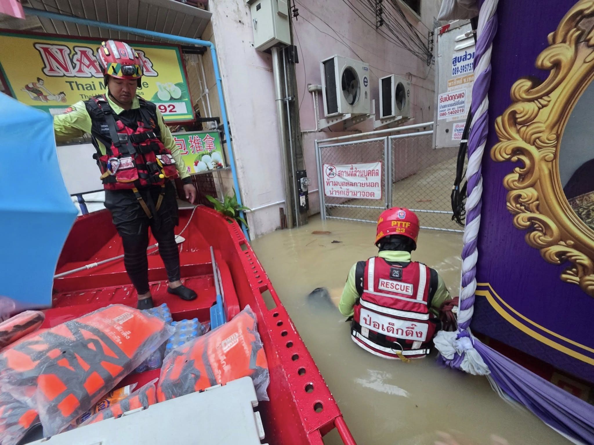 เช้าวันนี้ อาสาสมัครกู้ภัย และ อาสาสมัครศิลปิน คุณแทค-ภรัณยู, คุณแนท-เกศริน ร่วมลงพื้นที่ช่วยเหลืออพยพ แจกจ่ายอาหาร น้ำดื่มแก่ผู้ประสบภัยในพื้นที่หมู่บ้านนครินธานี ตำบลควนลัง และบริเวณใกล้เคียงสนามบินหาดใหญ่ อำเภอหาดใหญ่ จังหวัดสงขลา
