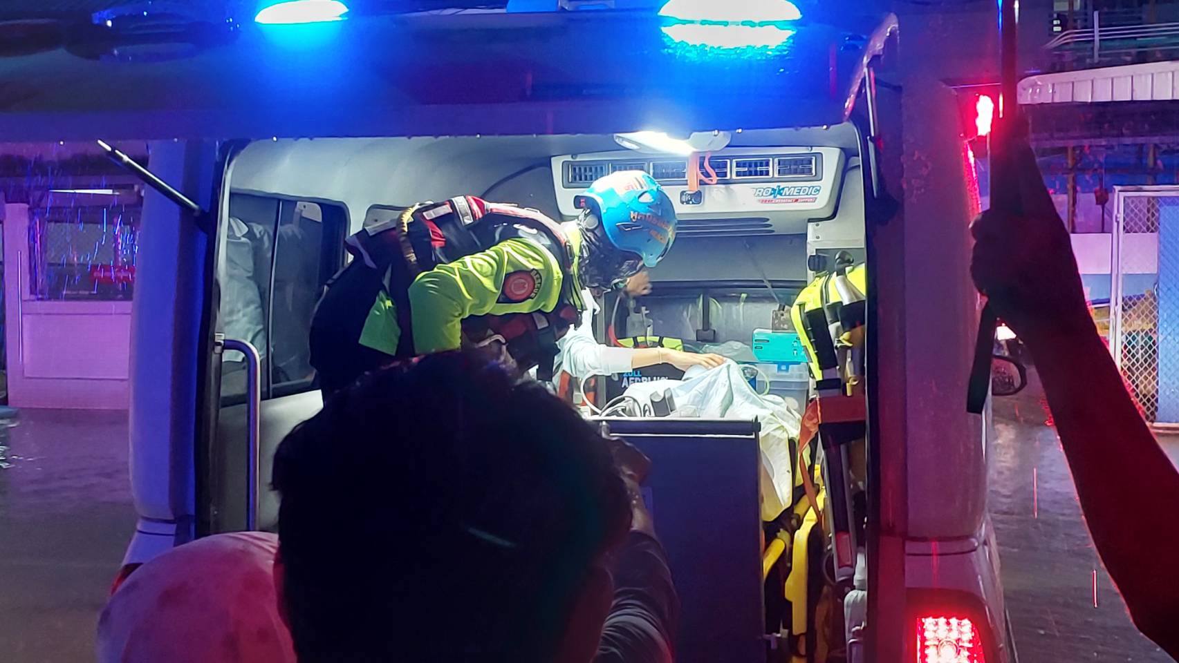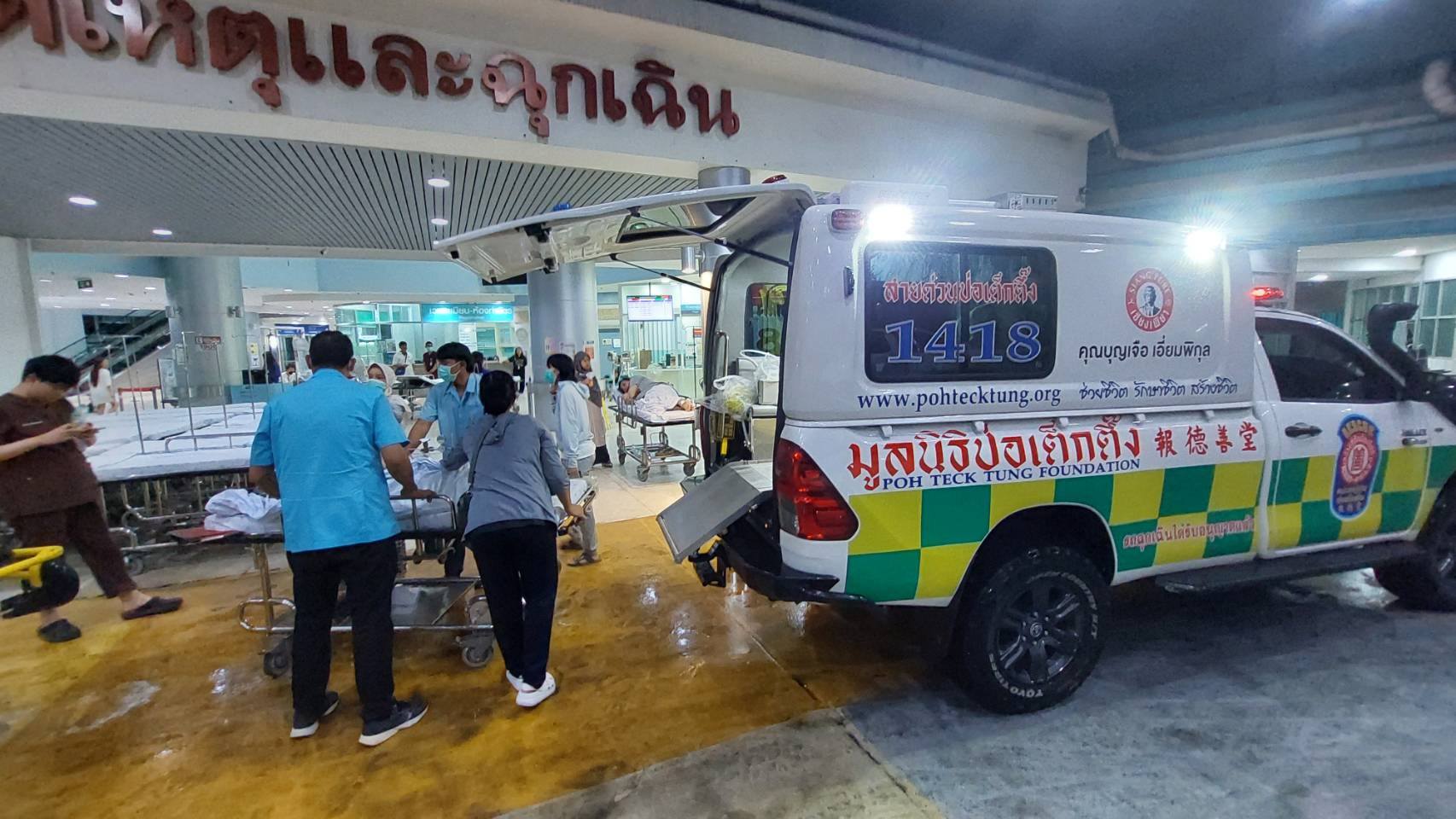 เมื่อเวลาประมาณ 20.30 น. ทีมกู้ชีพป่อเต็กตึ๊ง นำรถพยาบาลยกสูง (4×4) ร่วมกับ บุคลากรทางการแพทย์ ดำเนินการเคลื่อนย้ายผู้ป่วยจากโรงพยาบาลหาดใหญ่ นำส่งโรงพยาบาลสงขลานครินทร์ (มอ.)