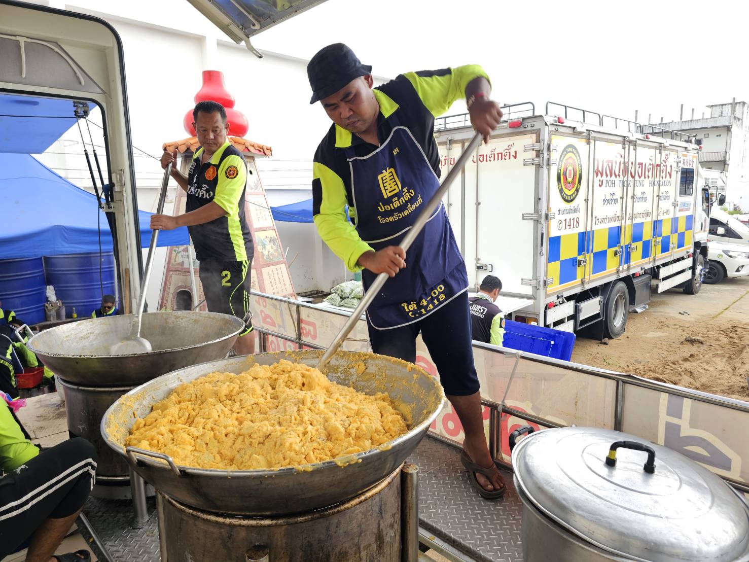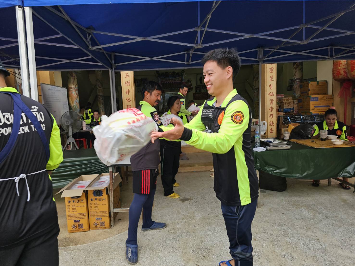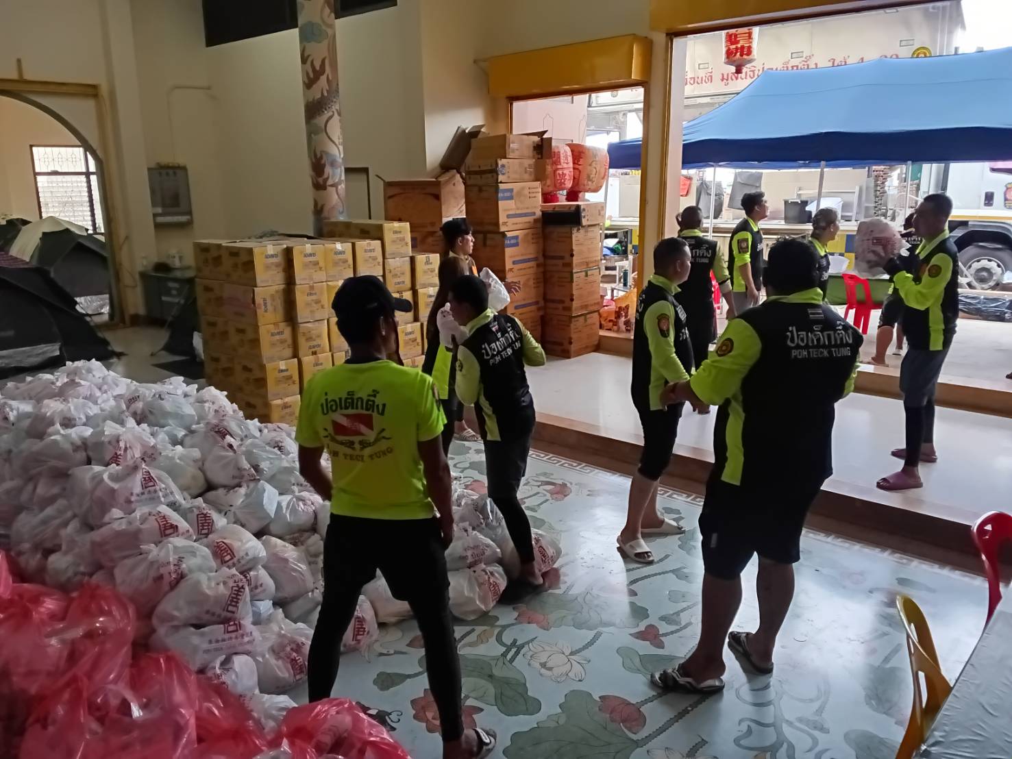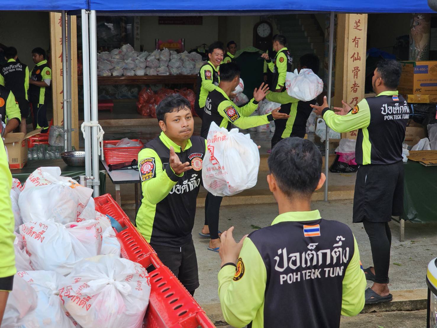 และในช่วงเช้าวันนี้ (1 ตุลาคม พ.ศ. 2568) ที่ โรงครัวเคลื่อนที่มูลนิธิป่อเต็กตึ๊ง ภายในบริเวณมูลนิธิอุตรดิตถ์สงเคราะห์สำนักงานใหญ่ เจ้าหน้าที่ชุดโรงครัว เร่งประกอบอาหารปรุงสุกบรรจุกล่อง เพื่อเตรียมนำไปแจกจ่ายให้แก่ผู้ประสบภัยในพื้นที่
