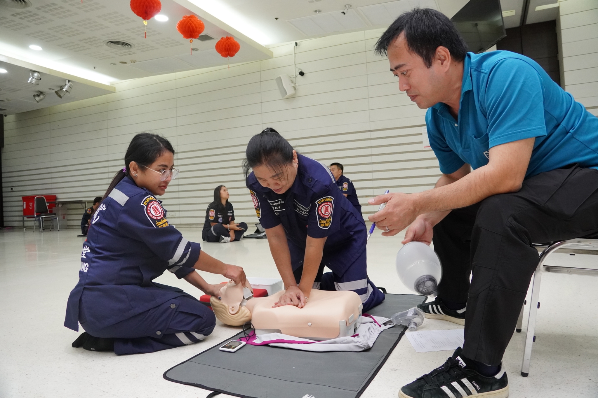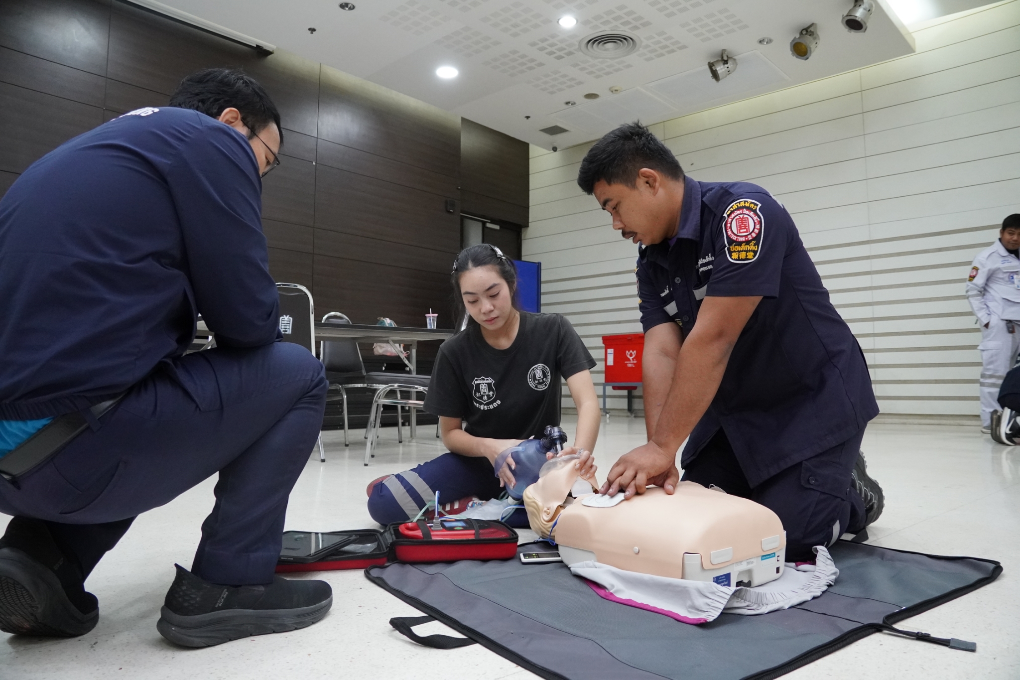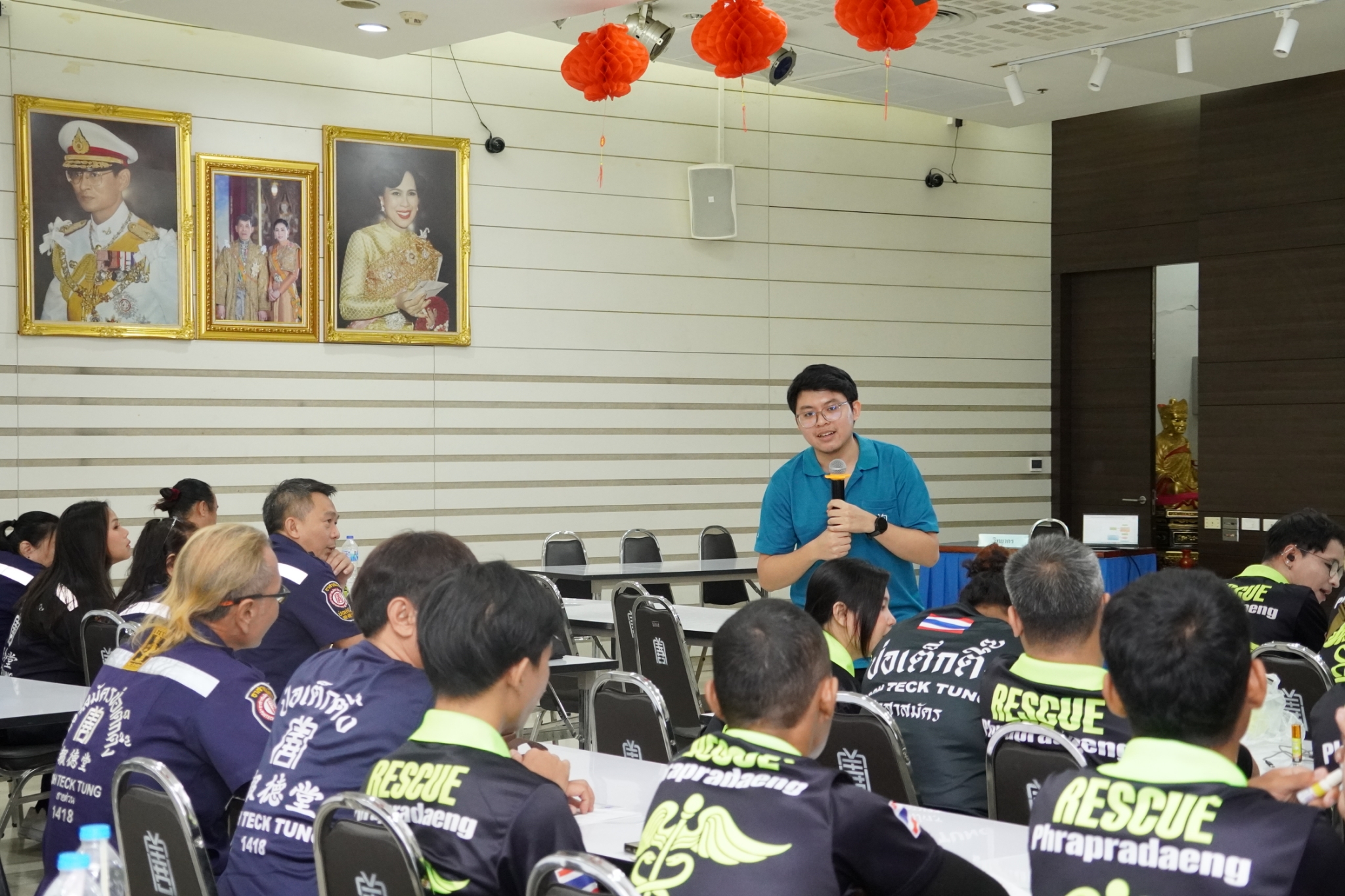 ในการนี้ได้รับเกียรติจาก คุณจิรัฐติกาล บรรจงกิจ รักษาการผู้ช่วยหัวหน้าแผนกอาสาสมัคร พร้อมด้วยเจ้าหน้าที่แผนกฝึกอบรม และเจ้าหน้าที่กู้ชีพ แผนกบรรเทาสาธารณภัย ร่วมเป็นวิทยากรในการฝึกอบรม ณ ห้องประชุมชั้น 2 อาคาร 2 มูลนิธิป่อเต็กตึ๊ง พลับพลาไชย กรุงเทพฯ