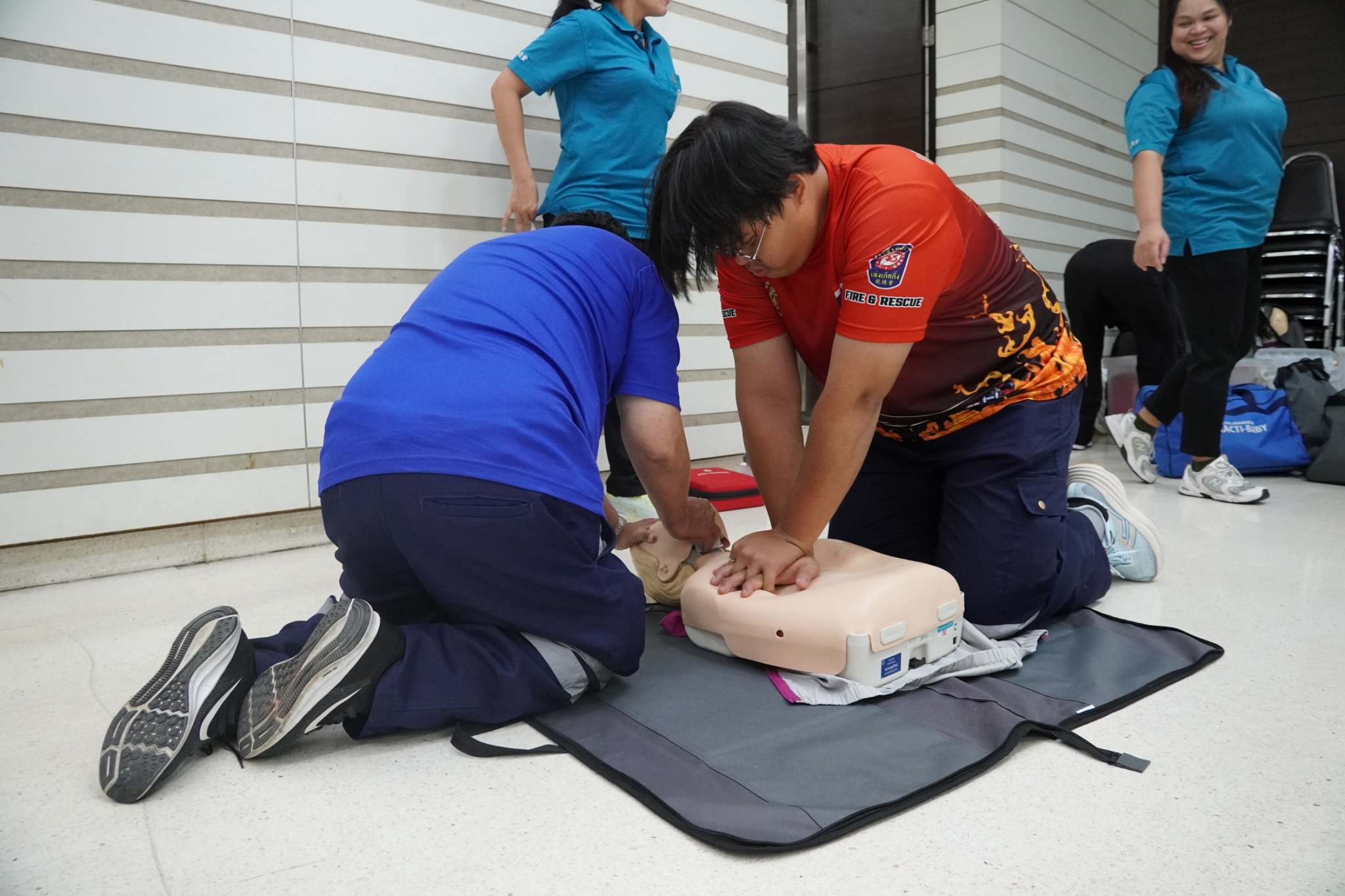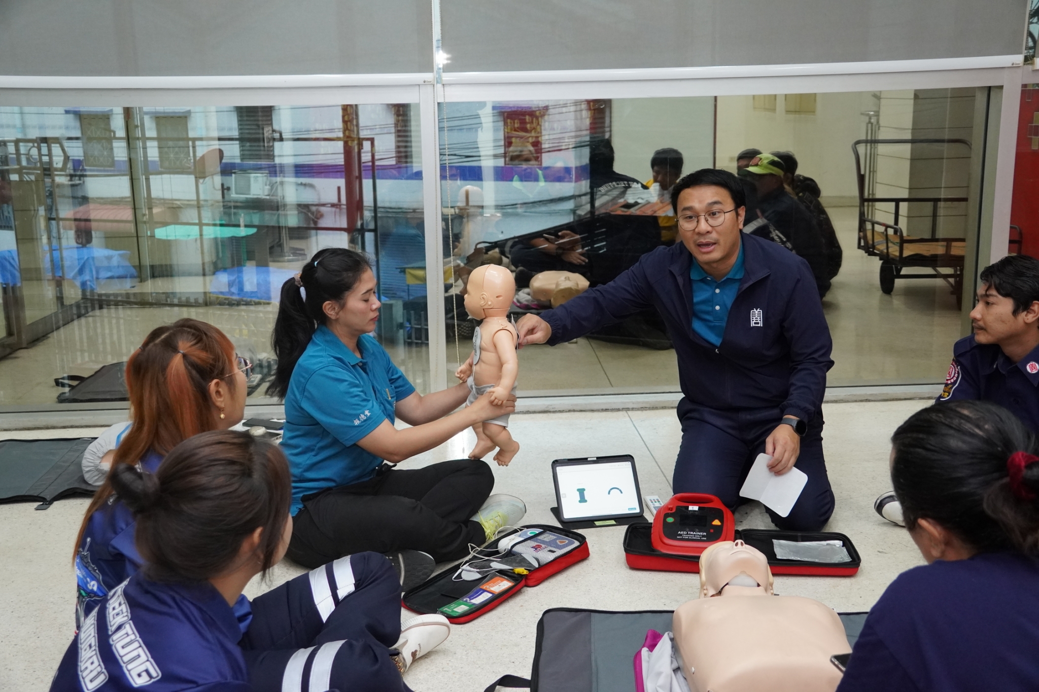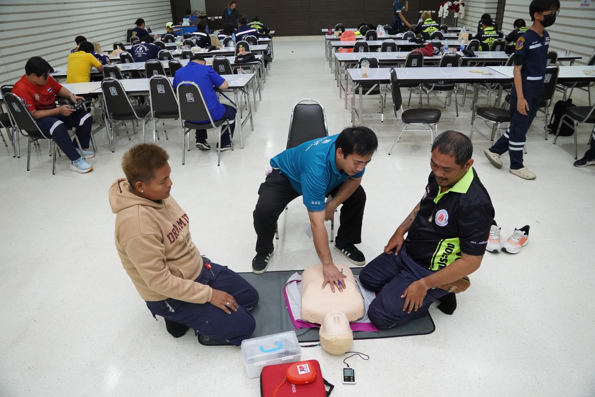 ในการนี้ได้รับเกียรติจาก คุณจิรัฐติกาล บรรจงกิจ รักษาการผู้ช่วยหัวหน้าแผนกอาสาสมัคร พร้อมด้วยเจ้าหน้าที่แผนกฝึกอบรม และเจ้าหน้าที่กู้ชีพ แผนกบรรเทาสาธารณภัย ร่วมเป็นวิทยากรในการฝึกอบรม ณ ห้องประชุมชั้น 2 อาคาร 2 มูลนิธิป่อเต็กตึ๊ง พลับพลาไชย กรุงเทพฯ
